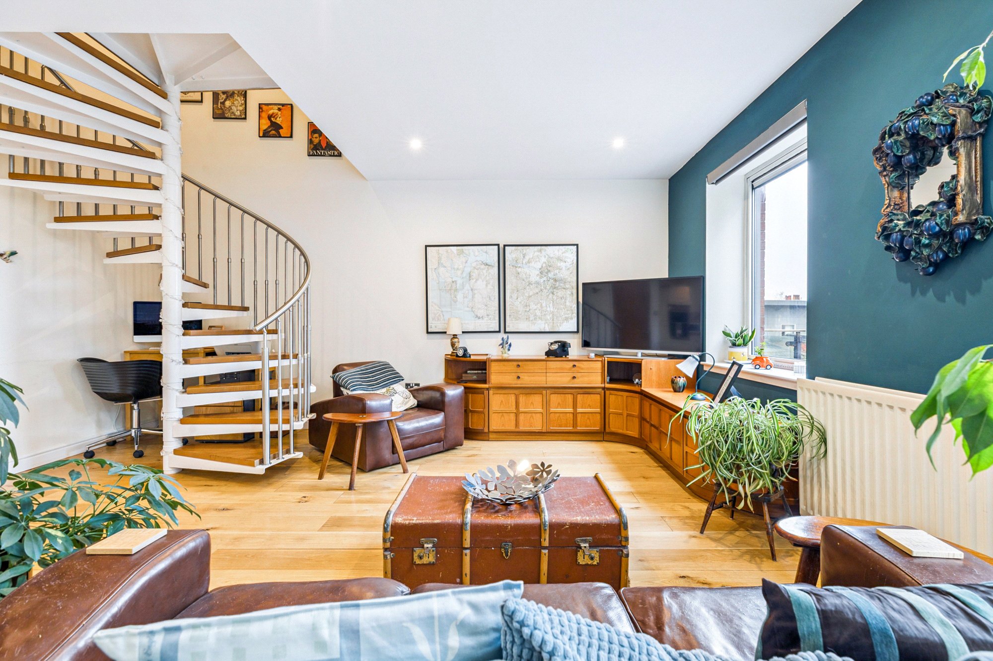 Accessed via security entrance there is both lift and stair access to the flat from street and carpark. Having been well maintained and upgraded by the current owner, notable highlights include a very generous open plan living/dining/kitchen space of over 25 feet separated from the kitchen with a breakfasting peninsula and with floor to ceiling windows stretching over 5 meters high and with patio doors and access to the private balcony, there is a cloakroom W.C. and utility cupboard on the lower floor and a spiral staircase leads up to two double bedrooms both with fitted wardrobes and there is main bathroom and separate exit to the fourth floor landing. The property benefits from fresh décor, double glazing, gas central heating and an underground secure allocate parking and attractive common stairwell with tiled entrance.
