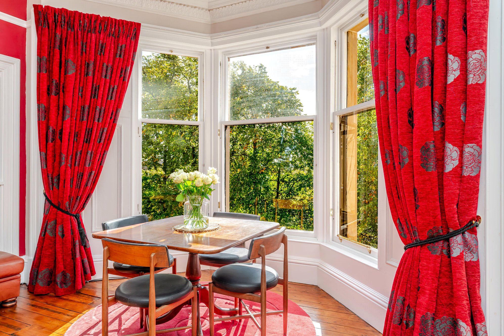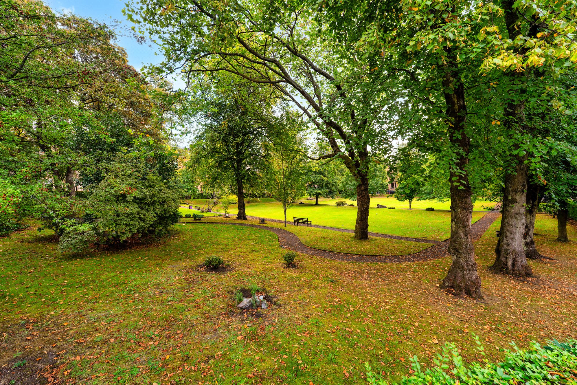 An extremely bright, well-appointed two-bedroom second floor conversion which benefits from a highly central yet peaceful situation in the sought after West End district of Dowanhill – overlooking spectacular central leisure gardens into which the owner of home for sale has access.