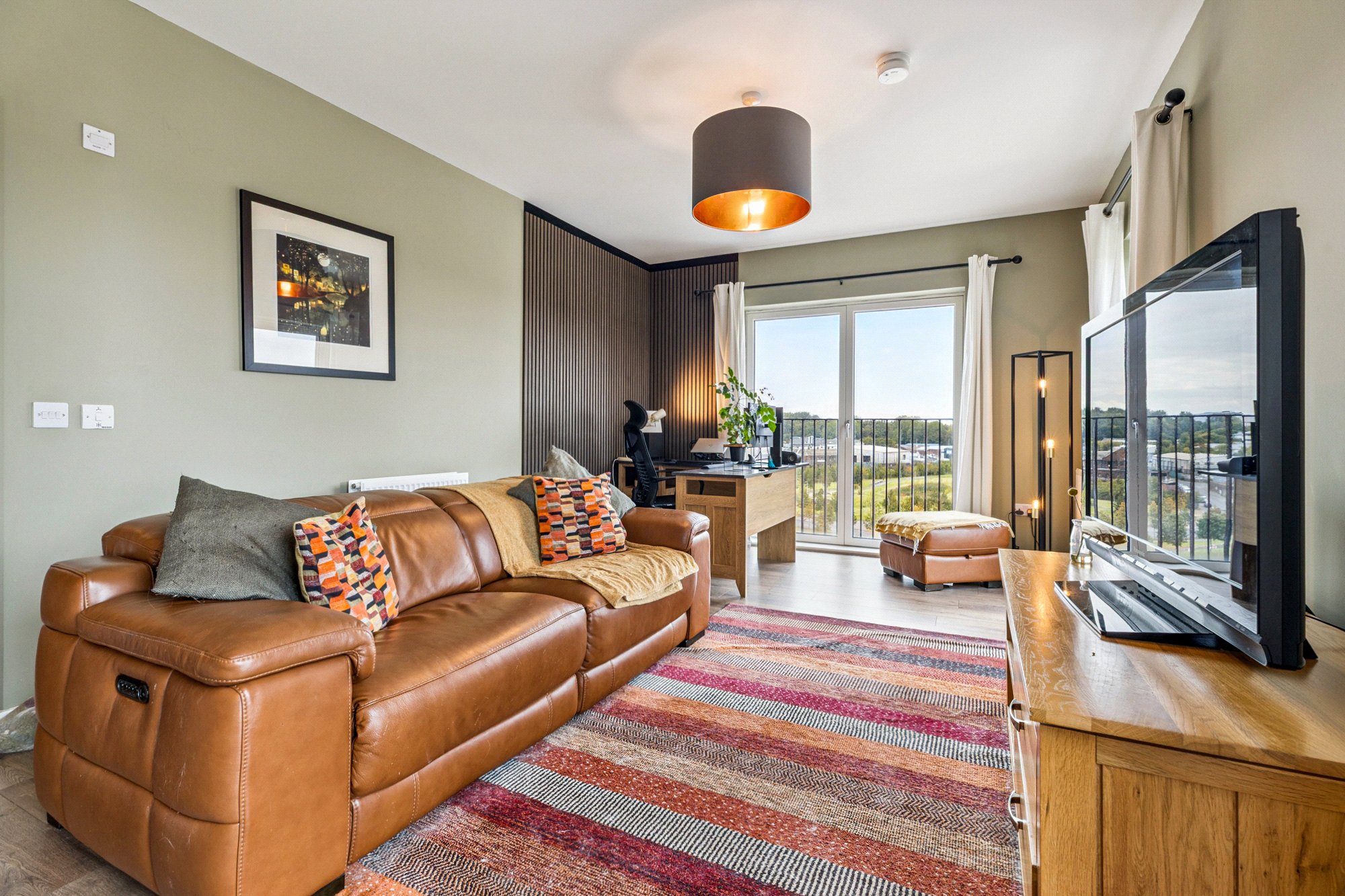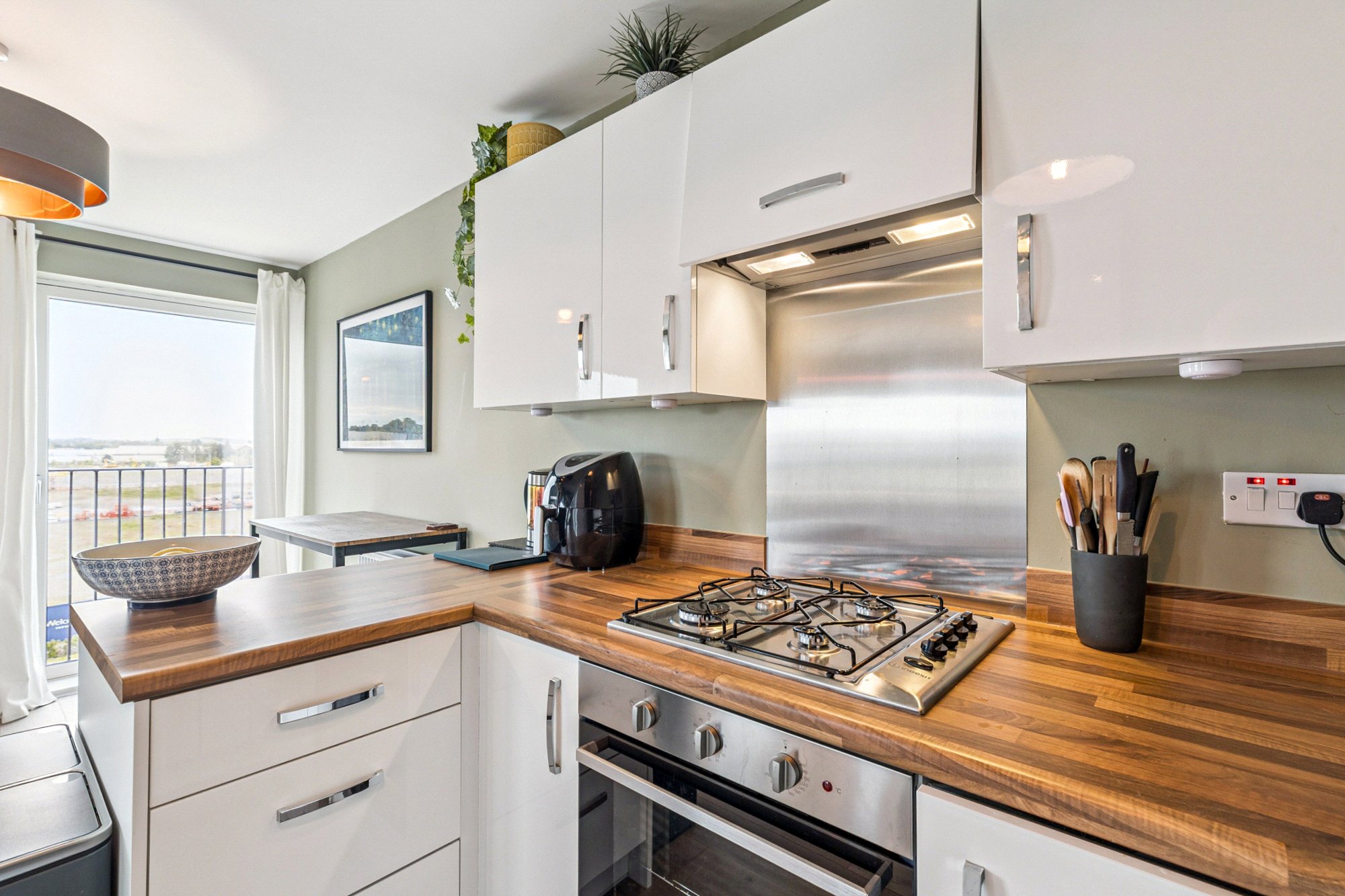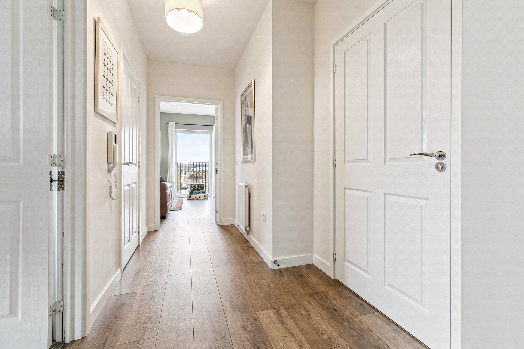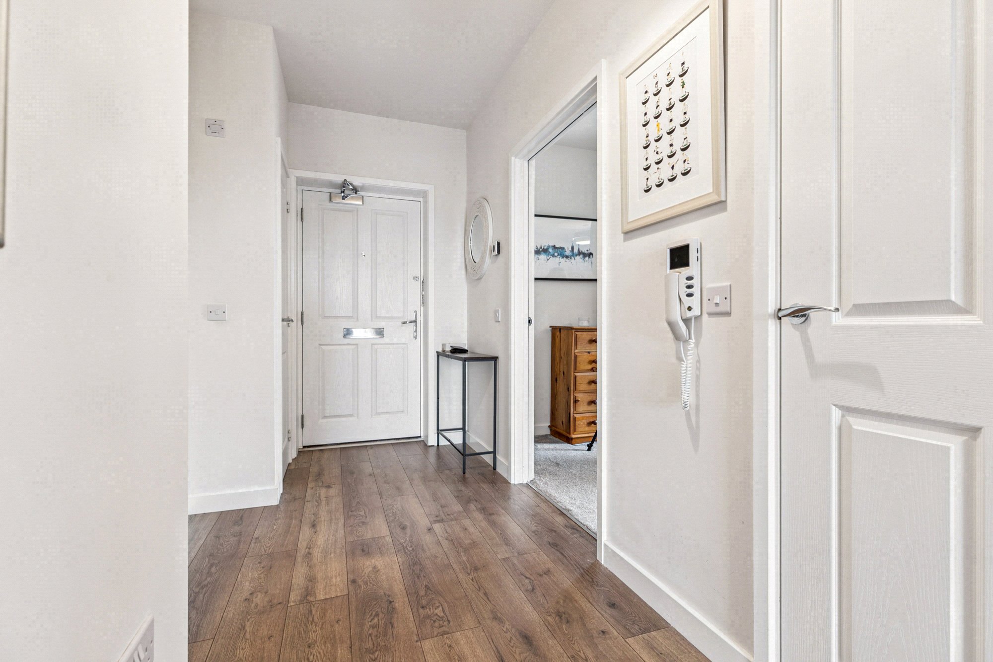 Accessed via secure entry to the communal hallway and with both lift and stair access to all floors. Extending to over 732 sq ft, the apartment is beautifully presented, with standout features including a bright and spacious open-plan living, dining, and kitchen area extending to 27’6” offering dual aspects and west-facing views over the development and beyond, the modern kitchen with a breakfasting island, is open plan and set back from the main living space and has integrated appliances. Generous bedroom with fitted wardrobe and separate cupboard, modern three-piece main bathroom with over bath shower and there is fresh chic décor throughout. This is a rare opportunity to purchase a spacious one-bedroom apartment in the first phase of this landmark development.