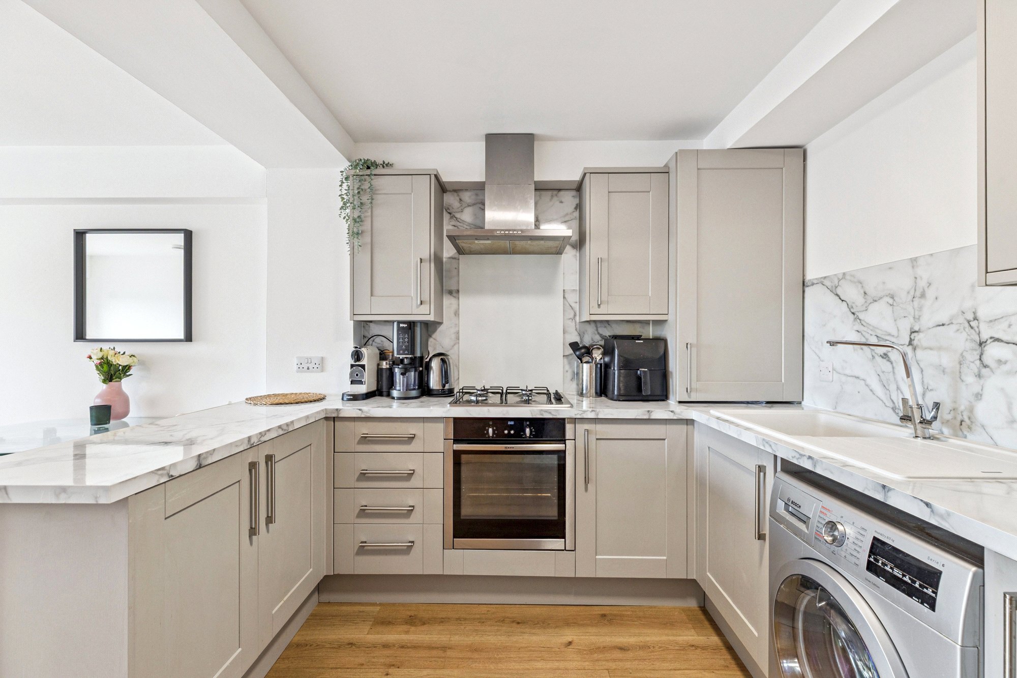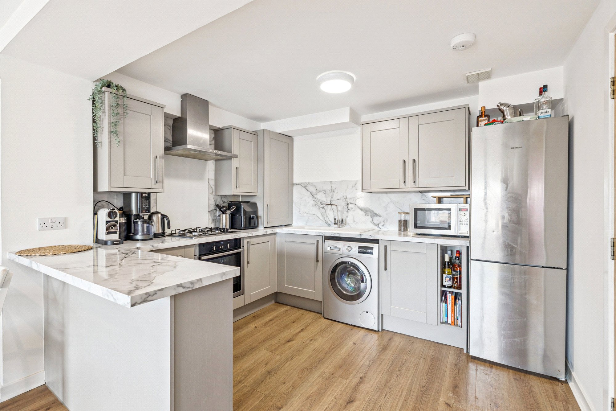 Spanning over 681 square feet, the property has been both upgraded and well maintained by the current owner and offers generous lounge/dining/kitchen of over 23 ft, the modern re-fitted kitchen is off set from the living area and completed with breakfasting peninsula; there are two double bedrooms, both with fitted wardrobes and with the principal having en suite shower room; main bathroom and hall cupboard. The property has gas central heating and double glazing and there are well maintained communal courtyard gardens.