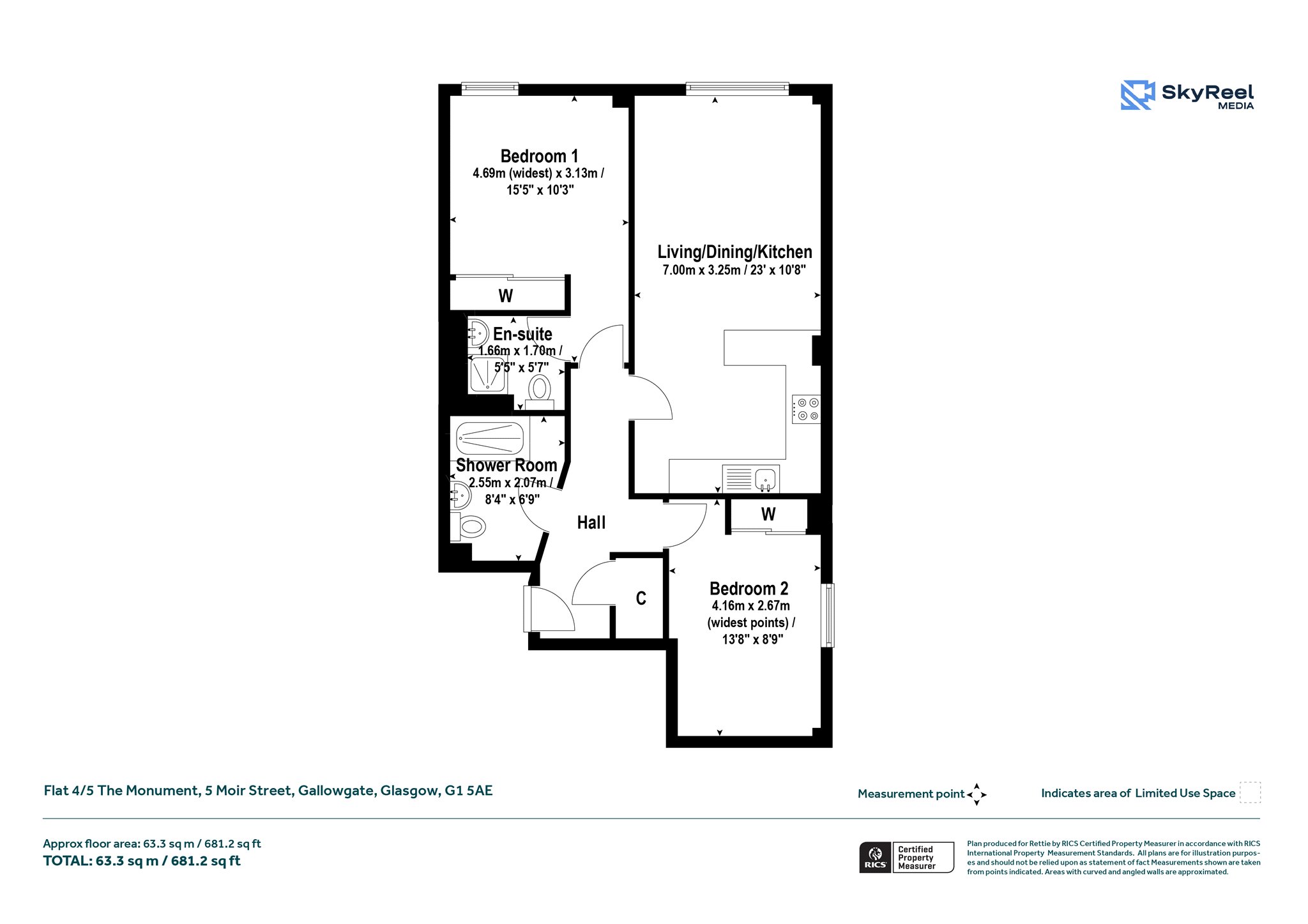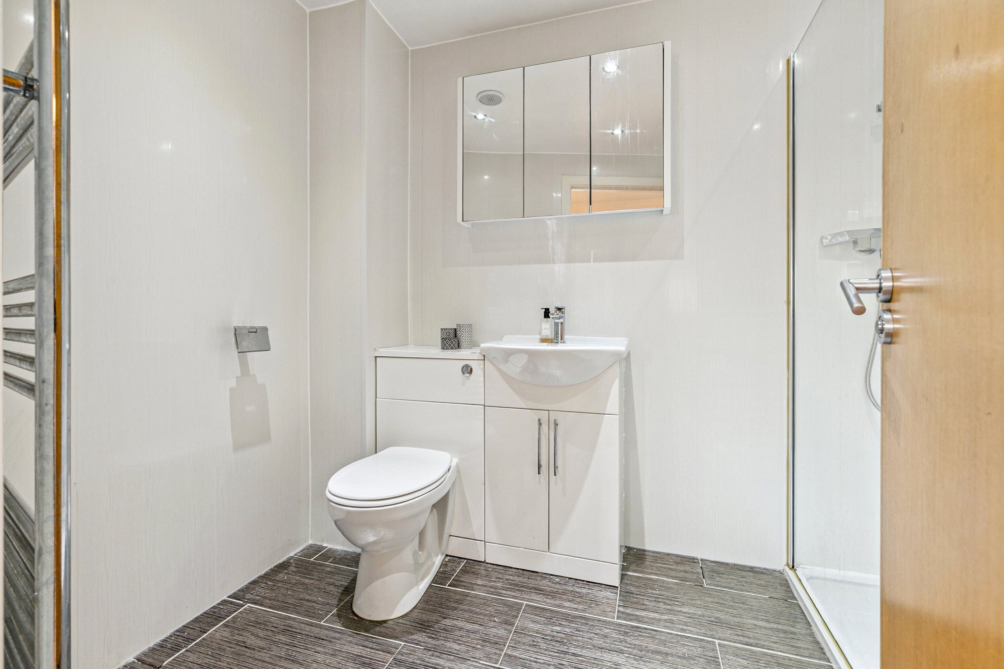 This modern two bedroom flat is in turn key condition, boasting a re-fitted kitchen and two re-fitted shower rooms, the property is situated on the east elevation of the fourth floor the Monument Building, completed in 2004 and located on the corner of Gallowgate and Barrowland Park. Just a few minutes’ walk from Glasgow’s Merchant City, the Barras Art and Design venue (BAaD) and it’s fore runner development The Homes for the Future at Glasgow Green.