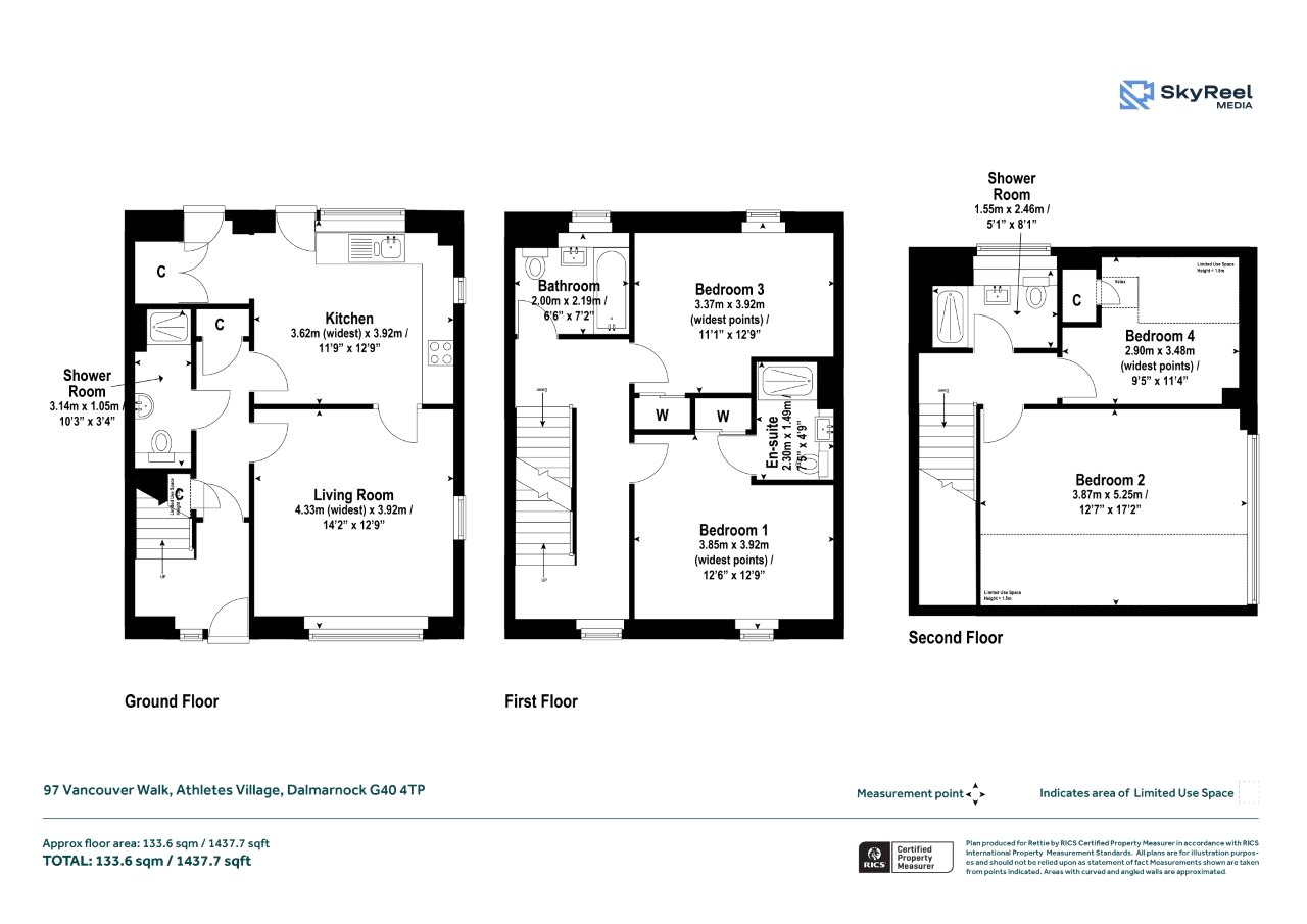 The property is accessed through gated gardens from both front and rear, entering from the front door off of the Clyde Walkway, the reception hall offers cloakroom shower room, great storage, stair access to upper floors and access to the dual aspect living room with doors to dining kitchen, utility cupboard and with access to the rear entrance and back garden area and parking. Stairs lead up to the first floor with main bathroom and two bedrooms both with fitted wardrobes and one with en en suite shower room, further stair to upper floor with a shower room and two bedrooms with vaulted and combed ceilings offering excellent space for growing families or home working.