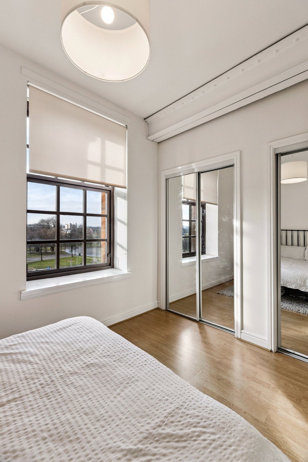 Offered in excellent decorative order, the property features newly painted rooms, flooring and crisp, refreshed cabinetry that give the space a clean, modern aesthetic. Thoughtful styling throughout enhances the sense of light and space make it an ideal home for those seeking a move in ready space. This spacious one-bedroom apartment is situated within a striking red sandstone building, originally designed by Honeyman and Keppie, architects, circa 1890. The Warehouse on the Green development was converted into residential apartments in early 2000, has a prominent location overlooking Glasgow Green on the edge of the Merchant City and benefits from a super outlook over the Green and beyond and allocated parking space to the rear.