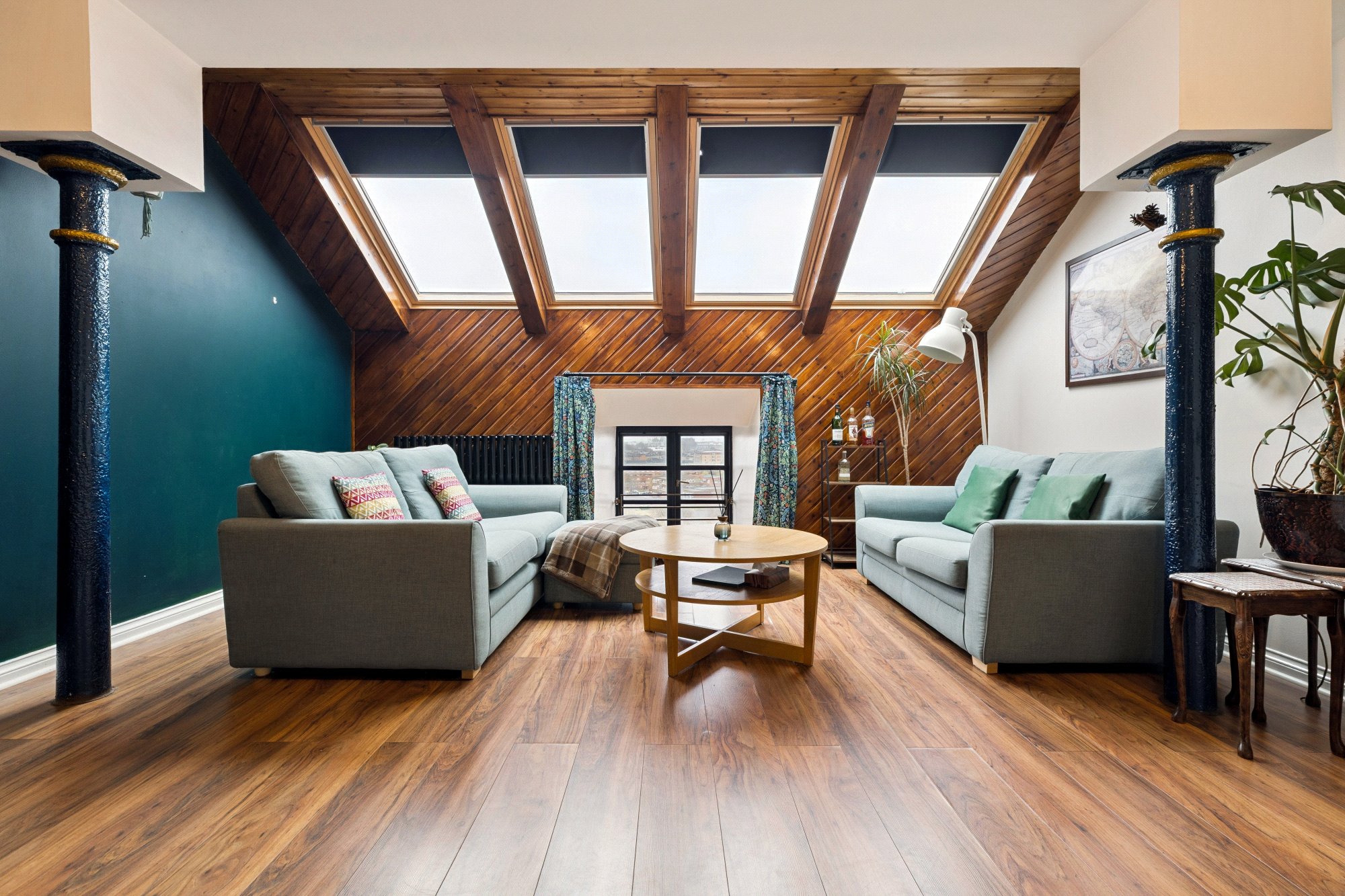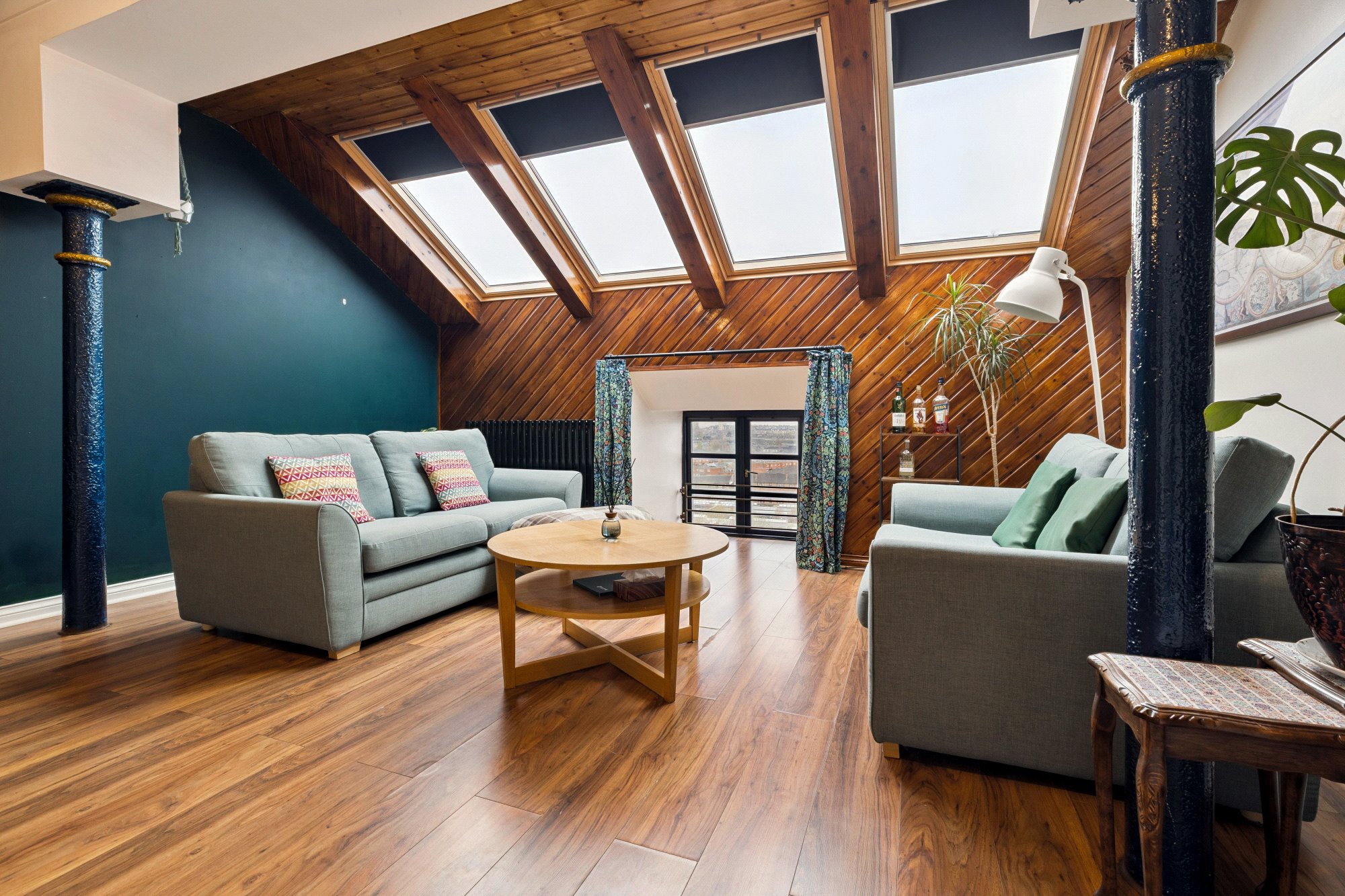 Security video entry phone system to a secure communal entrance and with both lift and stair access to the fifth (top) floor, the apartment is fresh, stylish and in turnkey condition. The welcoming entrance hallway has two sizeable storage cupboards with ladder access to a large private loft via a hatch within the internal hall cupboard. There is an impressive living room showcases original structural beams that celebrate the building’s industrial heritage, complemented by retro wood panelling, with recessed, west-facing window framing views across the canal and city skyline, while four triple glazed Velux roof windows, re-fitted IN 2022, flood the space with natural light throughout the day, there is a modern kitchen and stylish bathroom ensuring a truly walk-in condition purchase. The property has electric heating system, double glazing and off-street parking.