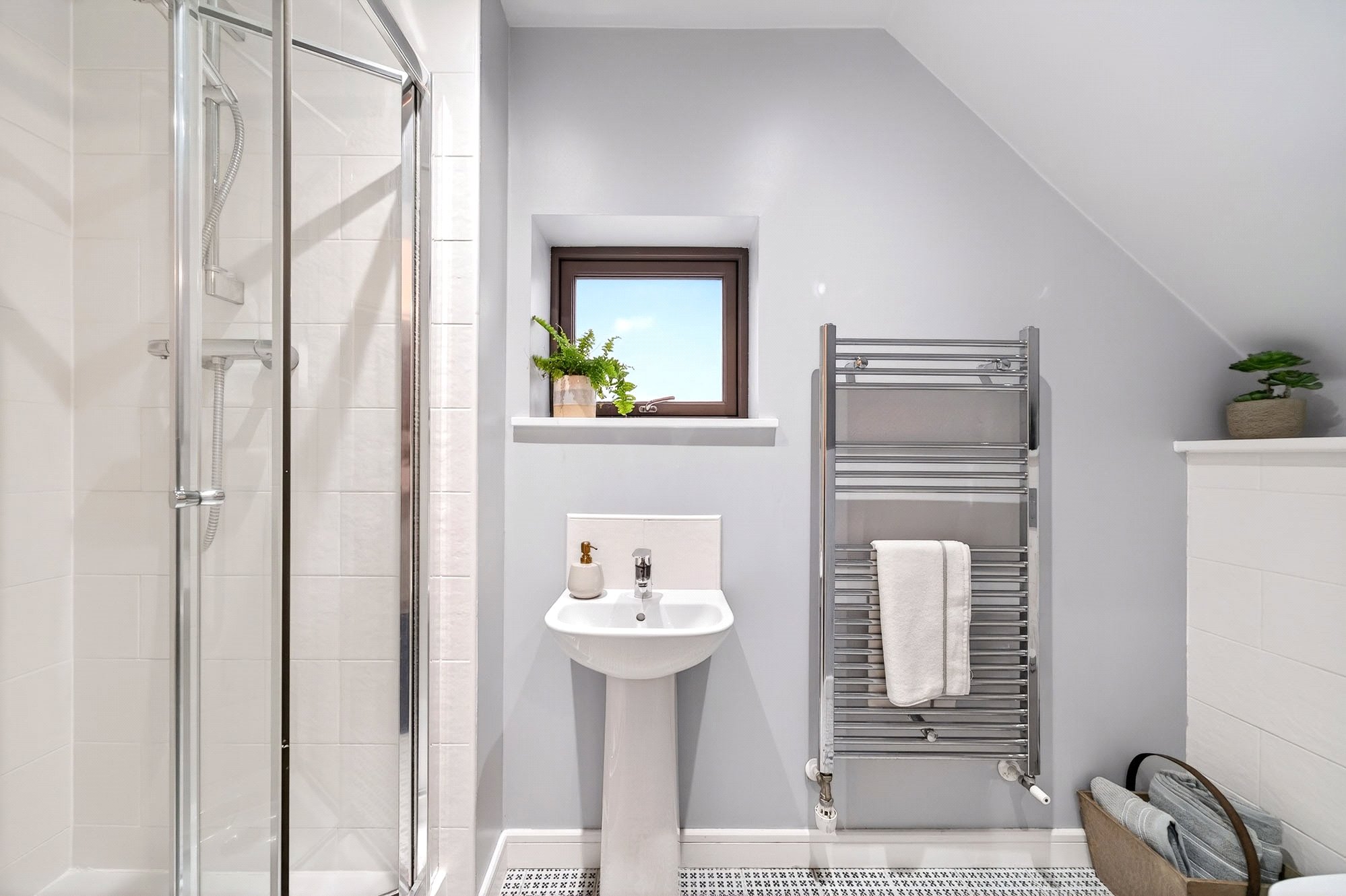 The accommodation is entered via a welcoming reception hallway, where a charming Victorian-style tiled floor provides an unexpected yet highly successful juxtaposition to the modern lines of the building. It is a memorable introduction to the home and sets the tone for the quality and thoughtfulness found throughout.