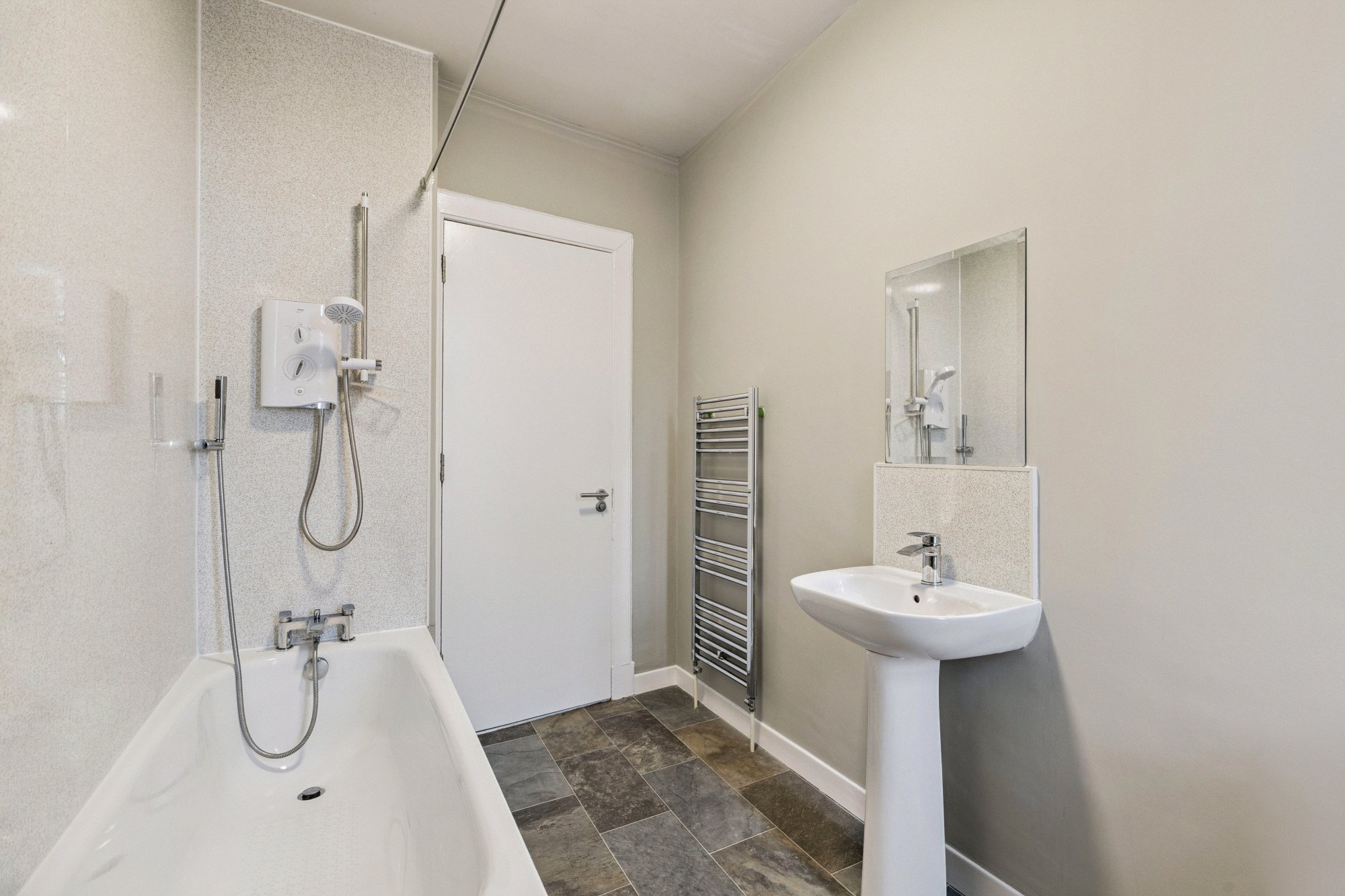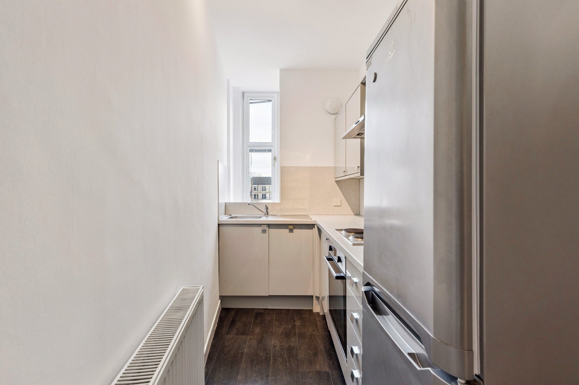 Accessed via a security entry door to well maintained close and communal stair, the accommodation extends to a generous entrance hallway, corner position bay-windowed living room with space for dining, cleverly designed modern galley style kitchen with window. Two double bedrooms both facing over Alexandra parade and there is a spacious modern bathroom room with white three-piece suite and over bath shower. The property also benefits from gas central heating, double glazing and access nearby to free on-street parking.