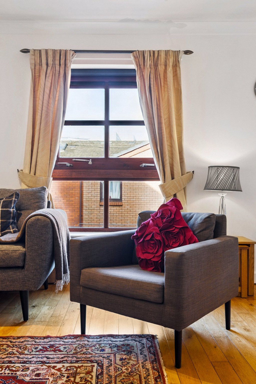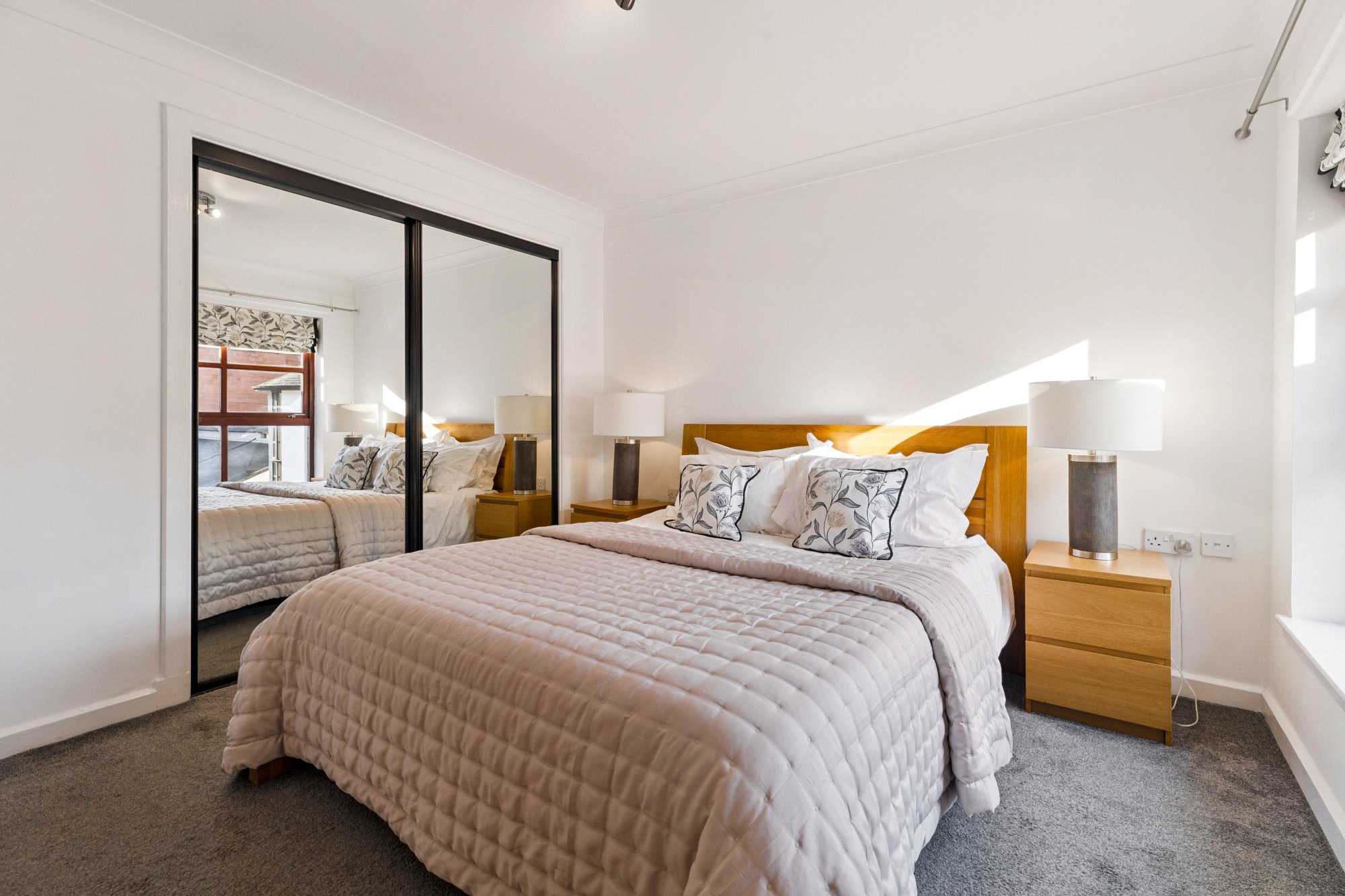- The bedroom enjoys a pleasant southward outlook over the Greyfriars entrance courtyard from a broad window with smaller secondary window ensuring brightness. The room also has a large integrated mirrored wardrobe.