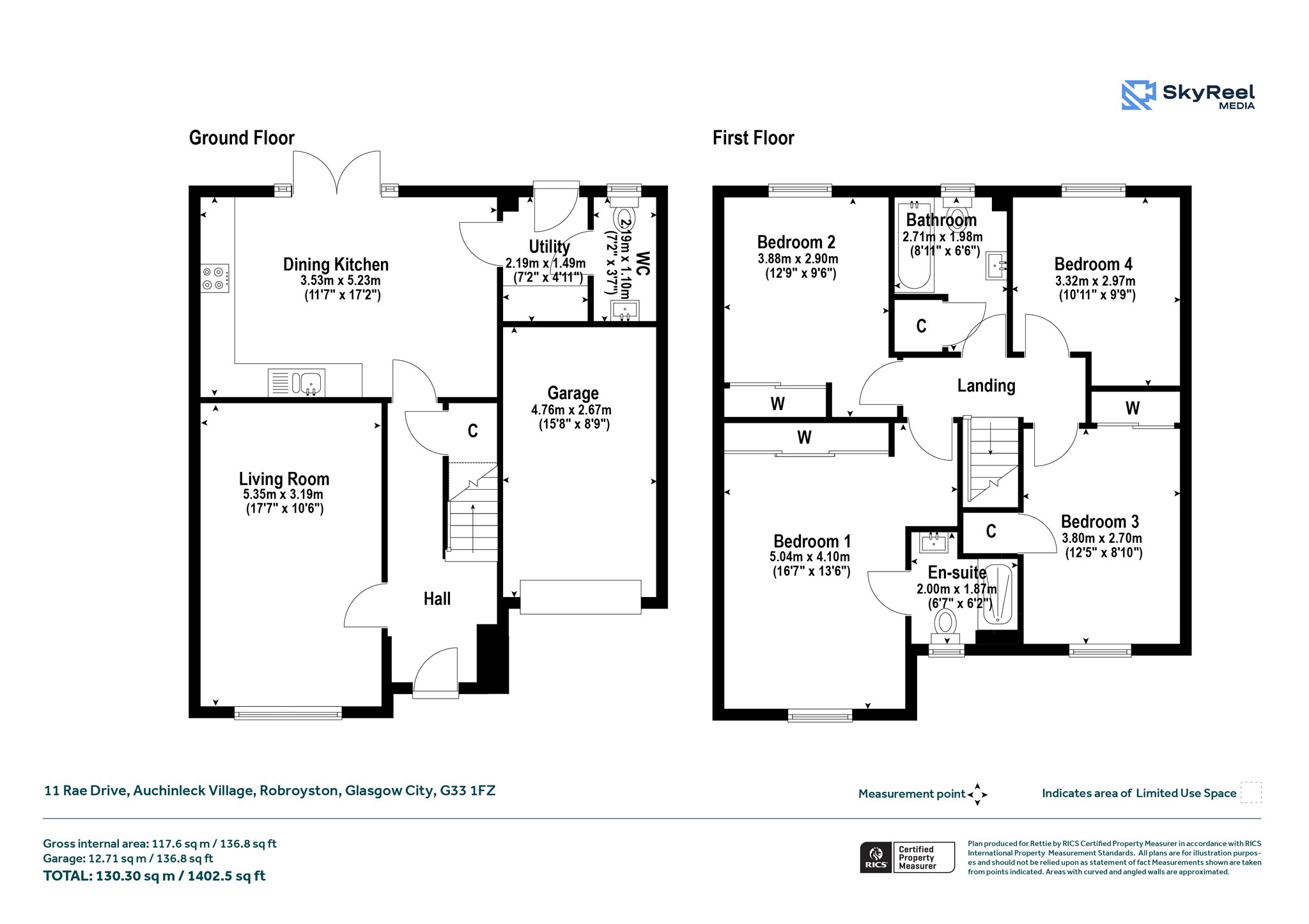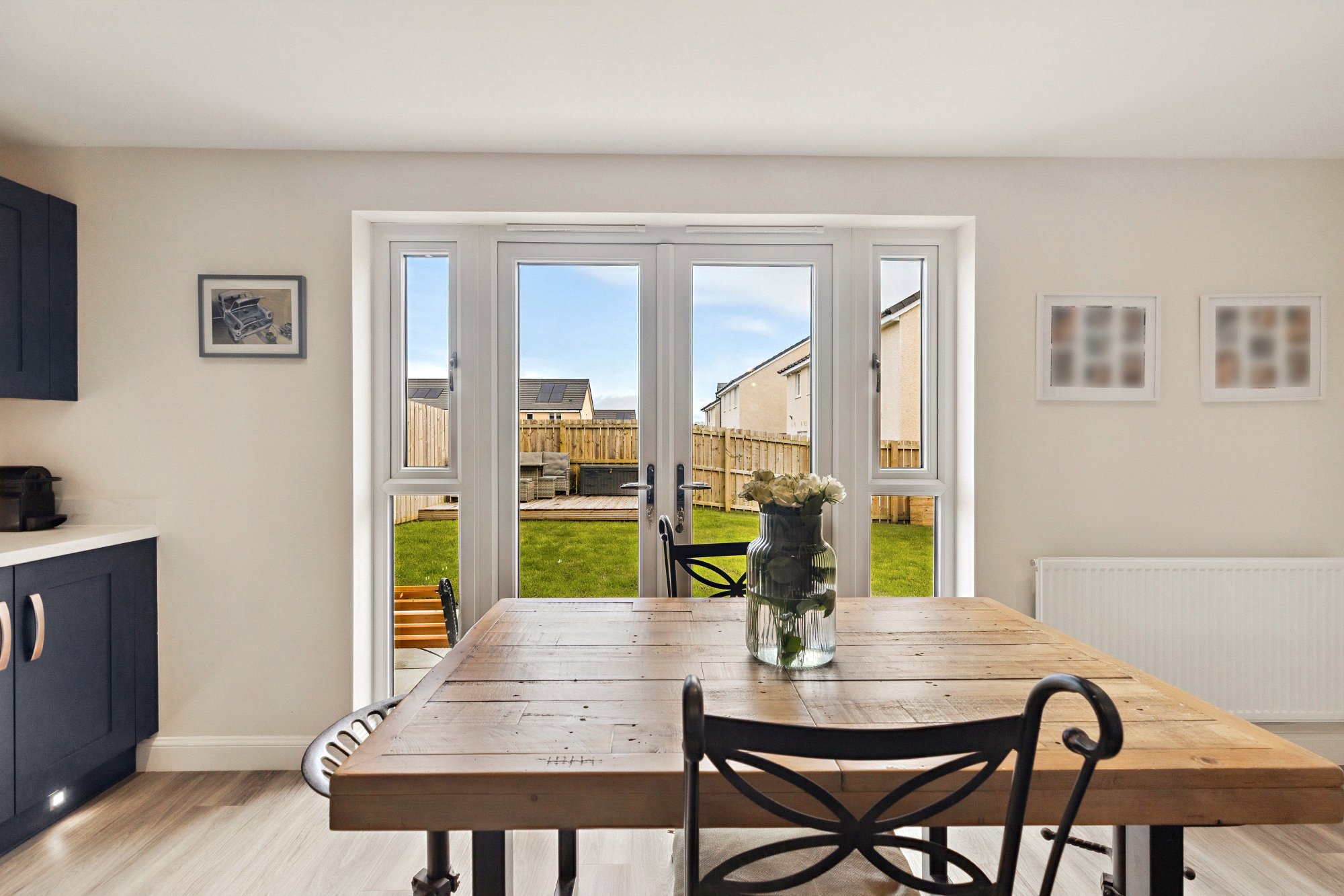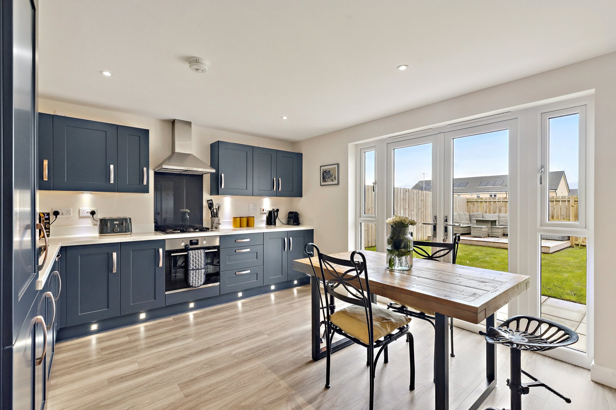 Combining semi rural living with fast access to the city, Auchinleck Village offers excellent motorway links to both Glasgow and Edinburgh. Completed in 2023, the original ‘Dean’ style home from five-star builder Barrat Homes, is situated in a prime spot within a highly popular development set amongst green countryside. The property is very well-presented and is a deceptively spacious four bedroomed detached villa complete with off-street driveway parking, integral garage and generous, enclosed, south facing rear garden space. Upgraded on reservation with Nordic Oak Amtico flooring, Princeton Indigo blue kitchen cabinetry, Arctic Marble worktops, functional utility space and with stylish décor, the location offers excellent schools, many amenities, and transport links all close-by, making it perfect for families and professionals alike. With space for home working and for people wanting peaceful surroundings without sacrificing city convenience. Thers is easy access great transport links the development is only a 15-minute drive to Glasgow's city centre or with Robroyston train station nearby, conveniently offering links to Glasgow in just 12 minutes.