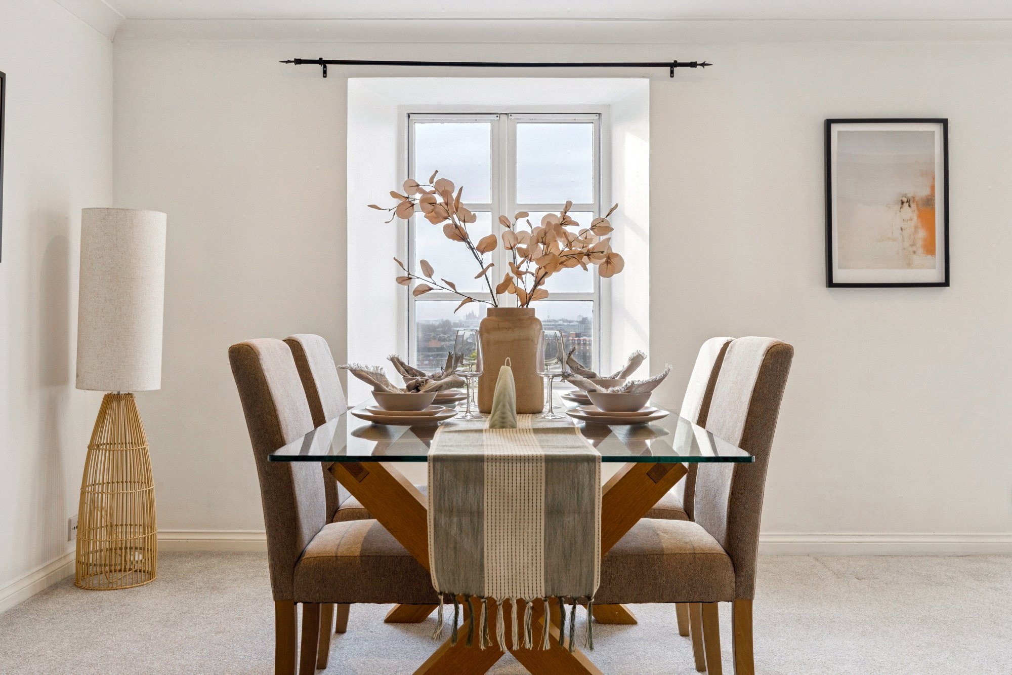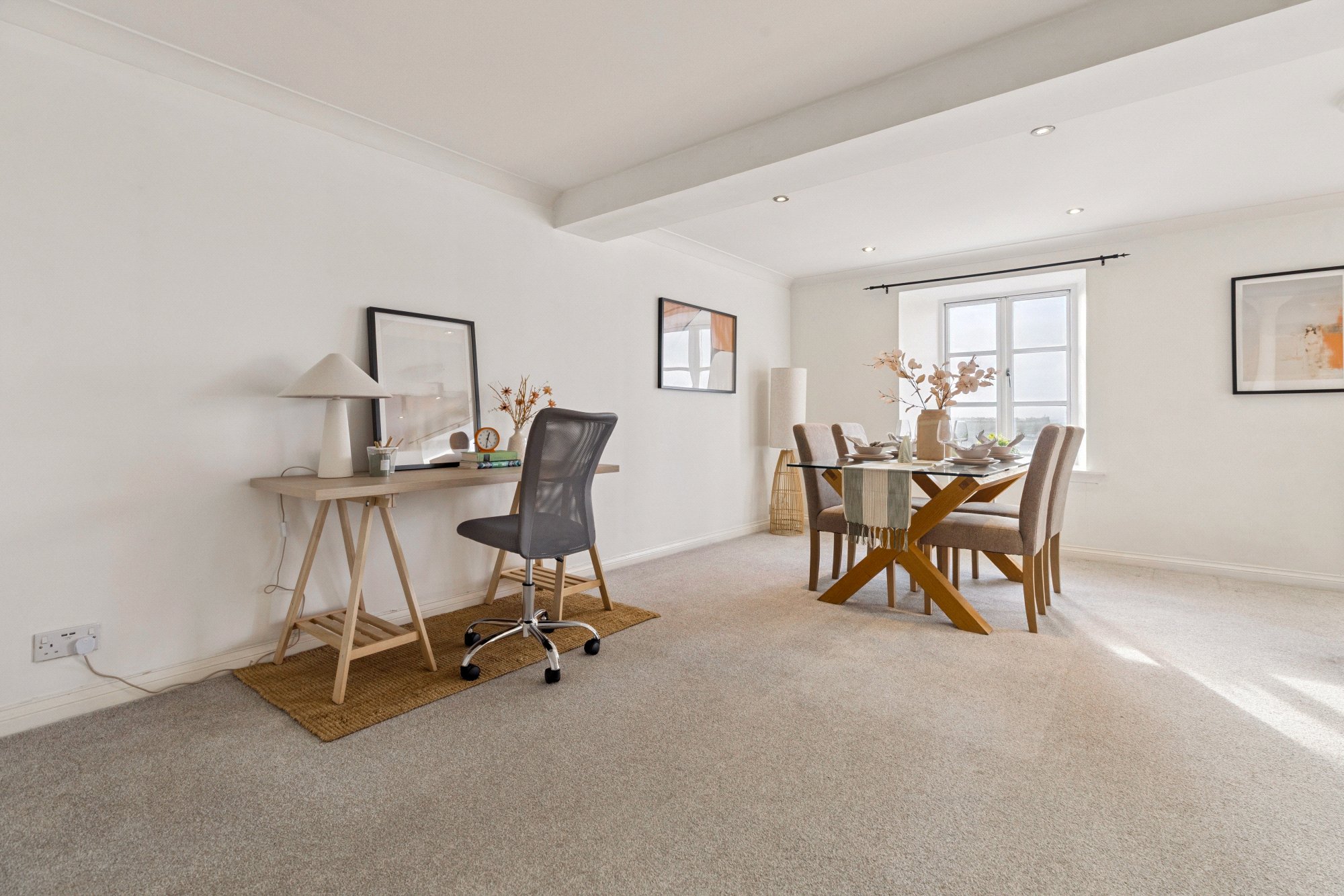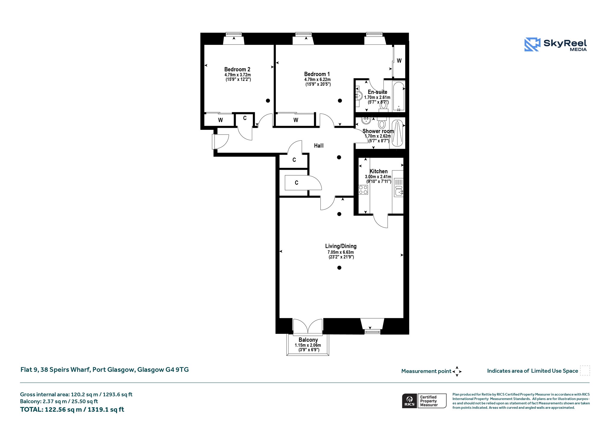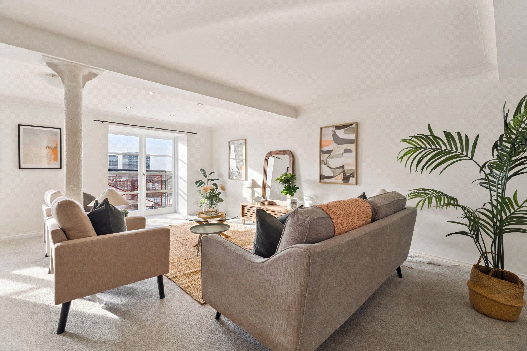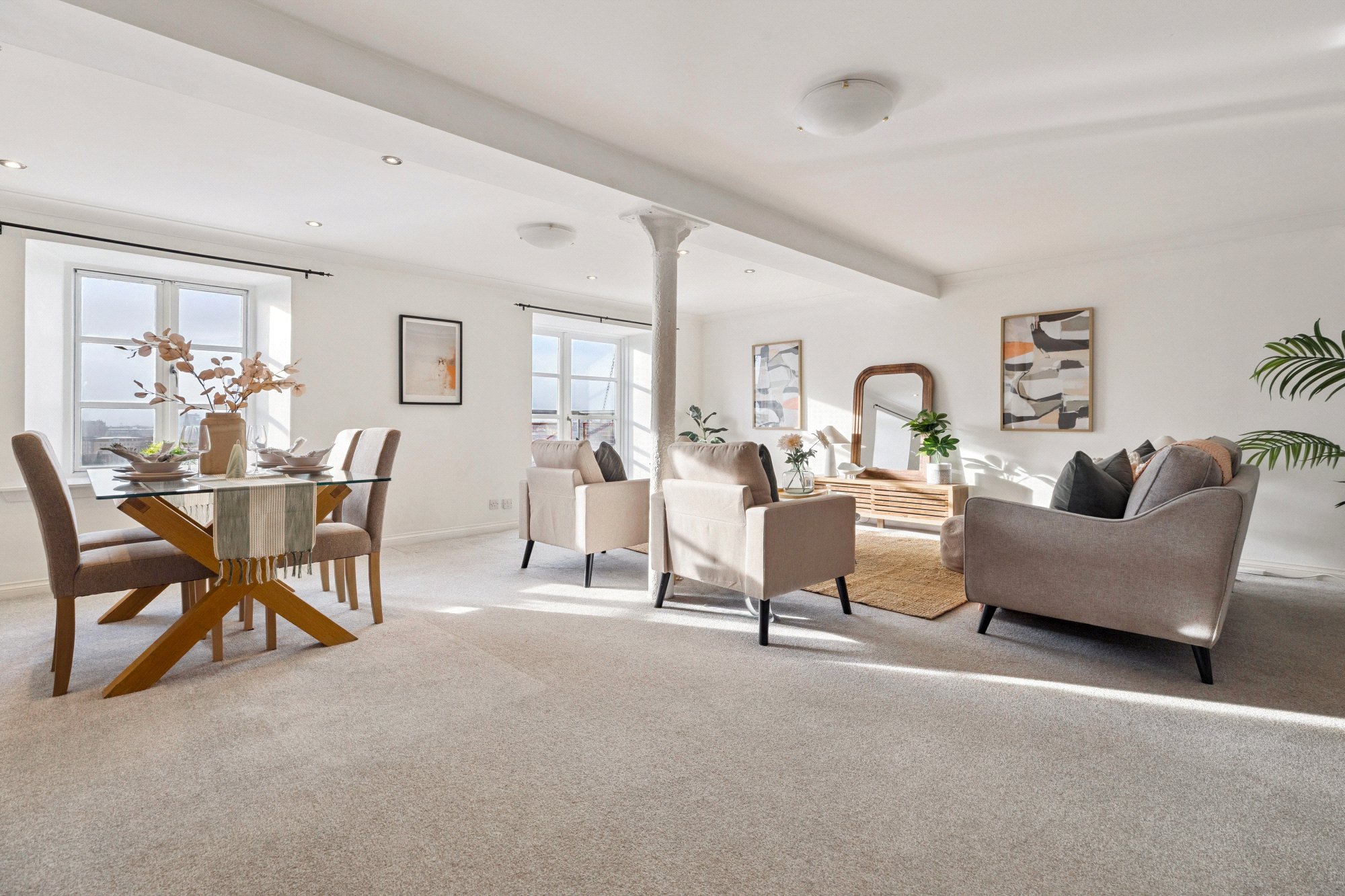 Accessed via a secured entrance door to communal hallway, there is lift and stair access to all floors, the apartment is beautifully presented, with lovely interior styling showcasing the best use of the space and with standout features including original warehouse pillar features in both the living area and bedrooms, reflecting the building’s rich history and great use of the space with excellent storage with three cupboards in the hallway and fitted wardrobes in both bedrooms. There is a bright and very spacious open-plan living and dining room spanning 23’2” x 21’9” with stunning west-facing views over the canal and beyond from a feature window and balcony access from two refitted patio style doors, the galley style kitchen featuring a range of base and wall mounted units with integrated appliances, there are two generous bedrooms, one with en suite bathroom room, a refitted shower room and fresh décor throughout. This is a rare opportunity to own a unique piece of Glasgow’s industrial heritage, reimagined for convenient city living.