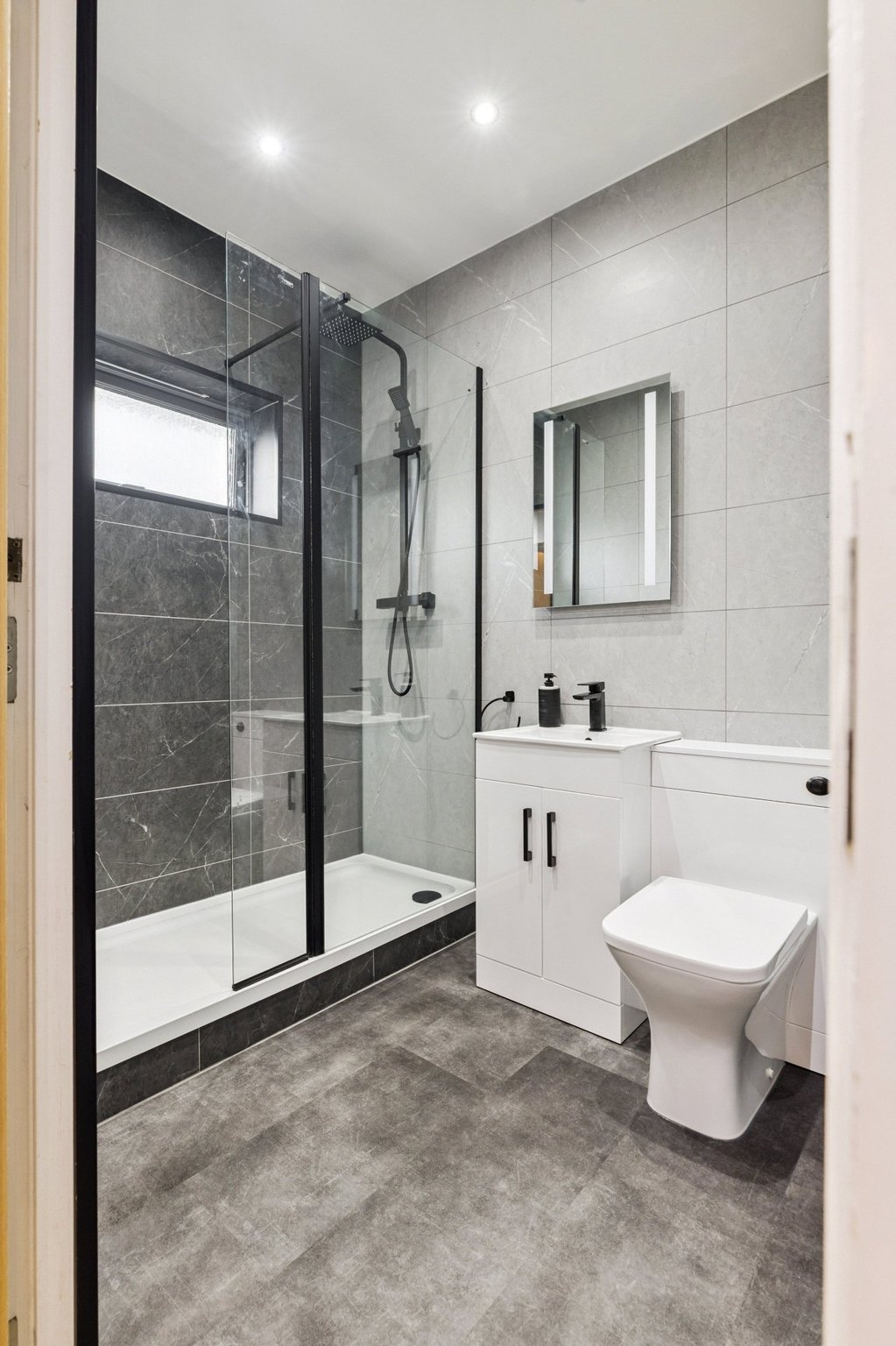 - Beautiful three piece contemporary shower room with shower cubicle and window to the front.