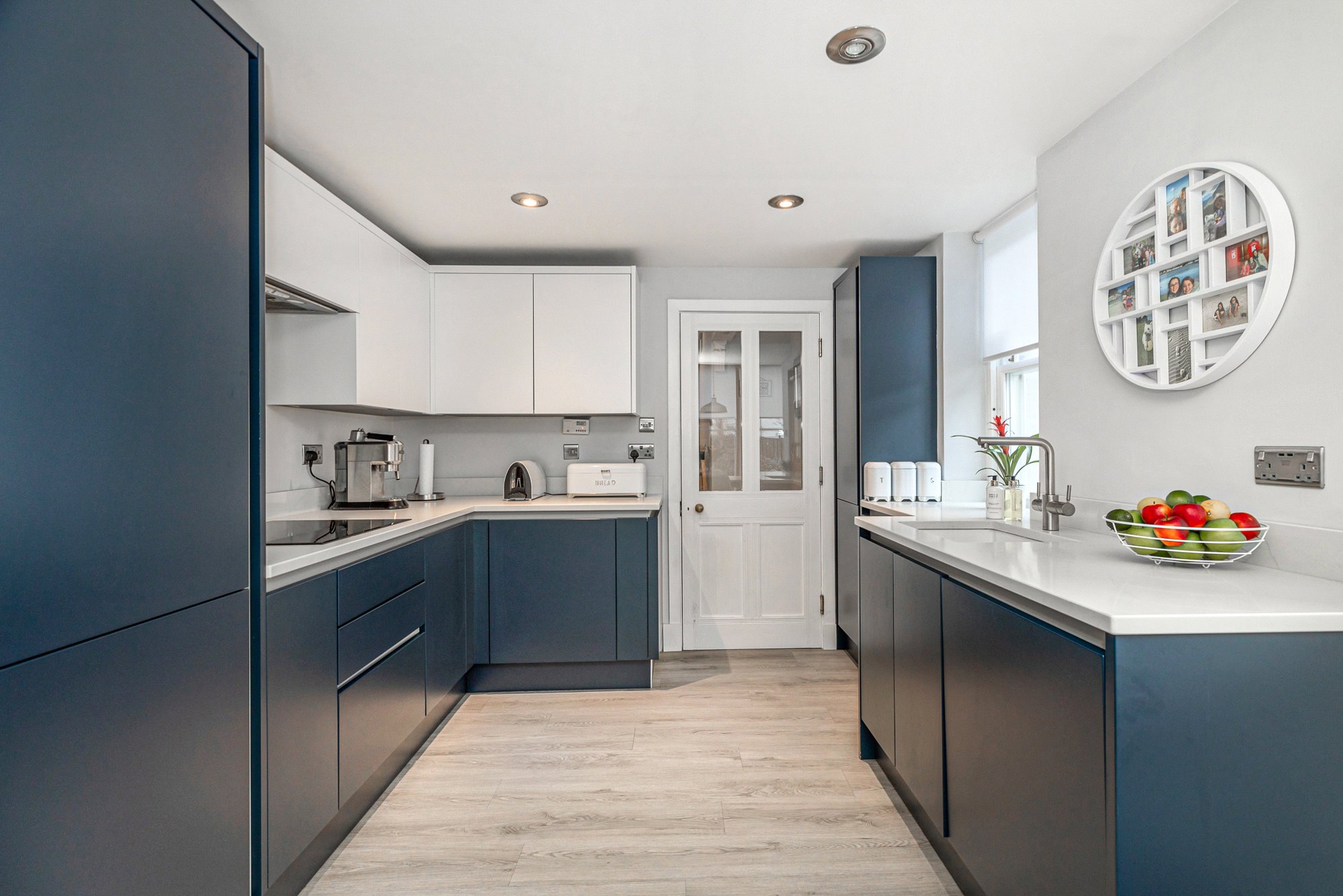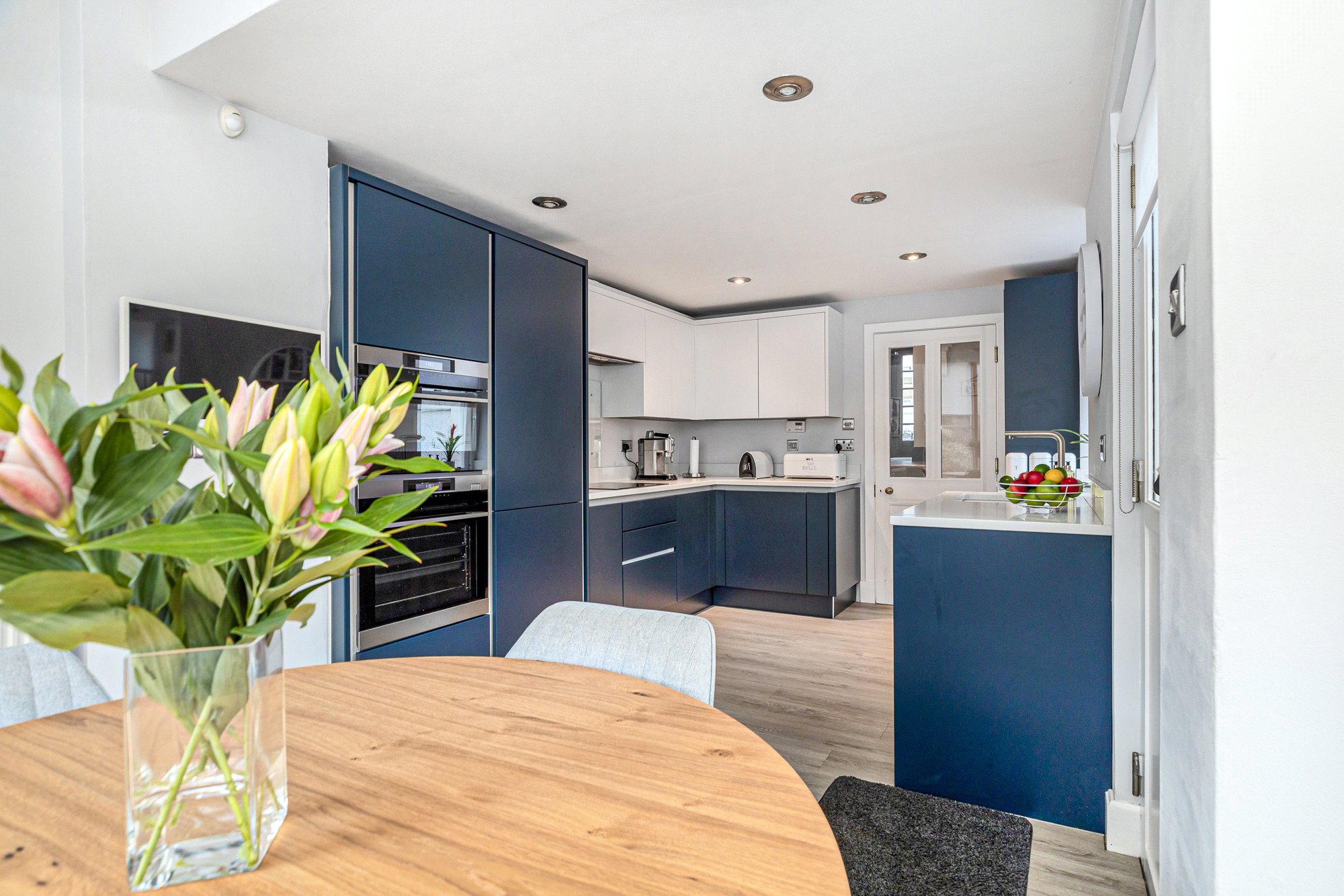 • Outstanding, extended, fitted kitchen re-fitted in 2022 with generous storage units, worktops, appliances, window to the side, side door, Velux window and an innovative extension which provides an amazing, curved dining area with four windows to the rear.