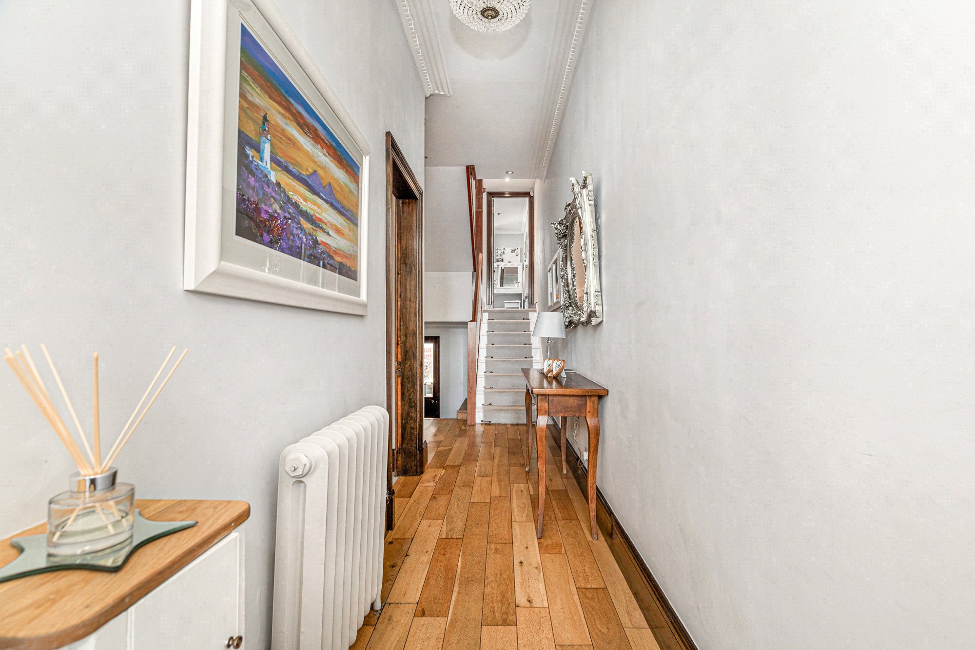 Having the significant advantage of being within list 1 catchment for Jordanhill school, 34 King Edward Road is a classic Edwardian end terraced villa and is in superb order throughout. The property has been enhanced by the addition of a rear stone clad pitched roof extension which complements the internal and external aspects of this exceptional home. Whilst the property has undergone refurbishment, many of the original features have been retained such as sash and case style windows, stained glass panels, ceiling cornices and restored internal doors.