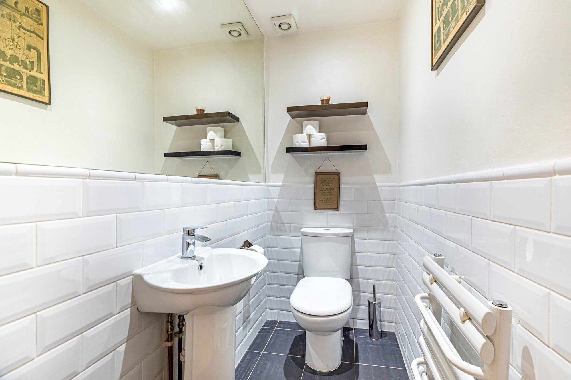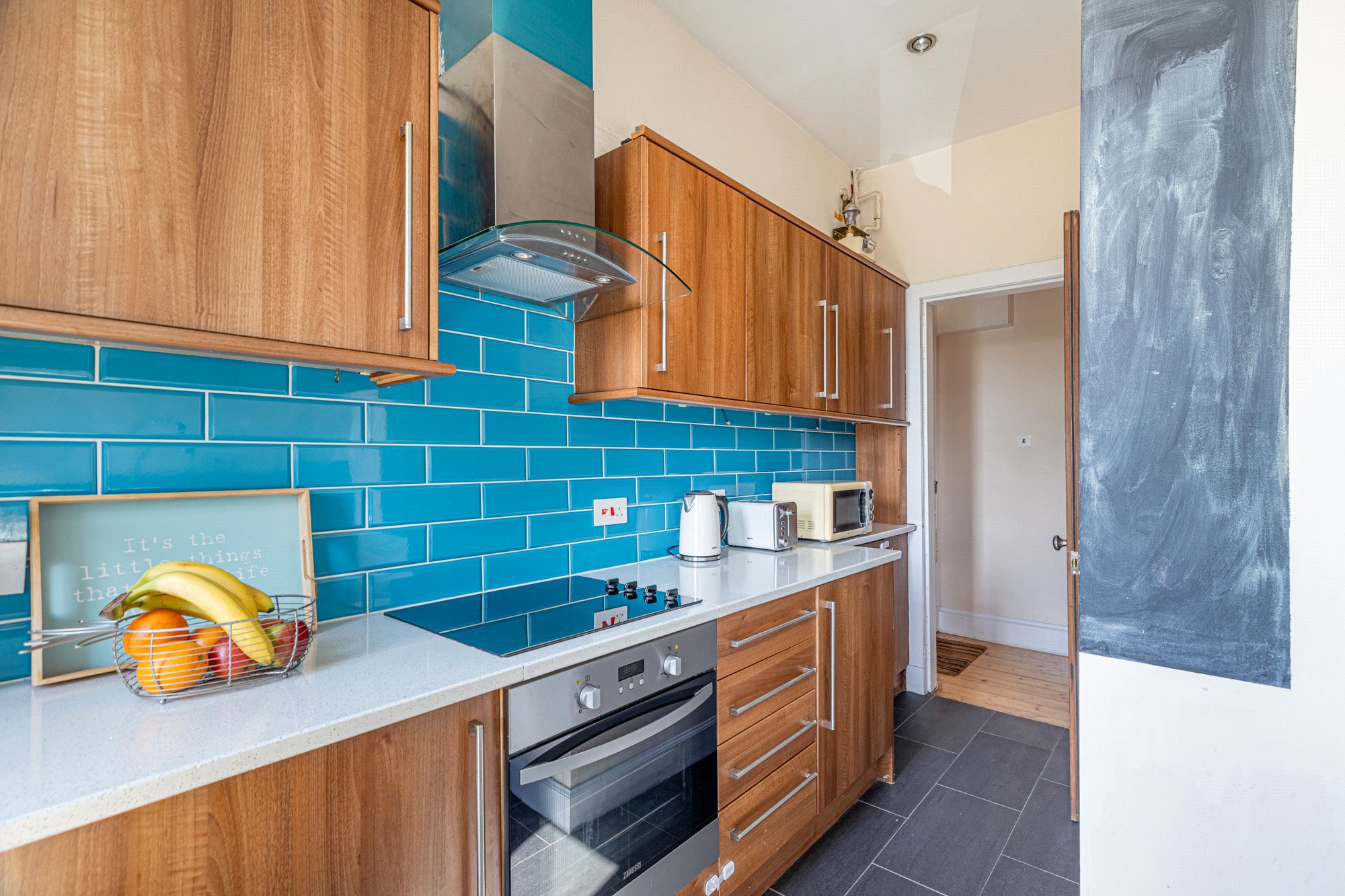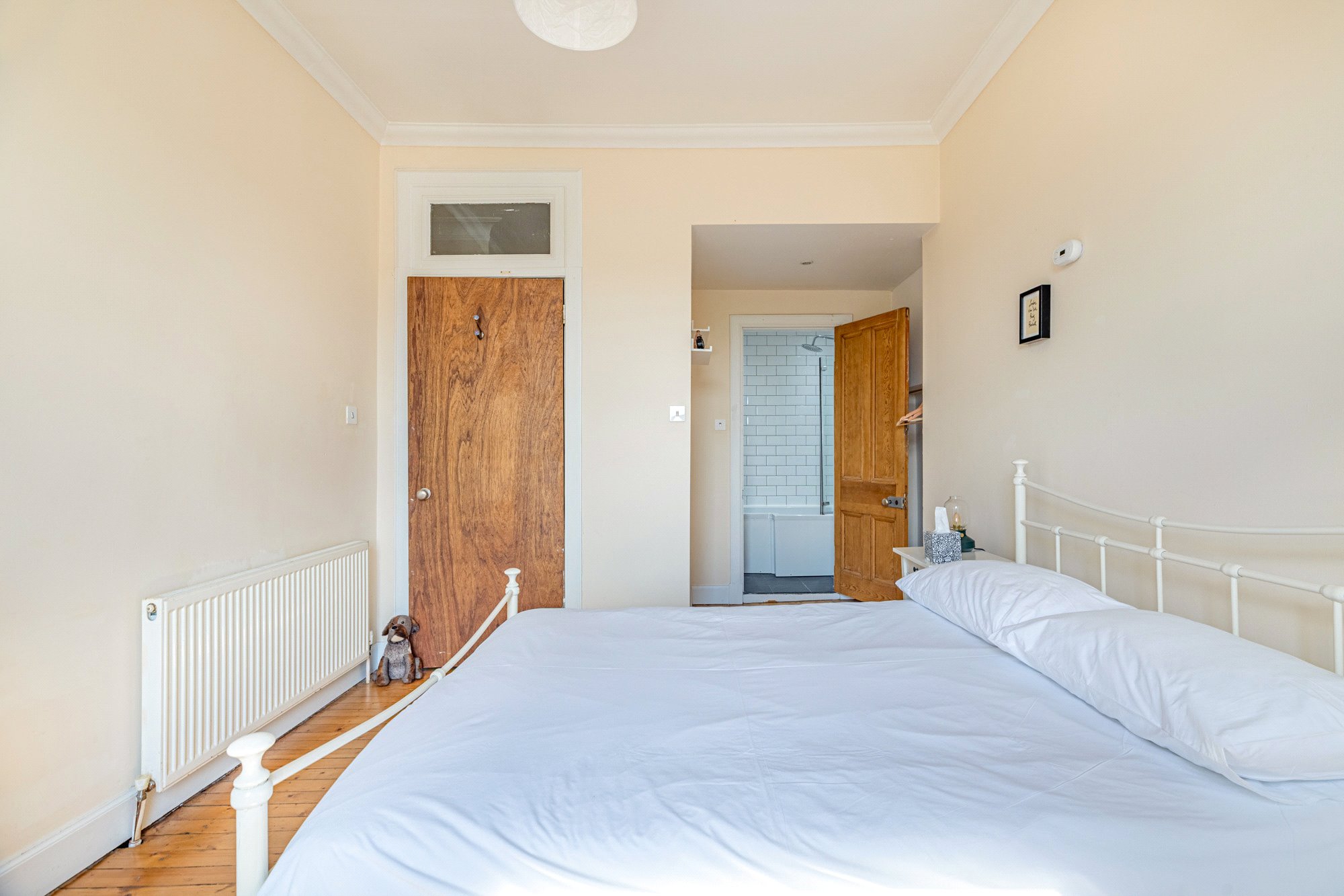Internally, the apartment has been maintained to a high standard, offering bright and comfortable living quarters. The accommodation comprises: entrance hall; living room with bay window and beautiful central fireplace; galley kitchen with integrated appliances; broad double bedroom with recessed dressing area; and a beautiful en-suite bathroom complete with white suite, shower over bath, and flatform subway tiling. A separate WC off the hall completes the accommodation.