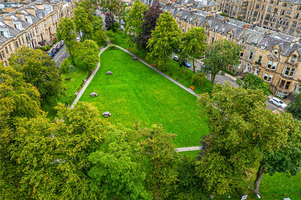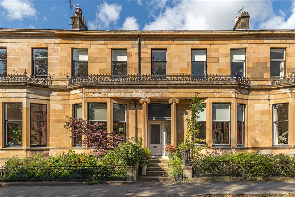 The property is one of three (Nos 49-51) refined Thomsonesque terraced houses built circa 1875 and quietly set behind the famous Alexander “Greek” Thomson terrace on Hyndland Road.