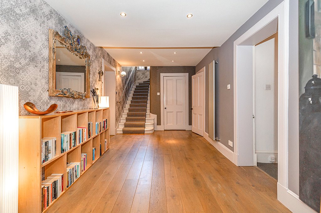 - Fabulous, stylish reception hall with wooden flooring, ornate cornicing and original stairway/banister at the rear.
