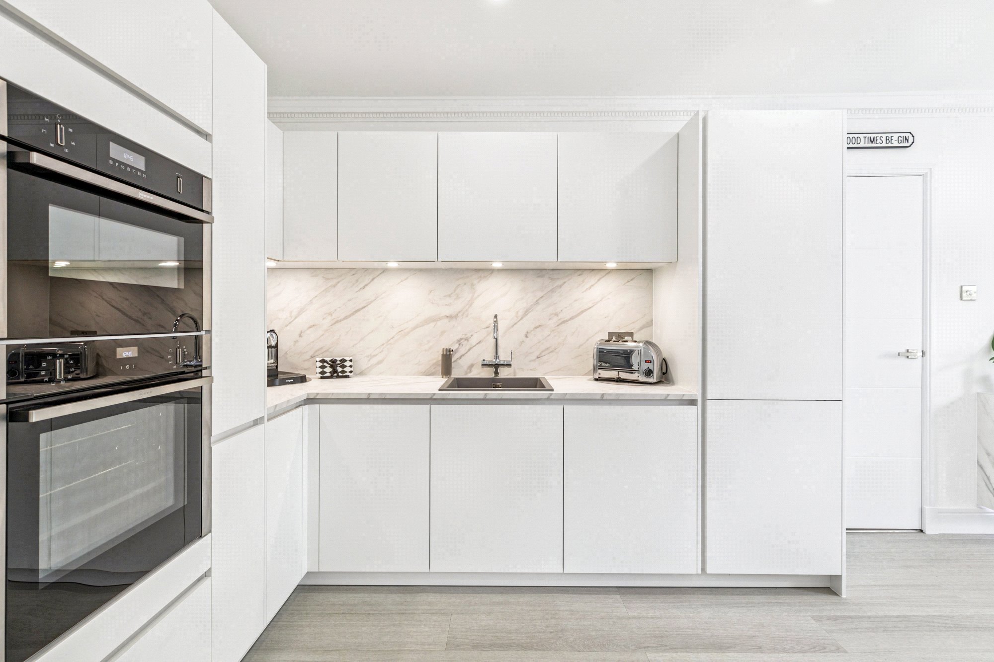 wine fridge, Neff Hide & Slide single oven, combination microwave oven, induction hob, dishwasher & Franke 3 in 1 boiling water tap