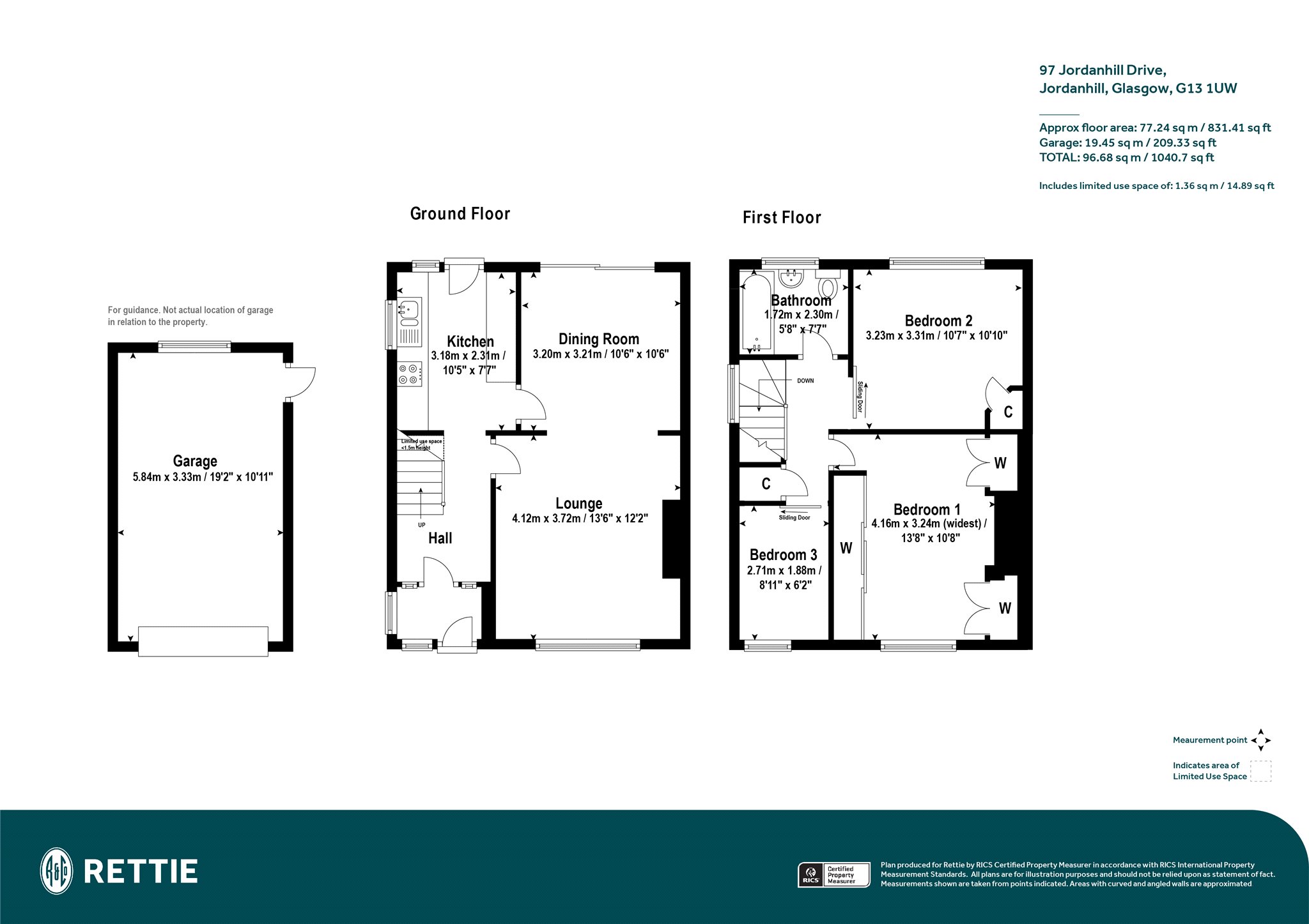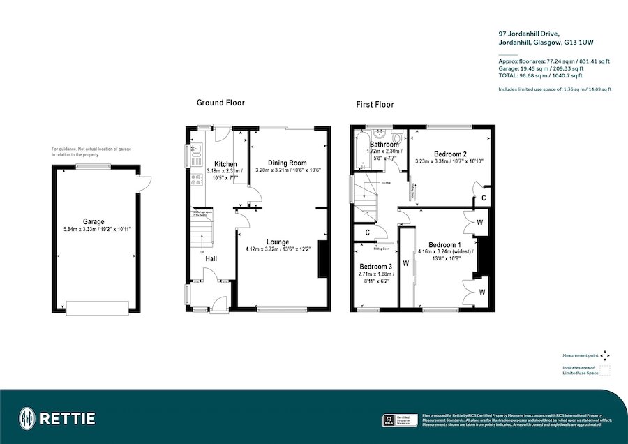 Entrance vestibule; reception hall with staircase to upper floor. Main lounge with window to front; dining room with patio doors to rear; kitchen with direct access to the rear garden; upper landing; bedroom one to front; bedroom two with window to rear; bedroom three with window to front; three piece bathroom comprising bath, over bath shower, toilet and wash hand basin. The property has private front and rear gardens, driveway and brick-built garage.