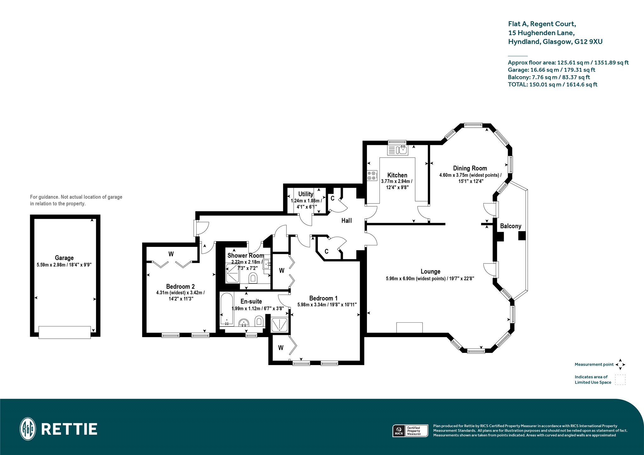 The internal accommodation is immaculately presented throughout, benefits from excellent natural light and has an incredibly spacious feel extending to circa 1350sq feet. Notable highlights include a superb bay windowed lounge, an adaptable bay windowed dining room, a kitchen (accessed via the reception hall or dining room), two spacious double bedrooms, a four-piece en suite bathroom and a modern three-piece shower room. Additional features include ample storage off the reception hall and both bedrooms. There is an invaluable utility cupboard off the reception hall together with a delightful private balcony which can be accessed from the lounge and dining room. There is ample off street residents’ parking and we would also highlight the significant advantage of a private garage.