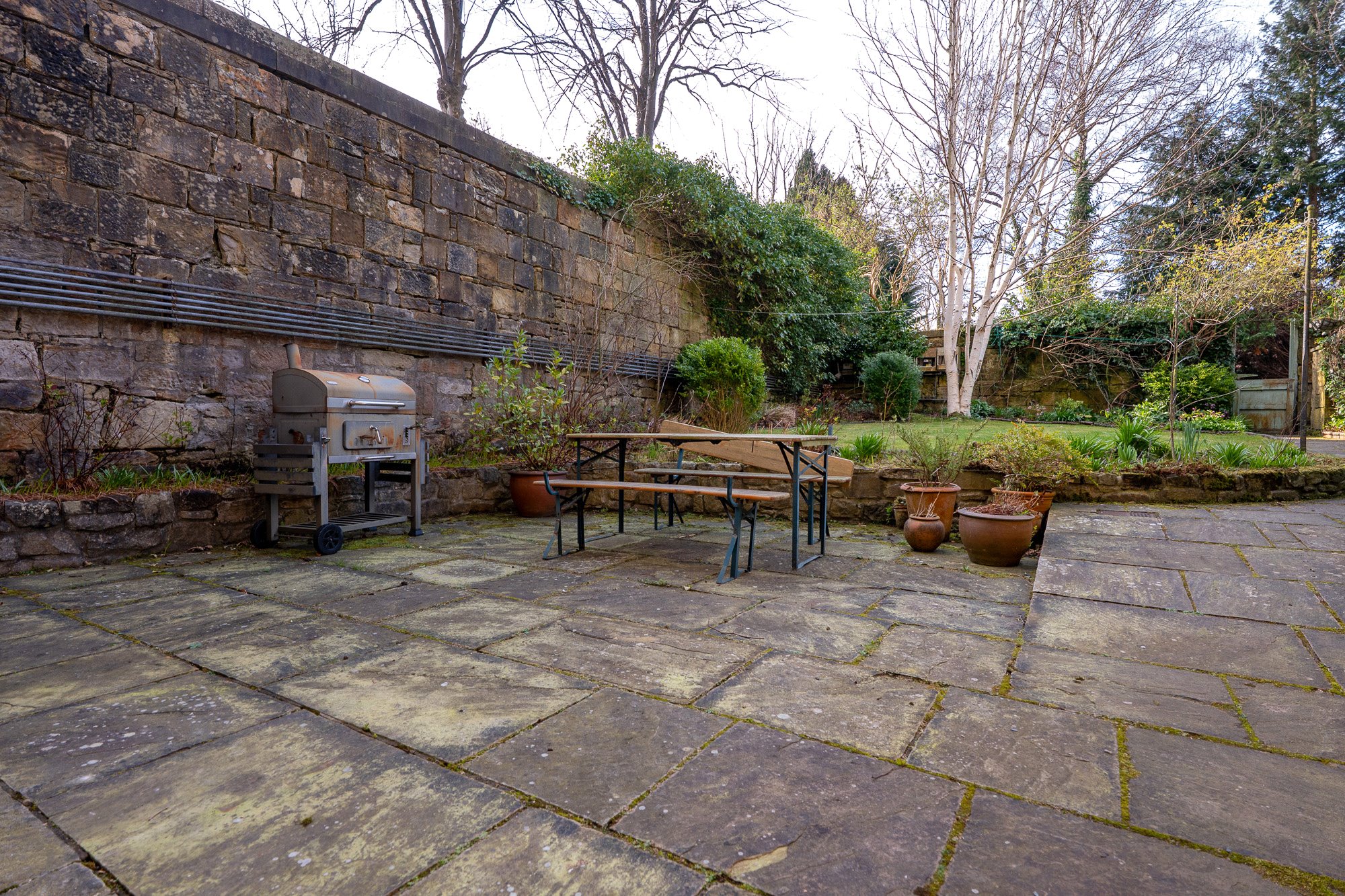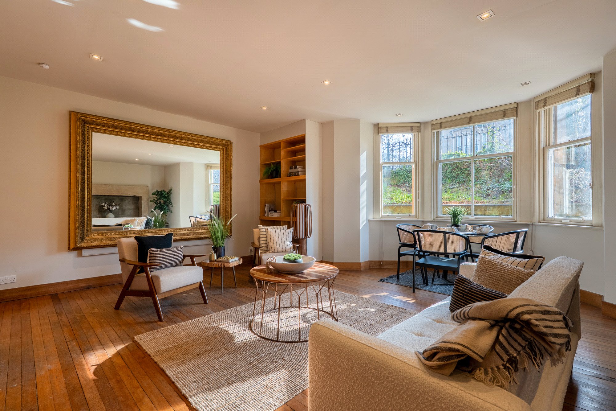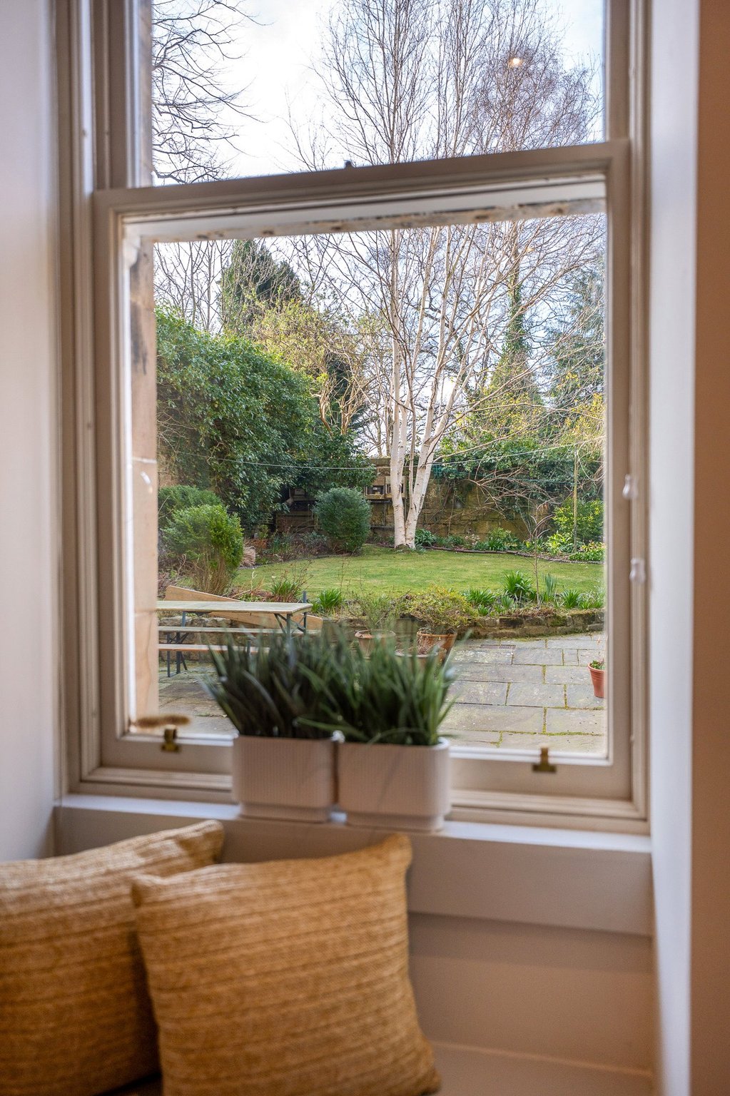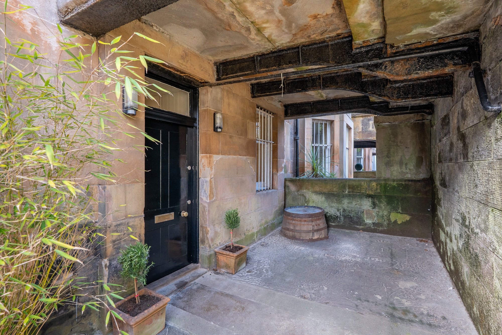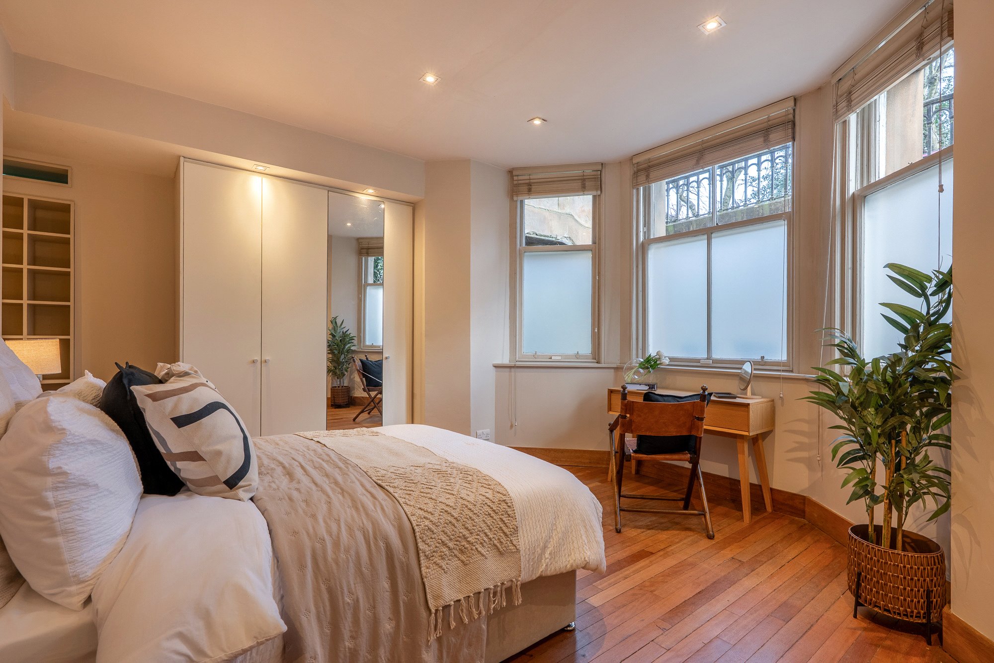 The property for sale is held within the Eastmost gable end Pavillion house, perfectly orientated for exposure to natural light from early in the morning, throughout the afternoon and into the evening. The property is situated at garden level and has a private entrance gate that provides access to the main door entrance via a short flight of steps and an enclosed ‘well garden’ – just beneath the ‘flying staircase’ for the house above. As such the property’s entrance is highly private and well sheltered – perfect for sitting outdoors and getting some fresh air, regardless of weather conditions. To the rear of the property there is an enclosed resident’s garden into which the home for sale has access. This lovely South-facing shared outdoor space is laid to lawn and is maintained to a good standard.