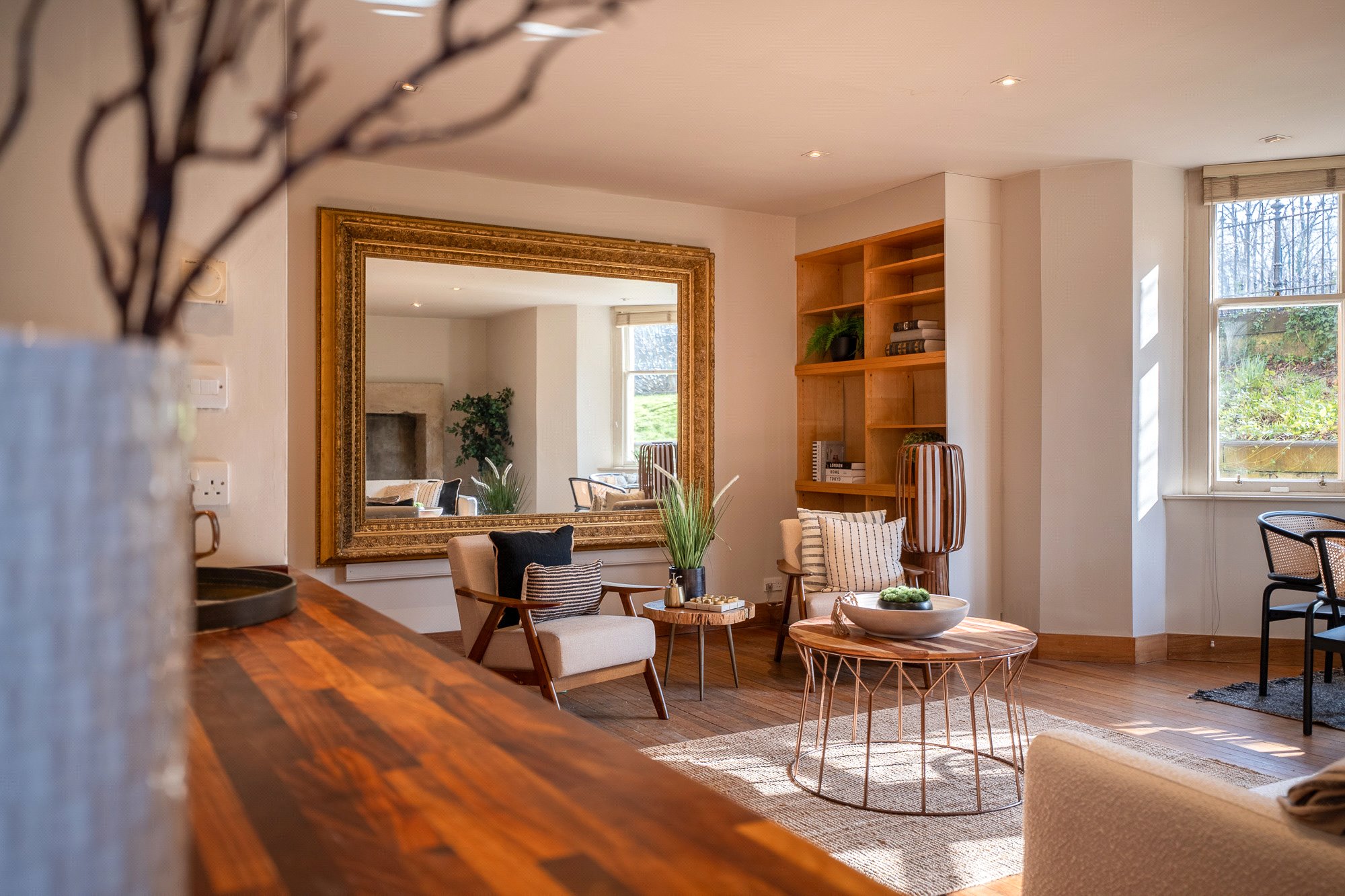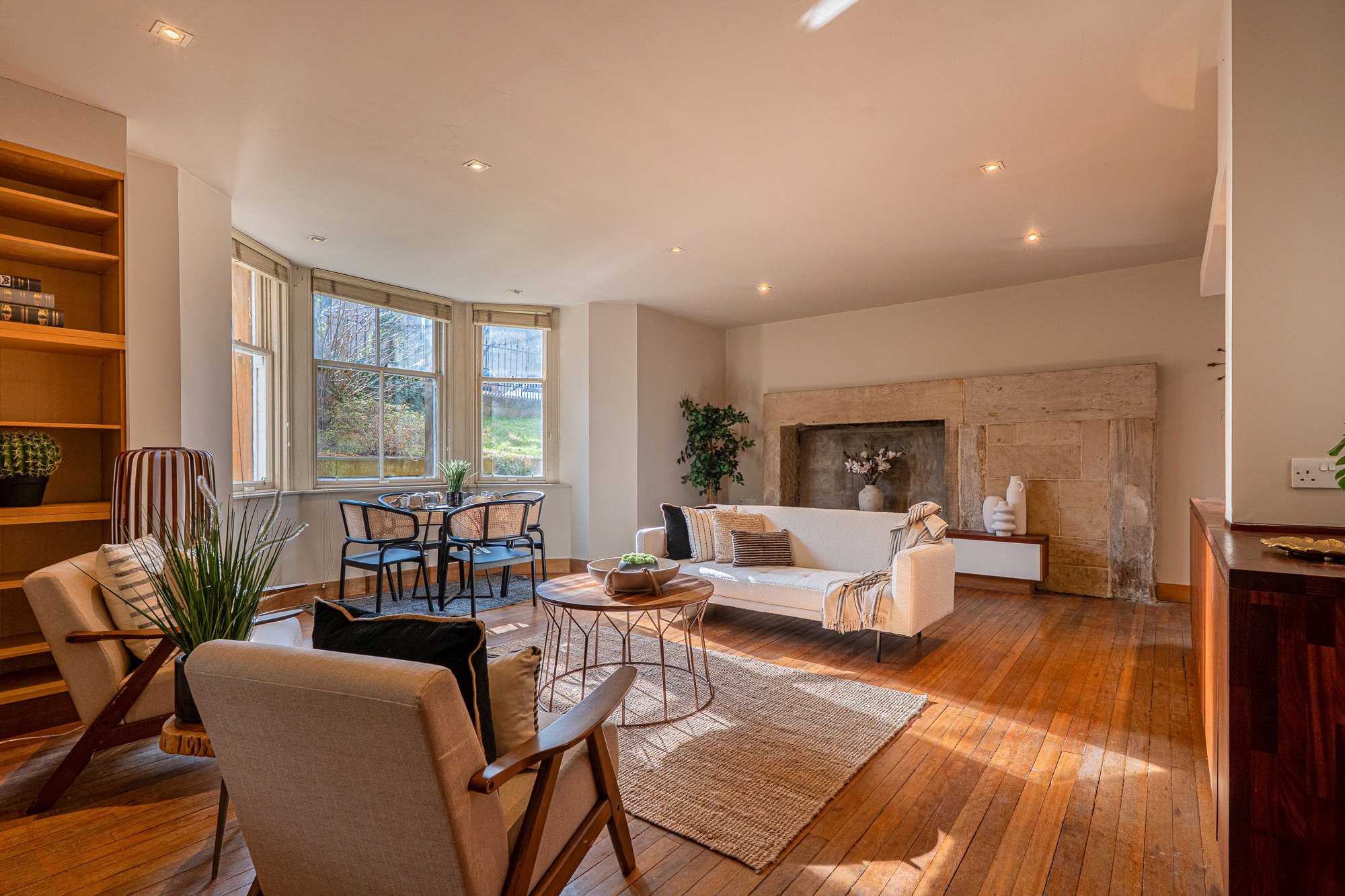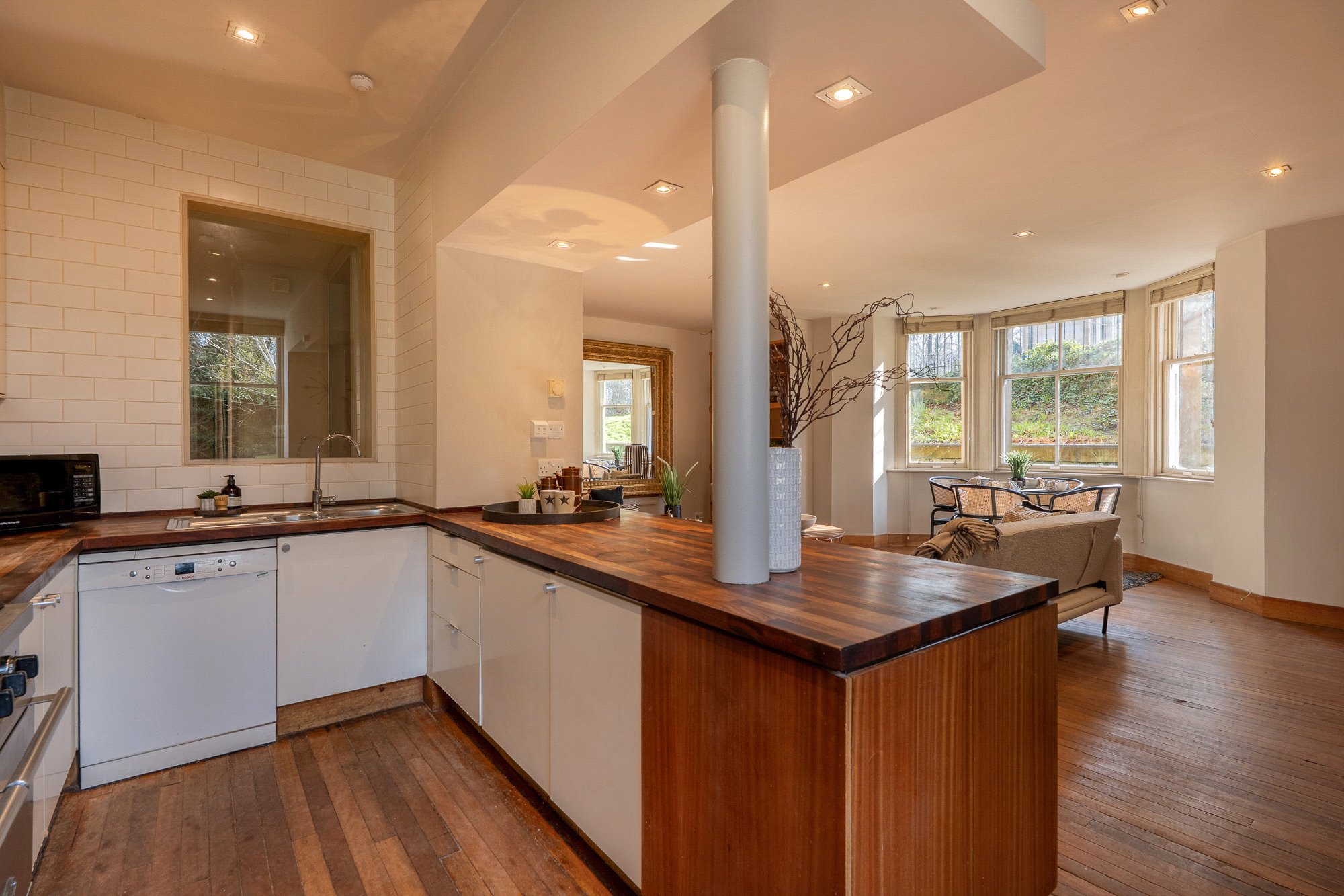 Internally this is an extremely attractive three-bedroom apartment which offers substantial, versatile accommodation that has been re-configured by the current owners to offer highly attractive, functional accommodation in which original features have been carefully exposed and restored. The result is a comfortable, stylish living space which simply must be seen in person to be fully appreciated. The attached photographs and HD video will give you some idea of the overall size, style and specification of the property but in brief the accommodation extends to; main door entrance to reception hall that leads to each of the principal apartments, plumbed utility cupboard with laundry pulley and a large storage cupboard. There is a substantial living room which has an exposed blonde sandstone fireplace on one wall and is open plan to a sleek modern kitchen complete with professional standard cooker – a brilliant flowing space that would be great for a growing family or couple who enjoy entertaining guests. The three bedrooms are all of king-sized proportions and the principal has an en-suite shower room. The main bathroom has a white suite with shower over bath.