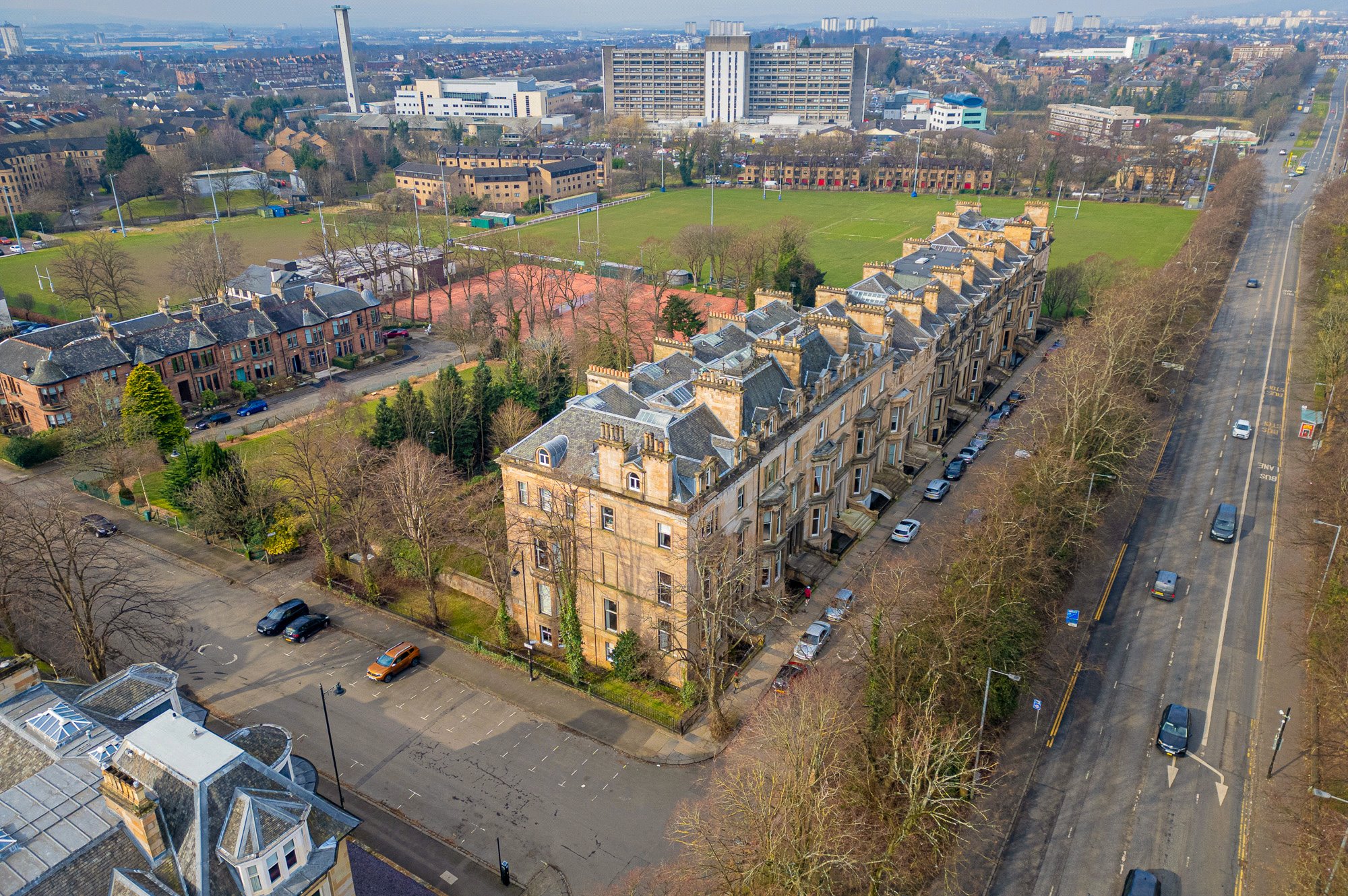 Devonshire Terrace was designed by renowned Glasgow Architect, James Thomson. A significant influence of architecture within the West End of the city, Thomson, is responsible for the historical street layout & feu arrangement of the Dowanhill Estate and indeed the design of many highly regarded local terraces including both Belhaven Terraces, & Crown Circus as well as iconic buildings in Glasgow city centre such as the ornate Connal building of West George Street. Testament to the works of this celebrated designer, Devonshire Terrace which was originally constructed in 1883, is a stunning traditional terrace constructed of polished ashlar and set within a beautiful tree-lined enclave, running East to West with South facing gardens to rear. It is regarded as one of the West End’s finest grand terraces and is stunningly leafy and peaceful, despite being within easy cycling distance of Byres Road & all the West End hustle and bustle you could wish for.