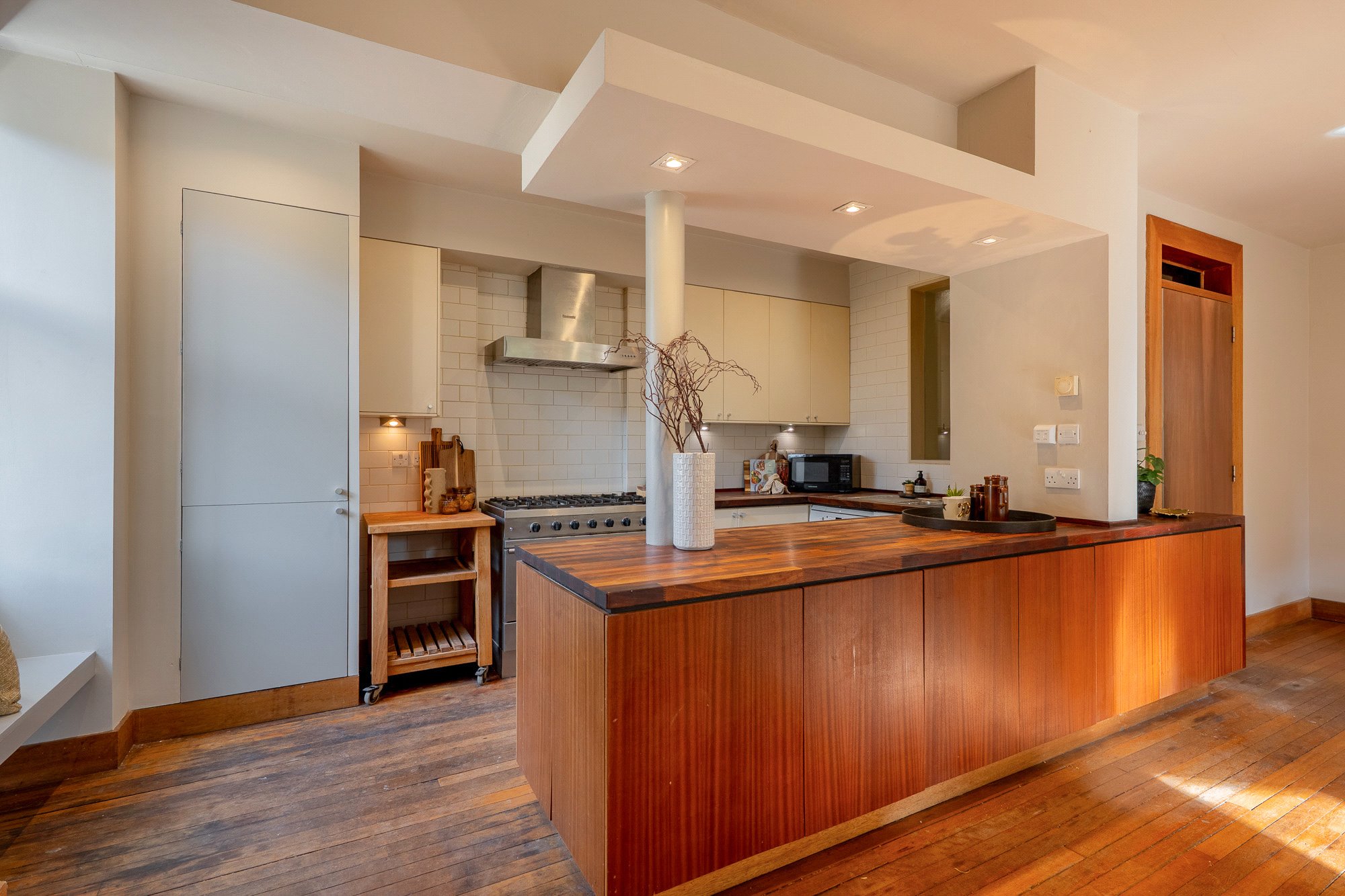 As you will see, the property has been skilfully re-designed and improved with great thought, attention to detail and beautiful use of carefully selected finishings. From reclaimed hardwood flooring to exposed, cleaned sandstone, stained plywood finishings and subway tiles galore – it is plain that the current owners are designers.