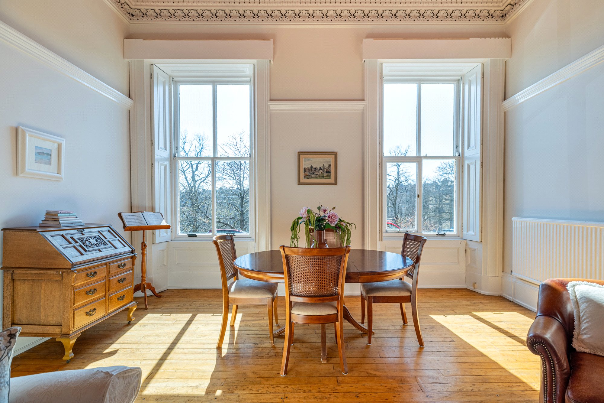 Internally the accommodation extends to in excess of 2,300 square feet and retains some stunning original features such as fireplaces and ornate ceiling cornicing. The layout is really adaptable and whilst there is a degree of modernisation required, there is exciting potential for re-configuring – subject to all necessary permissions.
