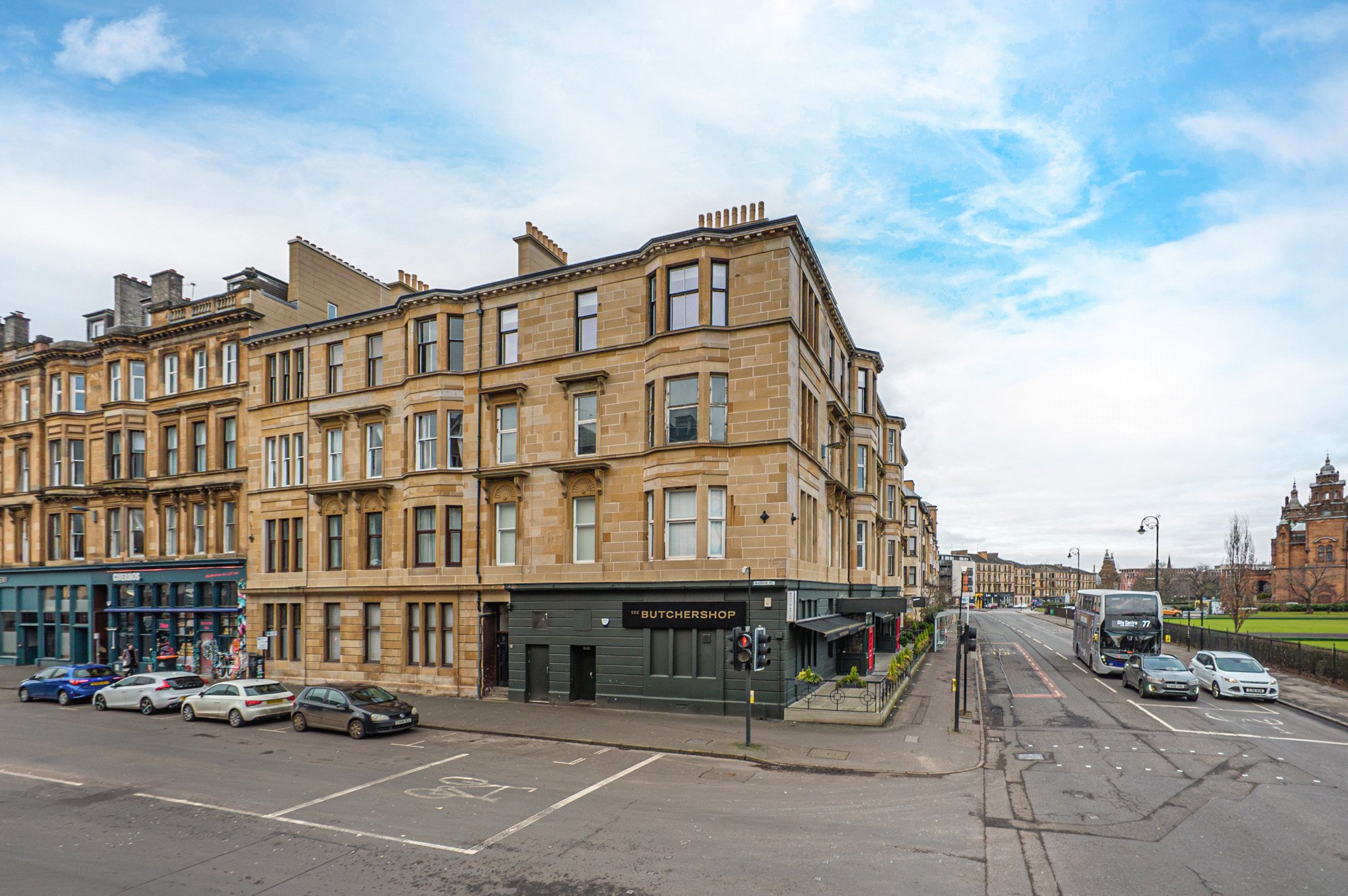 Situated on the corner of Radnor Street and Sauchiehall Street, this incredible property has a truly historic Glasgow outlook directly to Kelvingrove Park, the bowling greens, the magnificent Kelvingrove Art Galleries, the iconic Glasgow University and finally up to the curves of Park Terrace. It is quite literally like a Glasgow “postcard” view and the purchaser of this amazing flat will experience that every day.