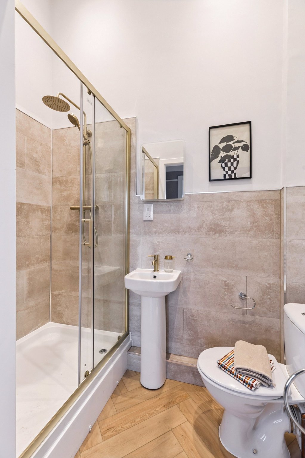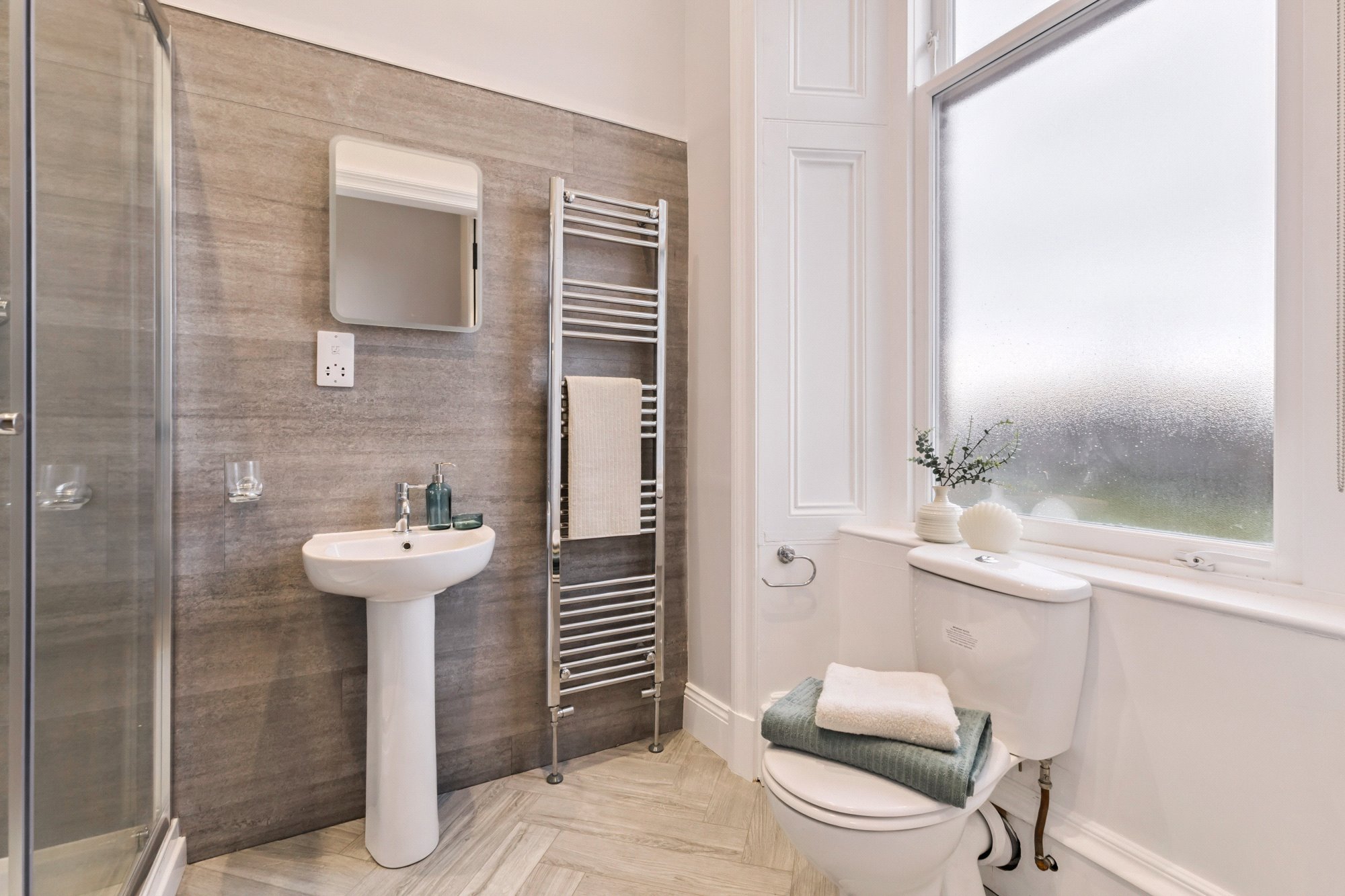 Internally the flat is like a new home with everything refitted and this includes flooring, decoration, kitchen, two en suite shower rooms and a further shower room off the reception hall.