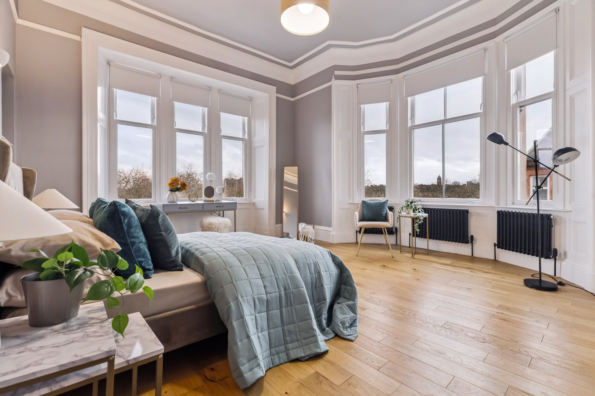 This quite extraordinary four bedroom flat has one of the most special and stunning views that the West End has to offer.