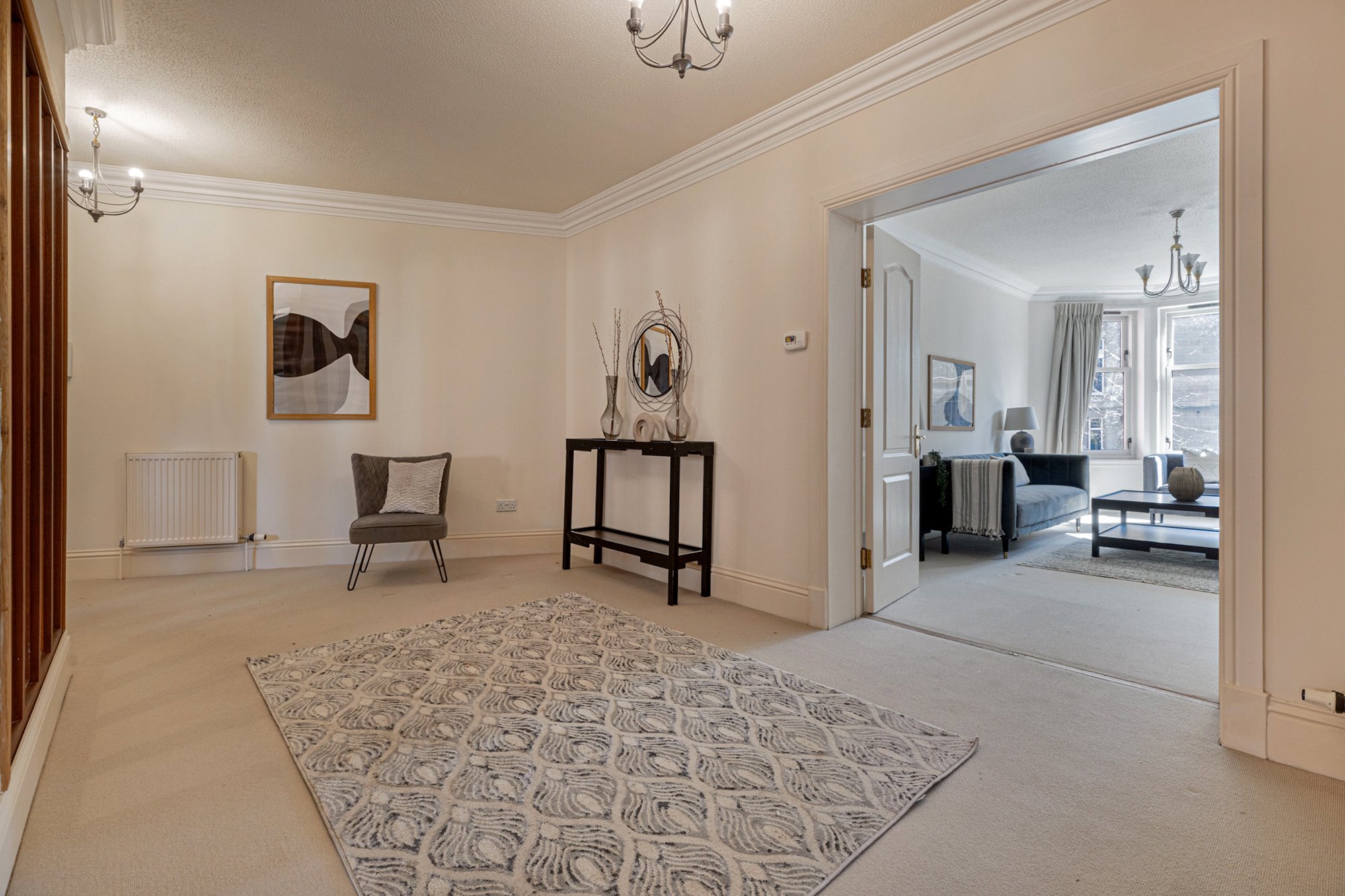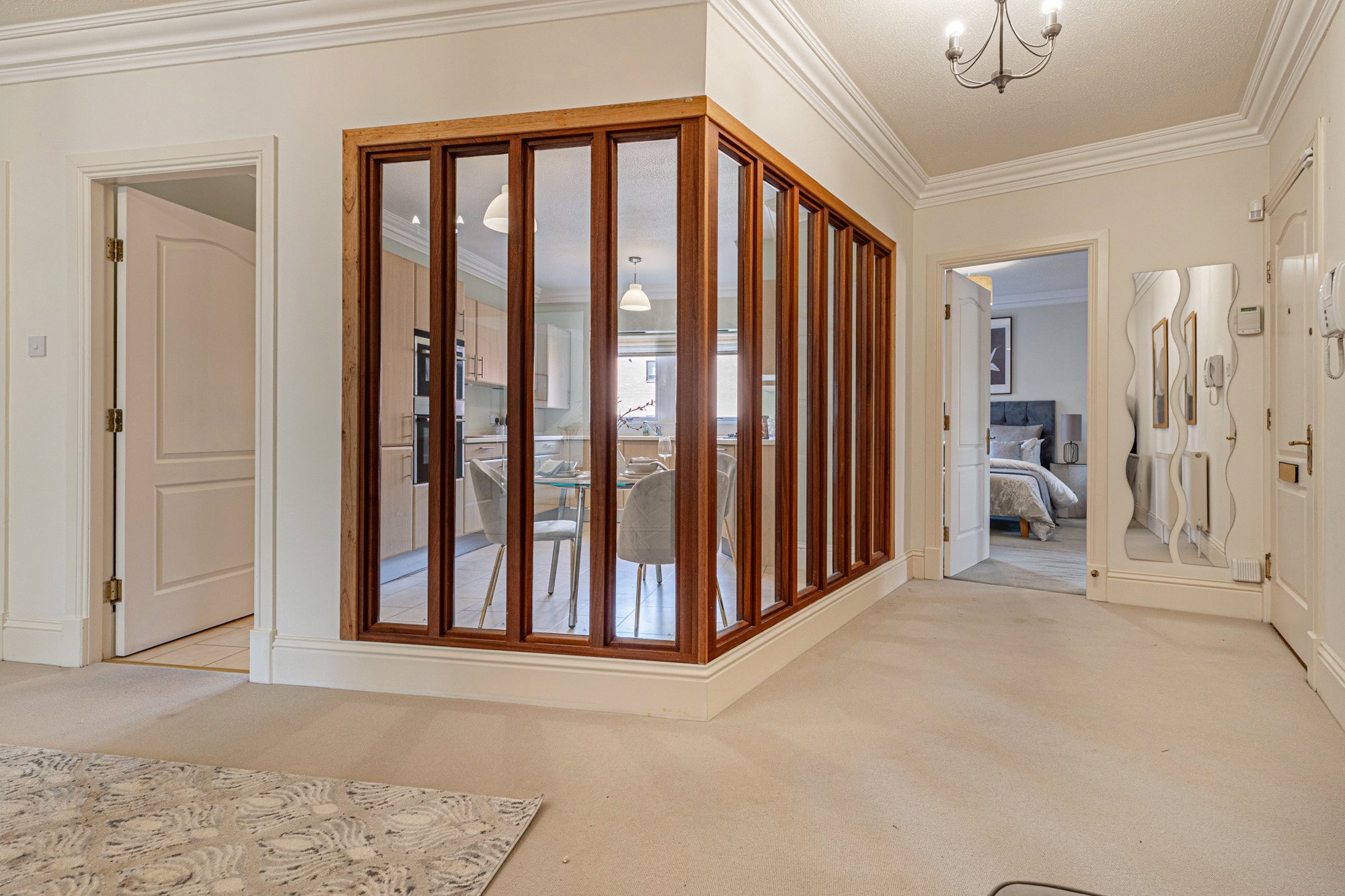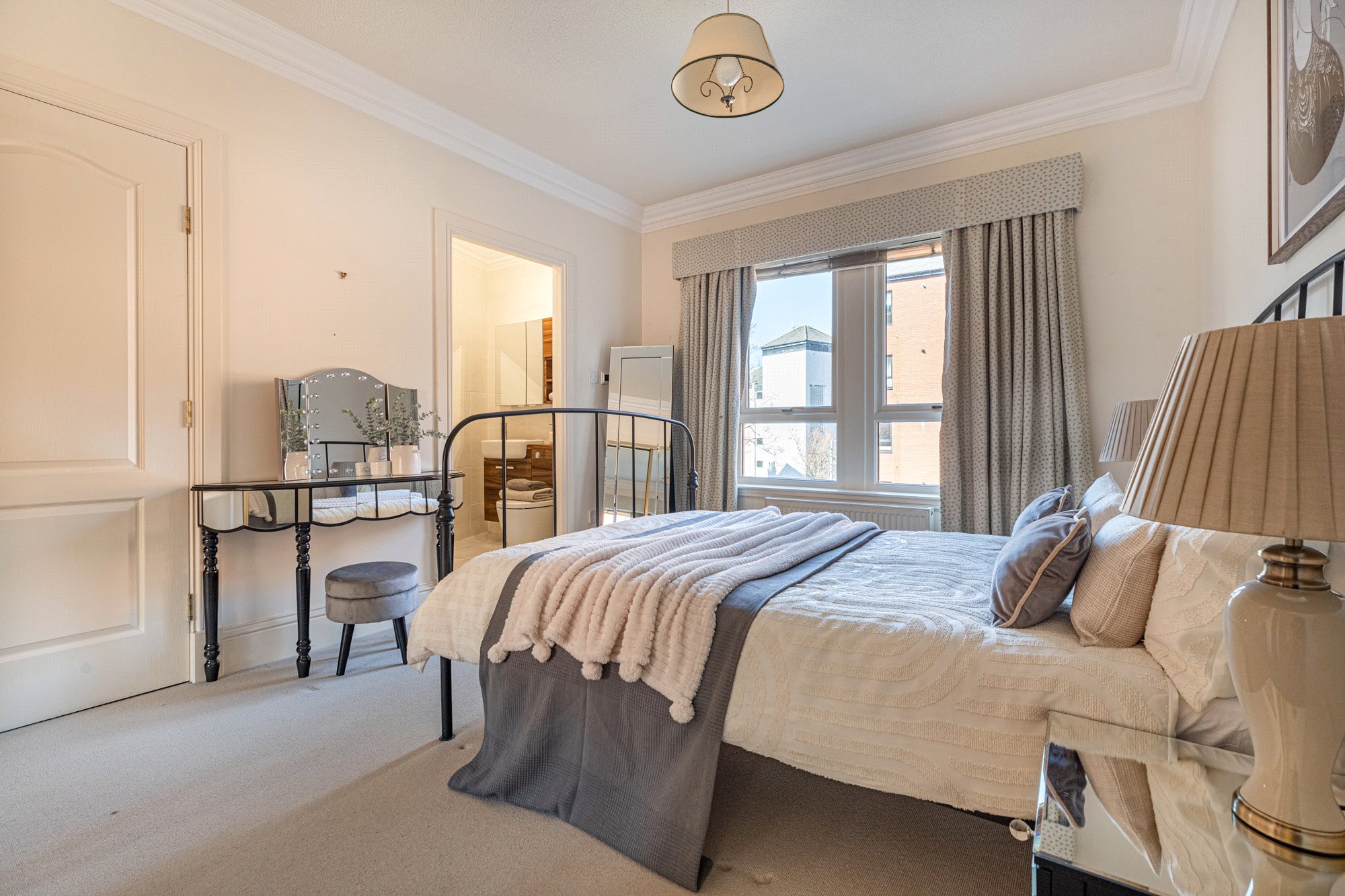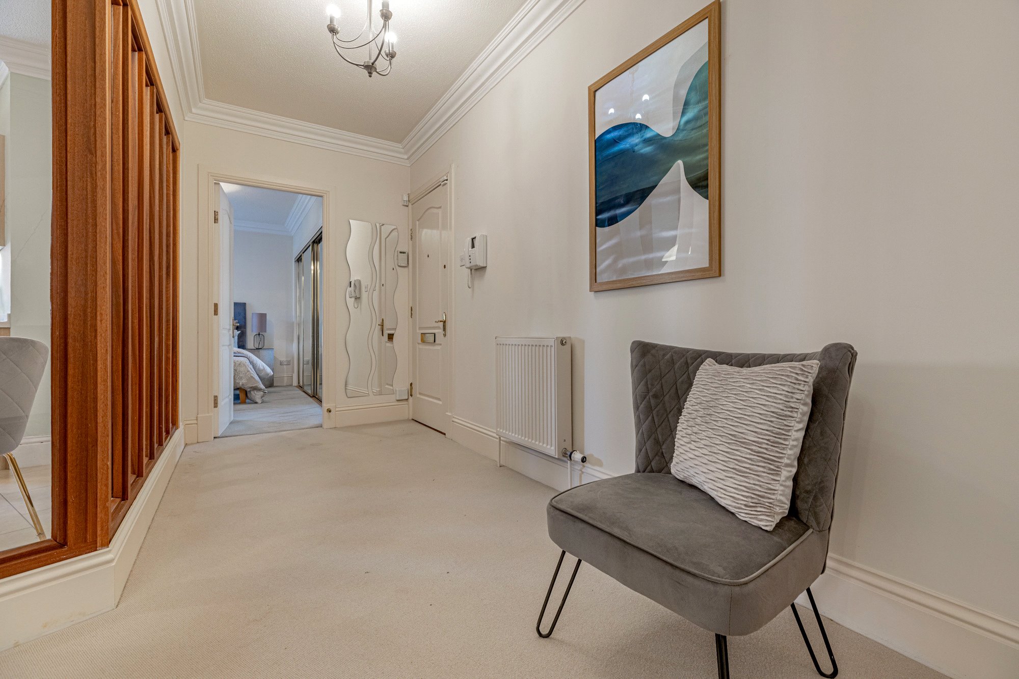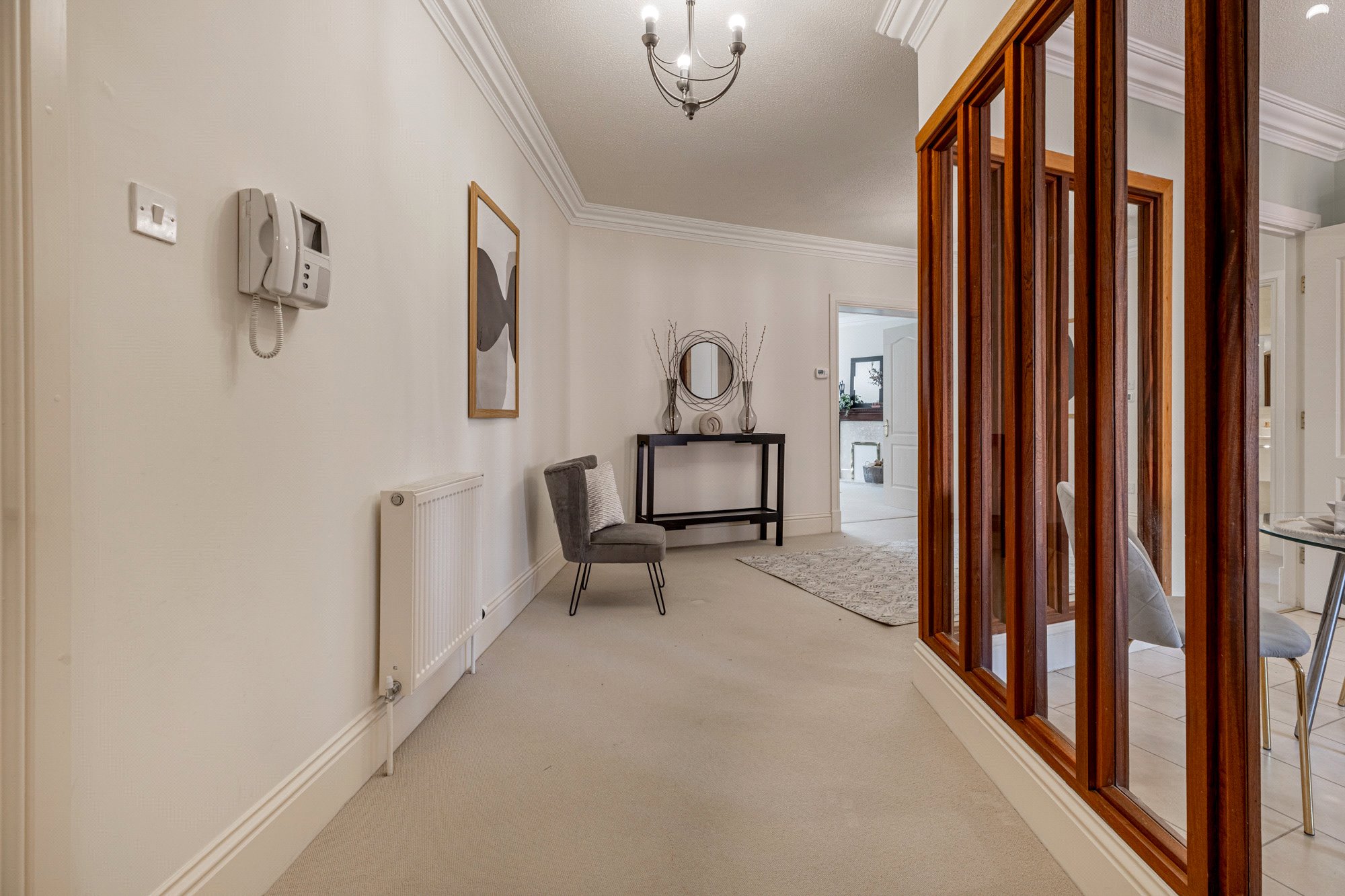 The internal accommodation is well presented throughout, benefits from excellent natural light and has a particularly comfortable feel. The interior includes a superb bay windowed lounge, a separate dining sized kitchen, two spacious double bedrooms, a modern en suite shower room and a stylish four-piece bathroom. We would also highlight the excellent proportions of the reception/dining hall together with the ample storage off both bedrooms. Additional features include the significant advantage of an allocated parking space within the secure residents’ car park, lift access to each level and an immaculately presented communal garden/courtyard to the rear of the building.