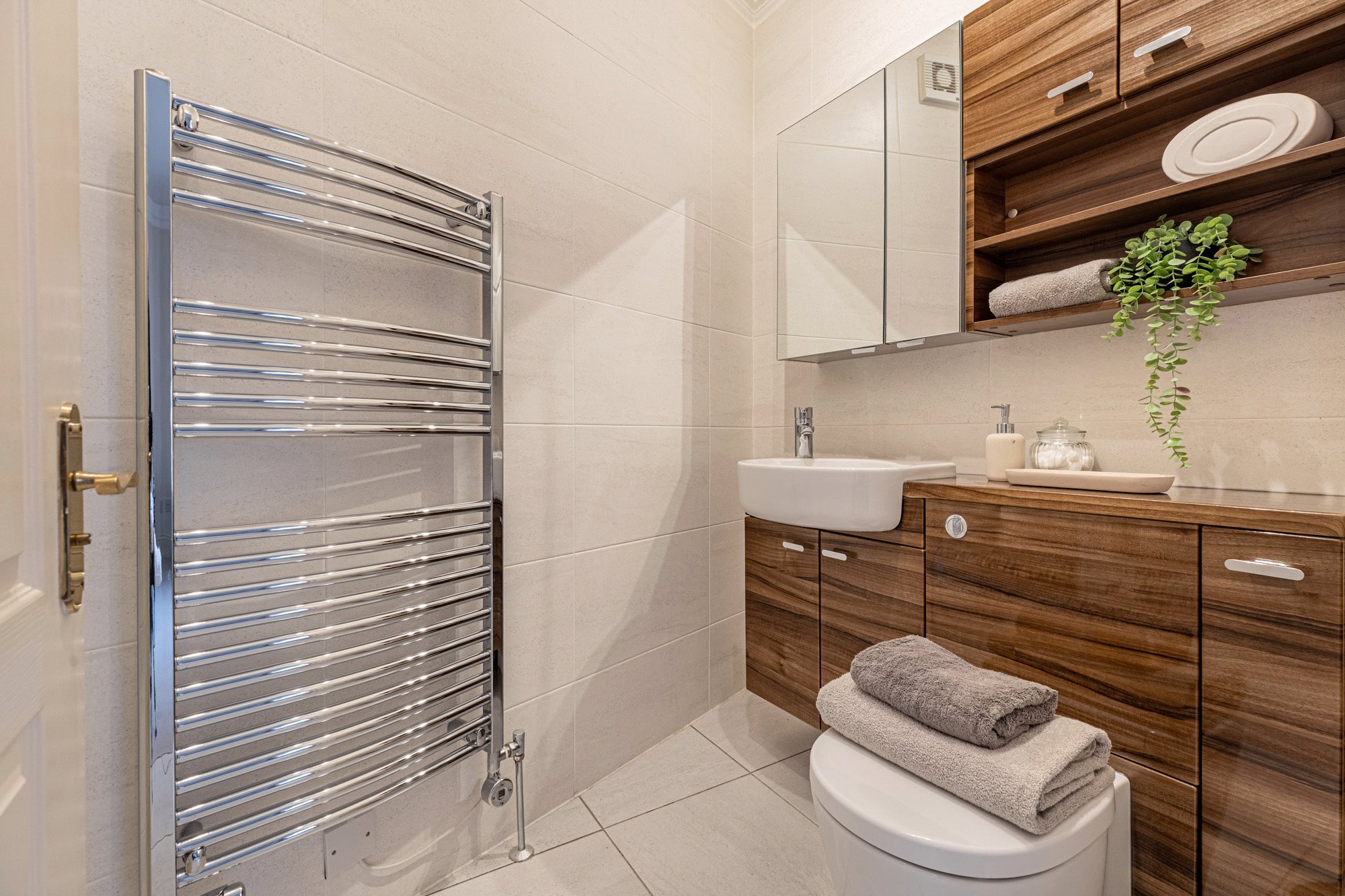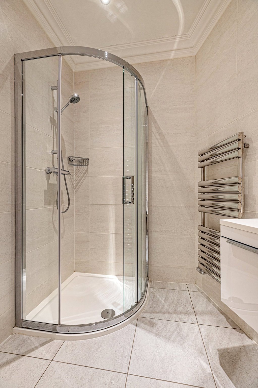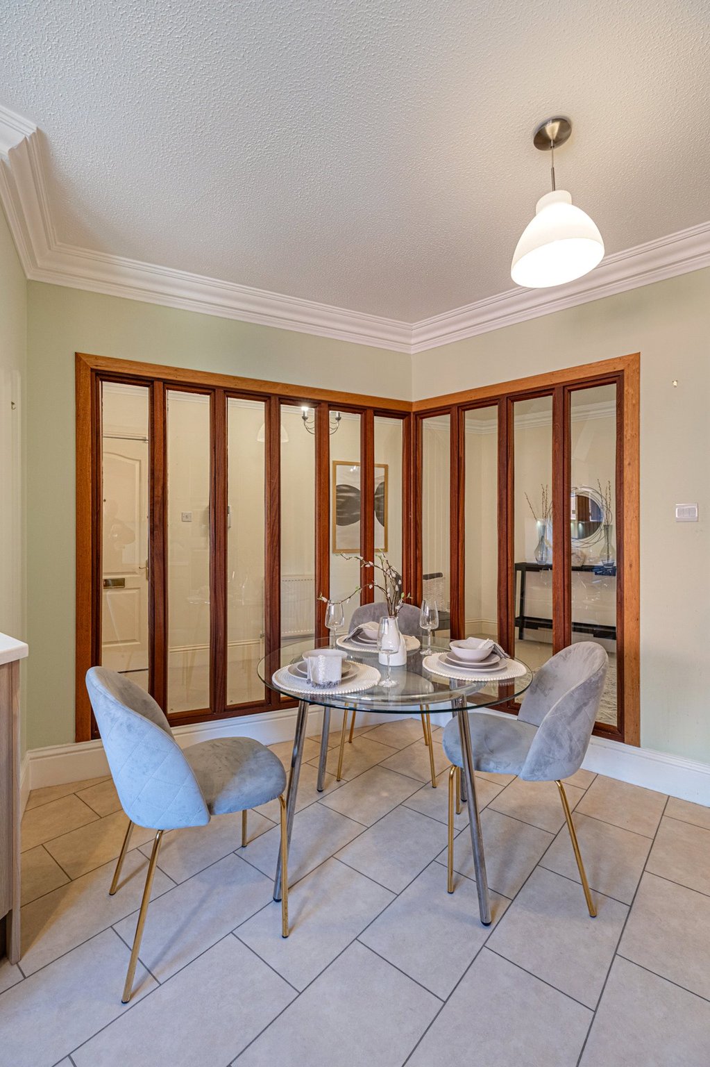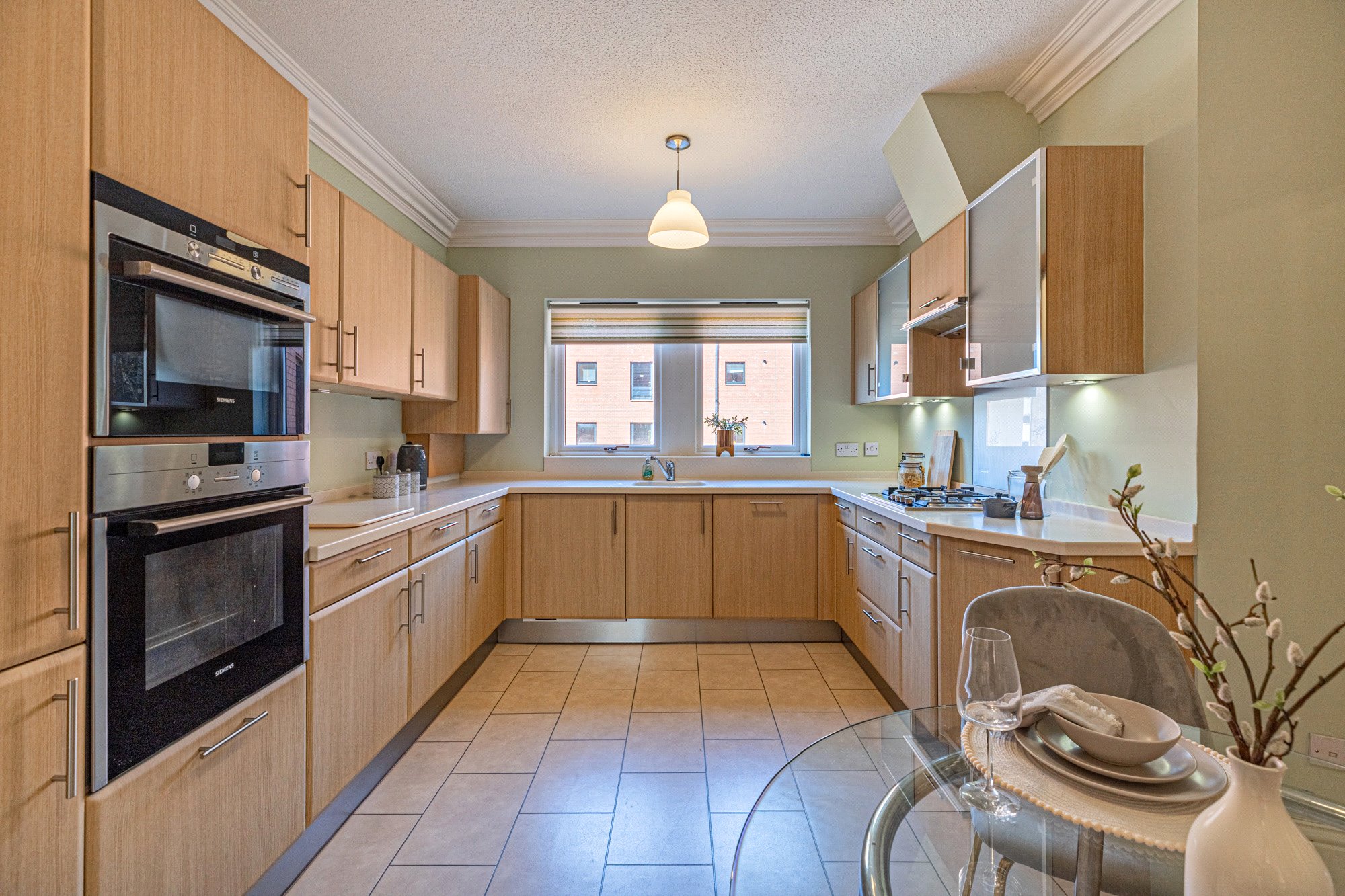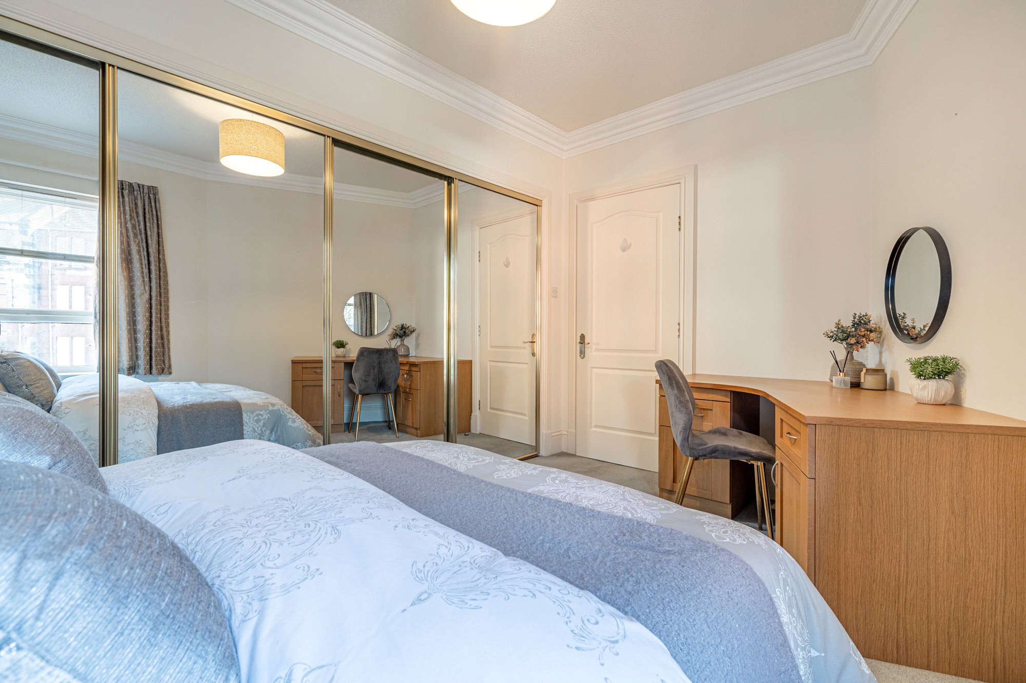 The internal accommodation is well presented throughout, benefits from excellent natural light and has a particularly comfortable feel. The interior includes a superb bay windowed lounge, a separate dining sized kitchen, two spacious double bedrooms, a modern en suite shower room and a stylish four-piece bathroom. We would also highlight the excellent proportions of the reception/dining hall together with the ample storage off both bedrooms. Additional features include the significant advantage of an allocated parking space within the secure residents’ car park, lift access to each level and an immaculately presented communal garden/courtyard to the rear of the building.