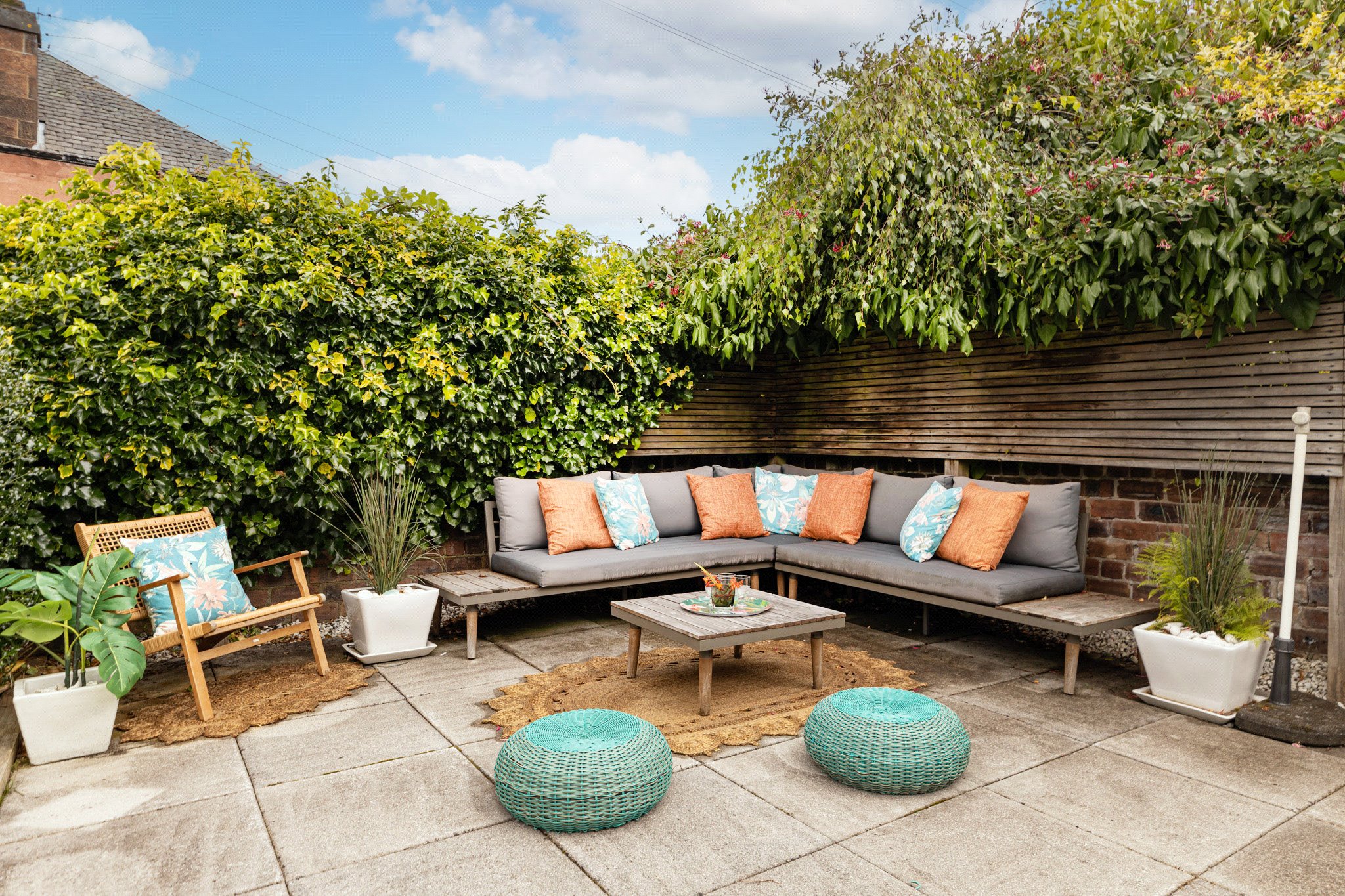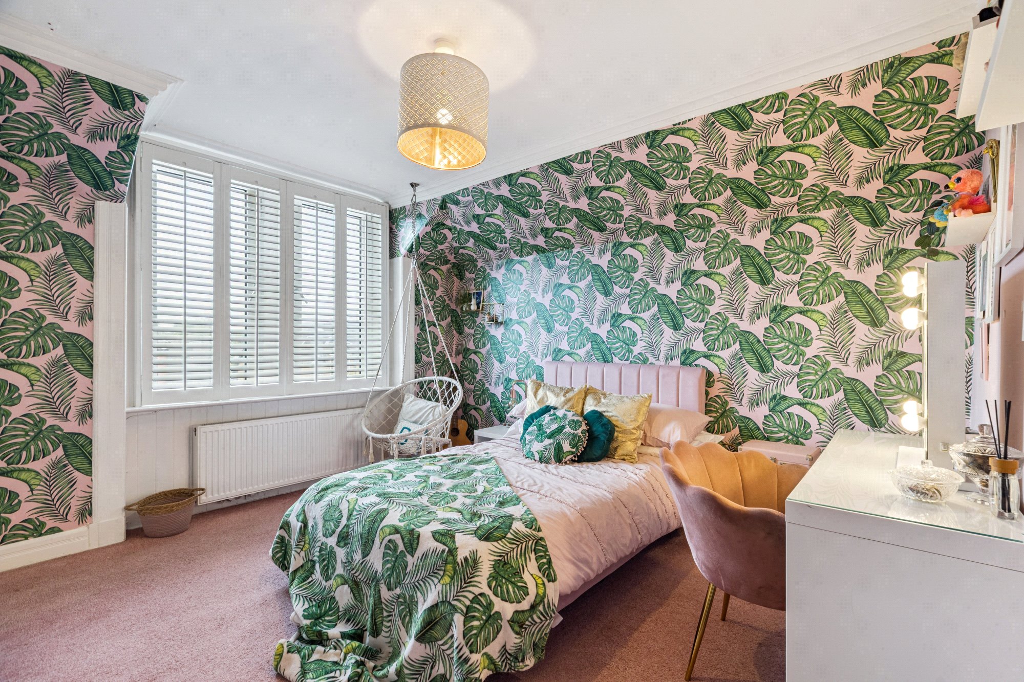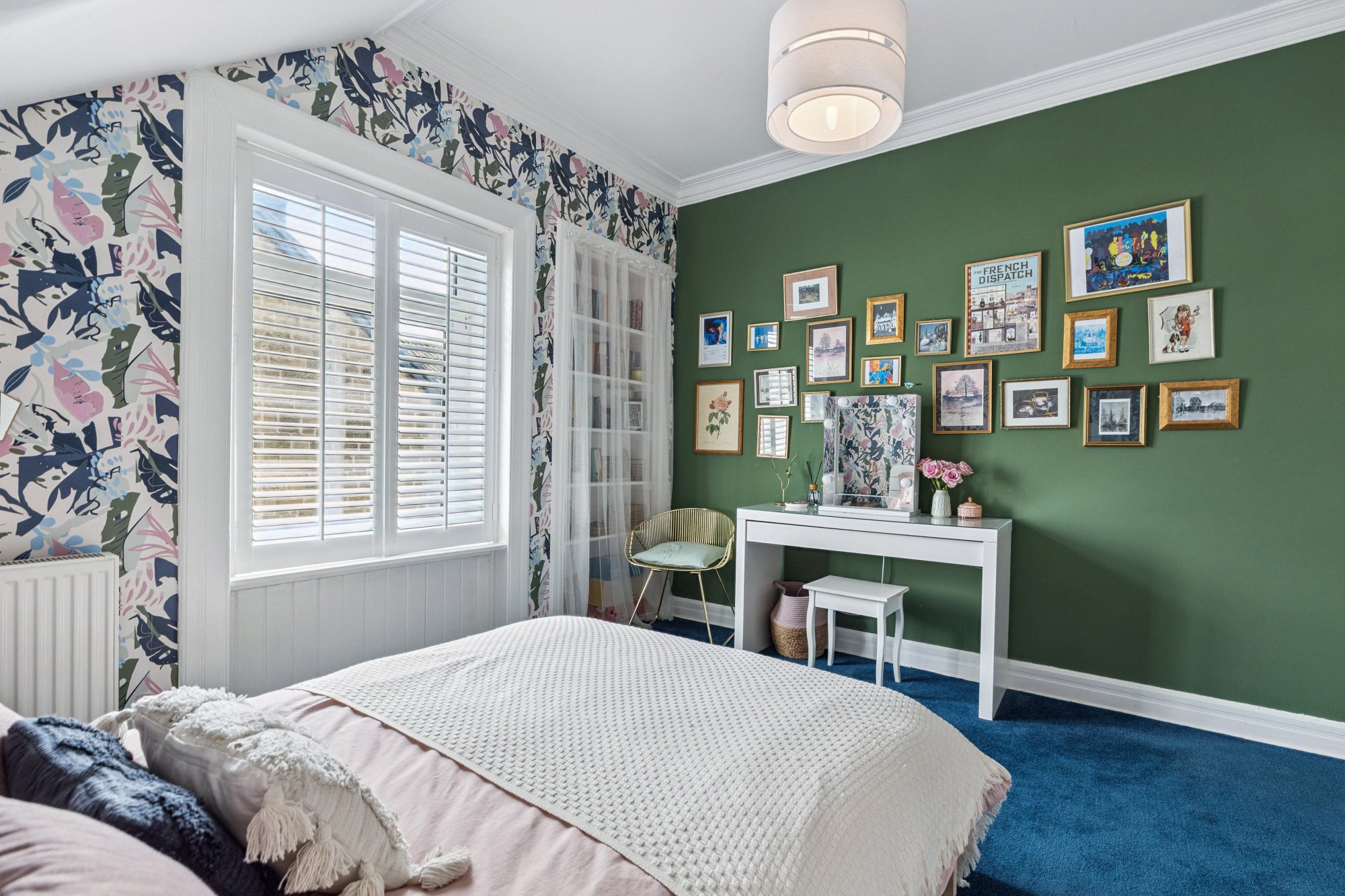 The decoration has been approached with creativity and care, enhancing the original character while introducing a warm and contemporary feel. Bespoke plantation shutters grace each bedroom, the bathroom, and the front reception room, adding further elegance and practicality. The heart of the home is the bright dining kitchen, complete with integrated appliances and bespoke booth seating. This inviting space flows effortlessly into the rear conservatory, is flooded with natural light and opens directly onto the wonderful landscaped garden. The grounds are thoughtfully designed and well maintained, wrapping around the whole side of the property to offer a good balance of privacy, space, and easy maintenance to alleviate the burden of excessive upkeep.