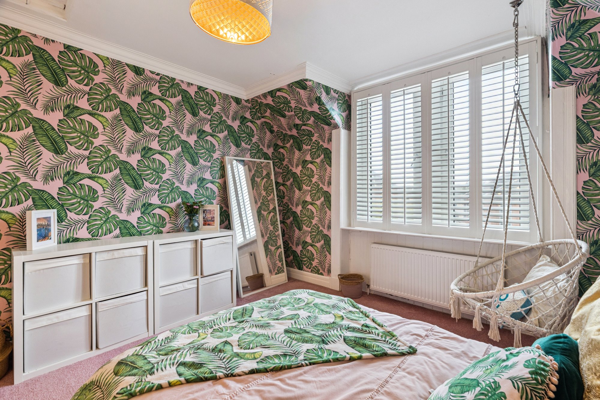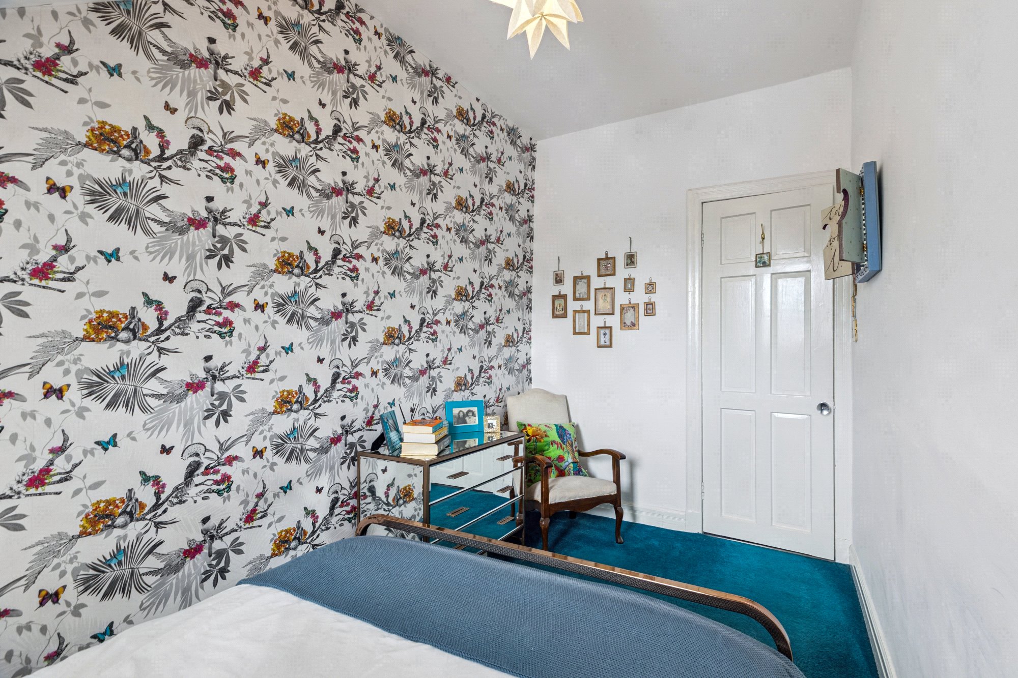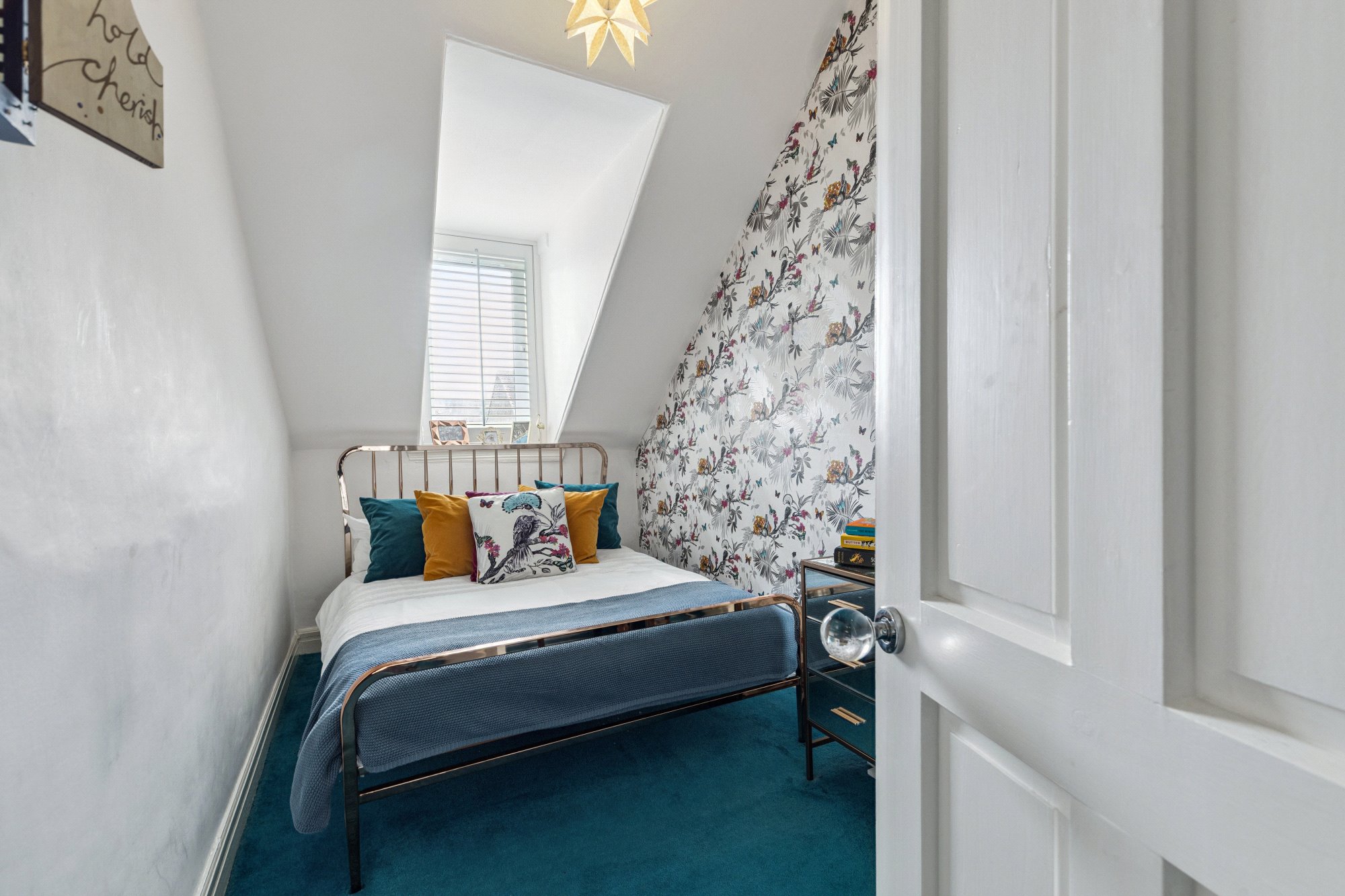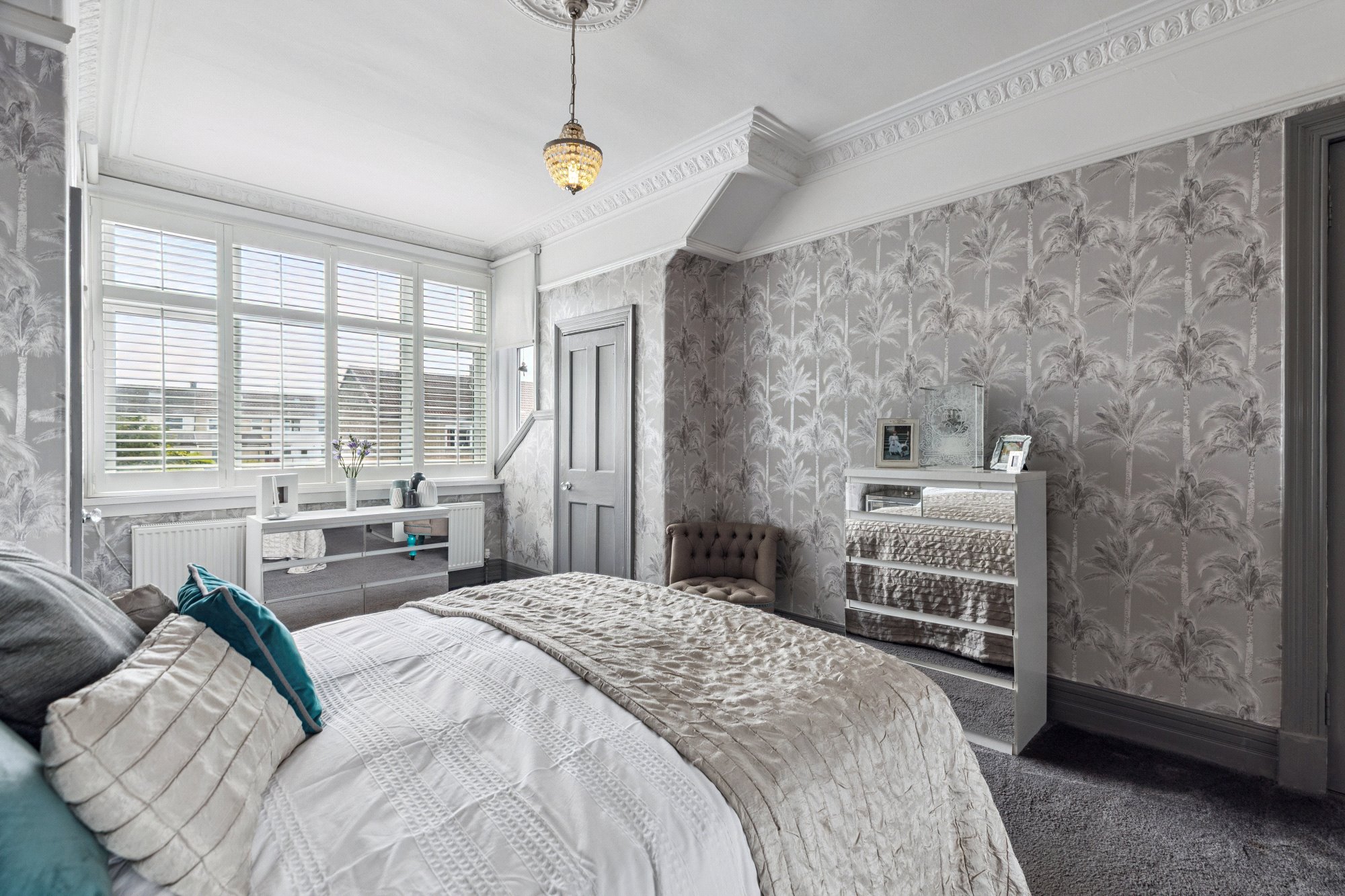 - Principal (main) bedroom of good proportions with balance storage adjacent to five section double glazed box bay dormer window, along with original cornice and ceiling rose.