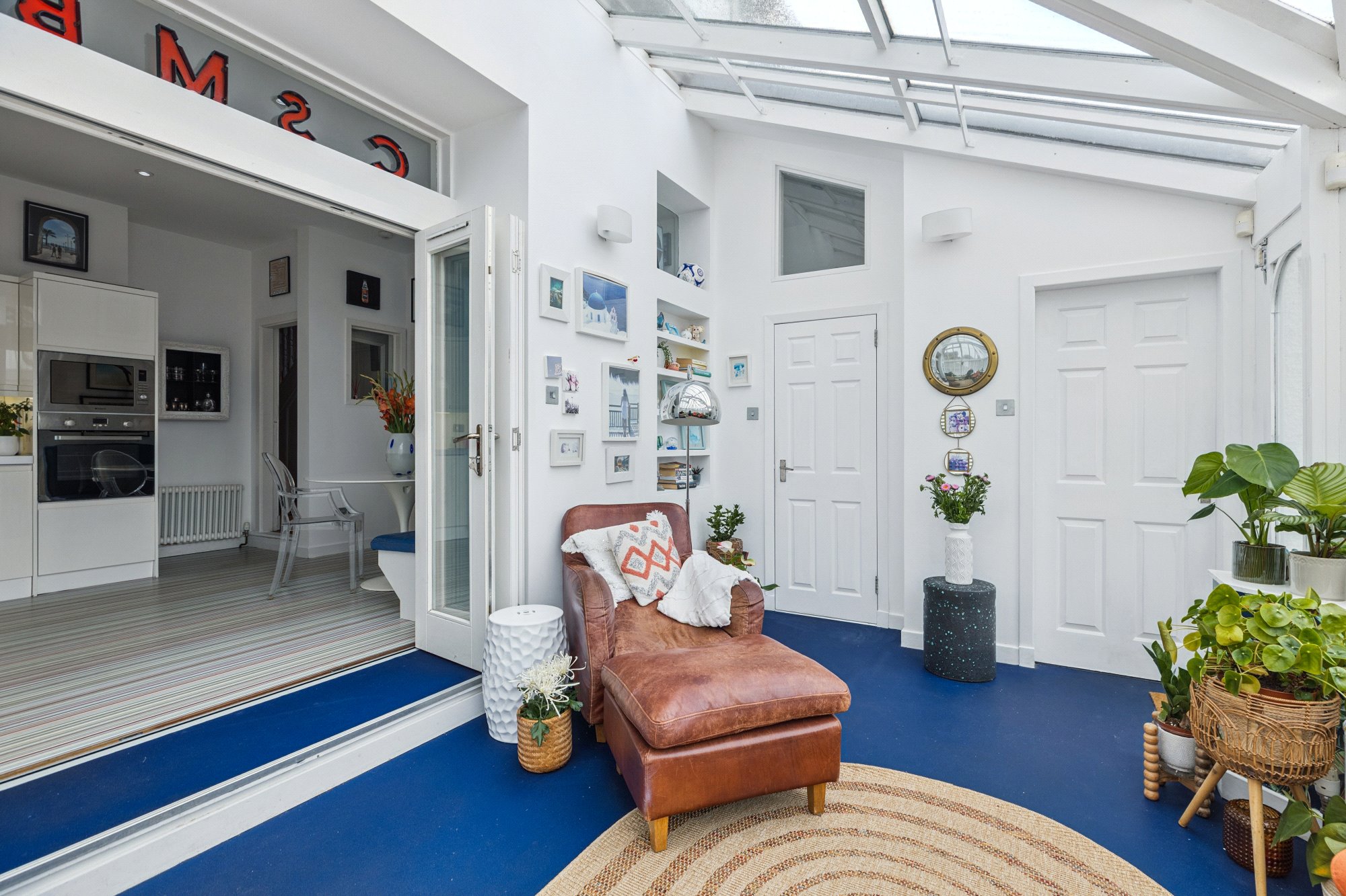- Versatile second public room with three section bay window to the side, original rose and cornice; this room could easily serve as a separate dining room or downstairs bedroom, and is currently utilised as a cosy “snug” family room.