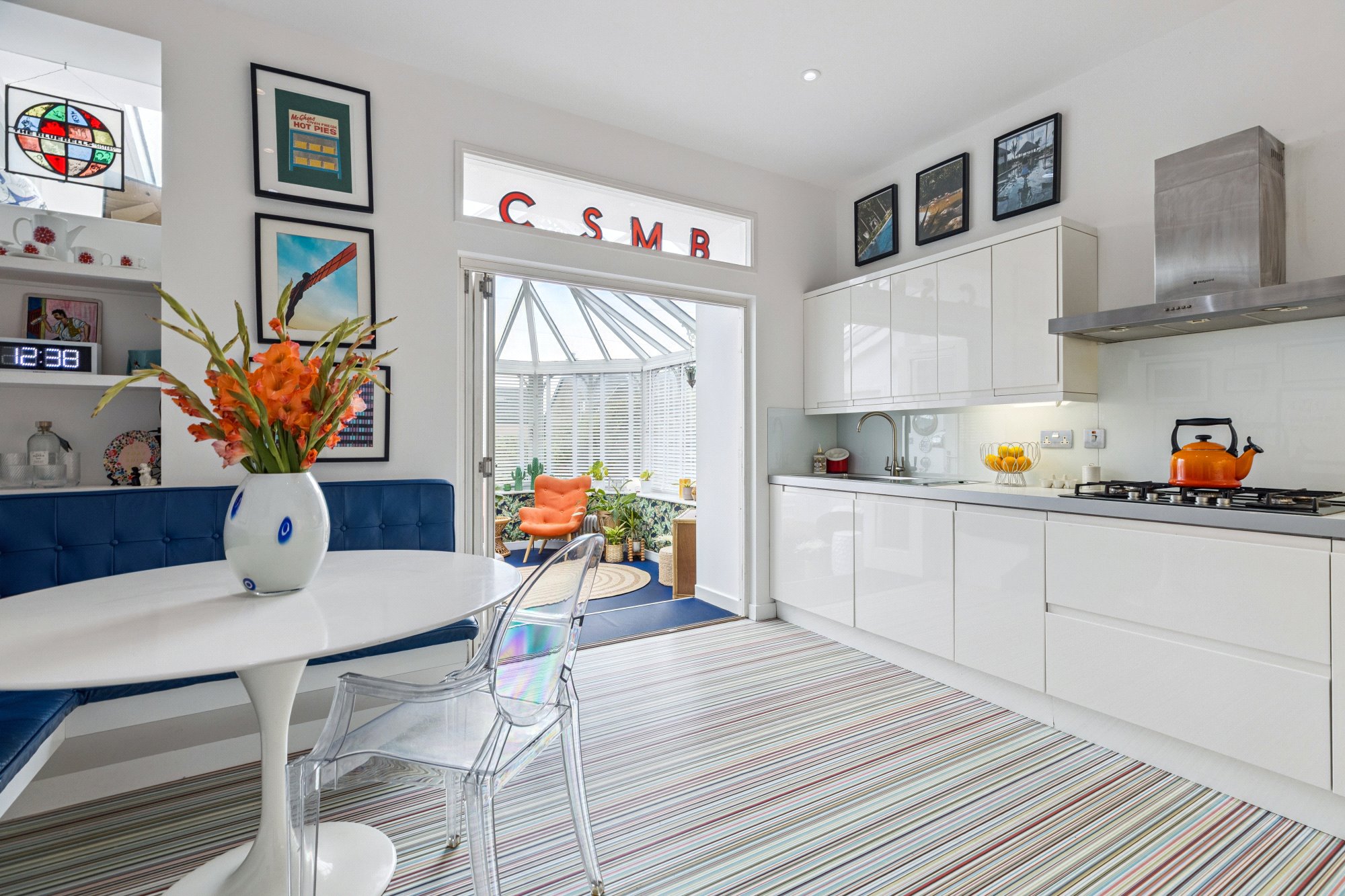 - Large fitted dining kitchen with integrated appliances, plentiful dining space via bespoke booth seating.
