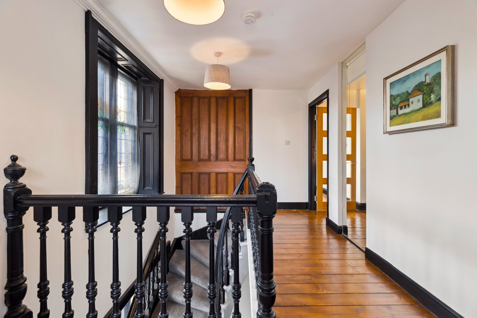 The accommodation is both generous and versatile, a welcoming vestibule and stone steps lead us into an impressive reception hallway where stained glass and traditional tiling exude elegance. A magnificent bow windowed sitting room forms a natural focal point for family living and entertaining, while the sensibly arranged dining kitchen provides another beautiful core for family life and entertaining. A useful utility room provides direct access to the rear garden, with a staircase rising to a flexible study space, and a contemporary shower room completing the ground floor.