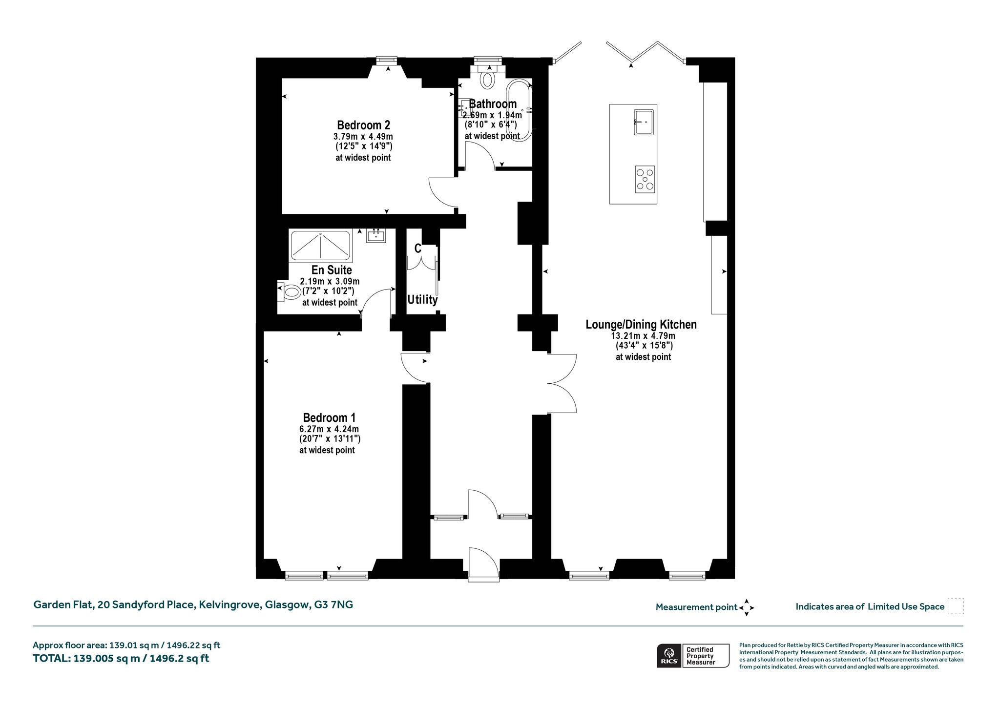- Two double bedrooms
