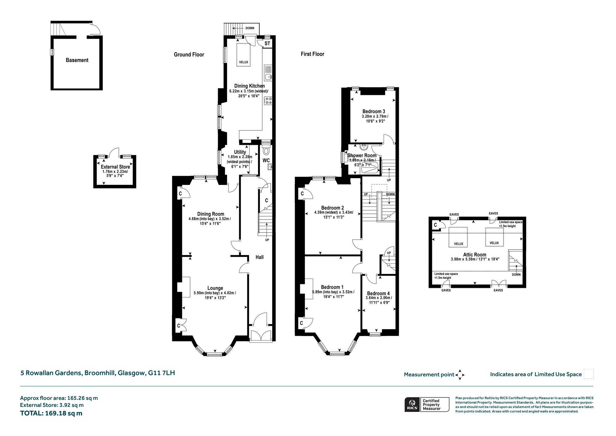 - Large, floored attic room with two velux windows and access to eaves storage space.