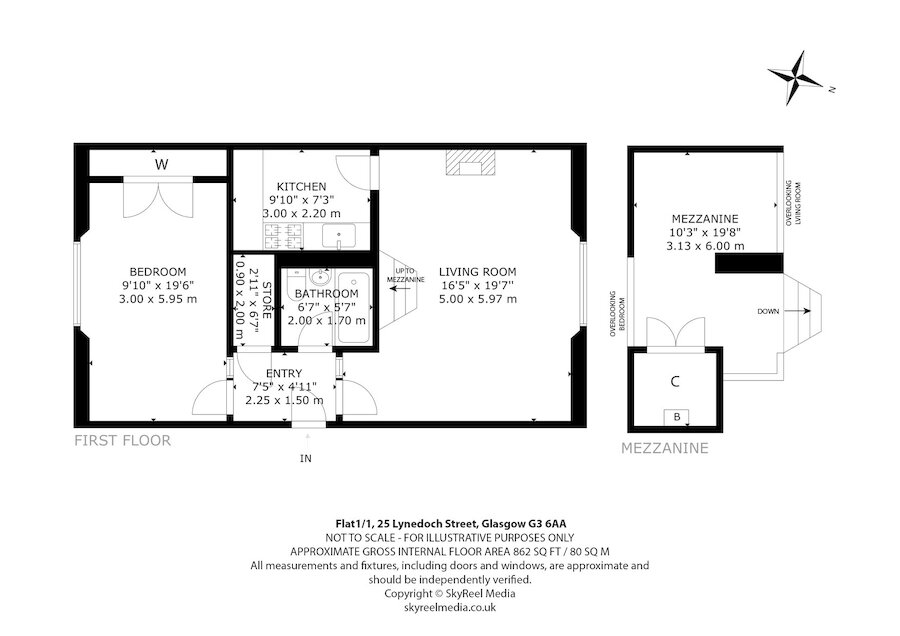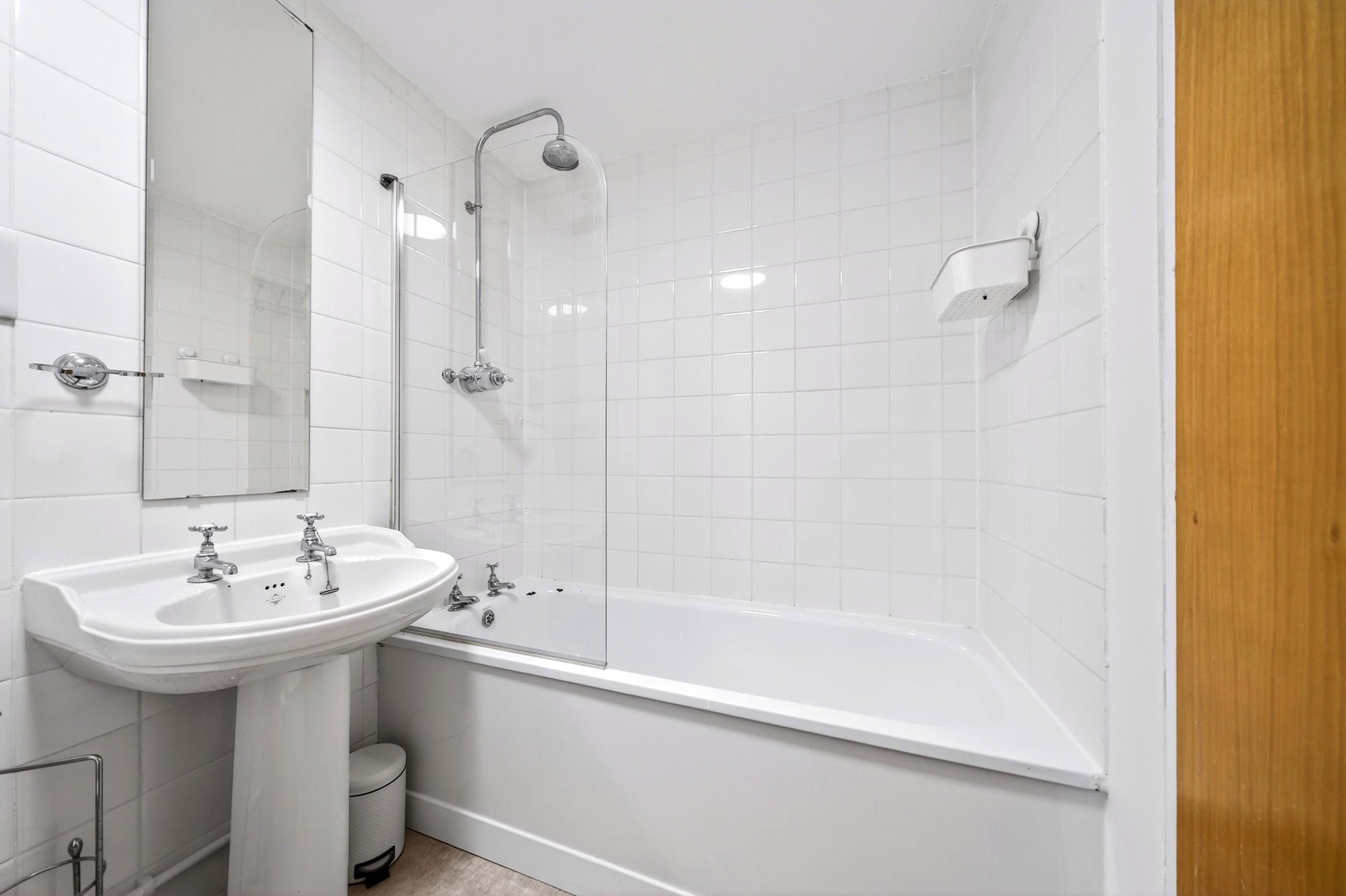As you will see from the accompanying photographs, HD video and floorplan, this is a unique home whose scale and atmosphere can only truly be appreciated in person. In brief, the flowing and well-appointed accommodation extends to: a welcoming entrance hall; a broad, bright main living area with space to dine and a superb wall of tall windows; and a feature timber ladder that leads up to a surprisingly roomy mezzanine level — ideal as a dedicated work-from-home area or reading retreat, and an element best appreciated by climbing up and experiencing the vantage point for yourself. There is an internal galley kitchen with modern appliances, a main bathroom with white suite and shower over bath, and a luxuriously proportioned double bedroom featuring another expanse of impressive windows that contribute to the wonderfully airy feel of the home.