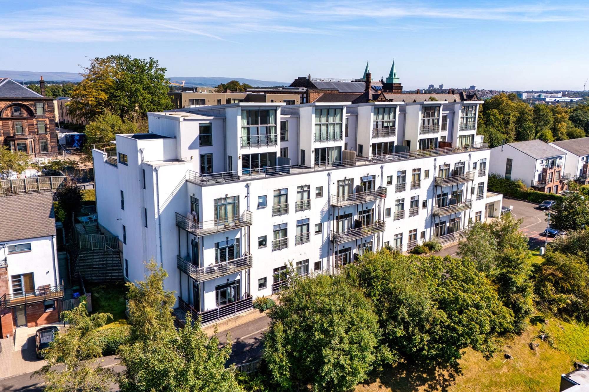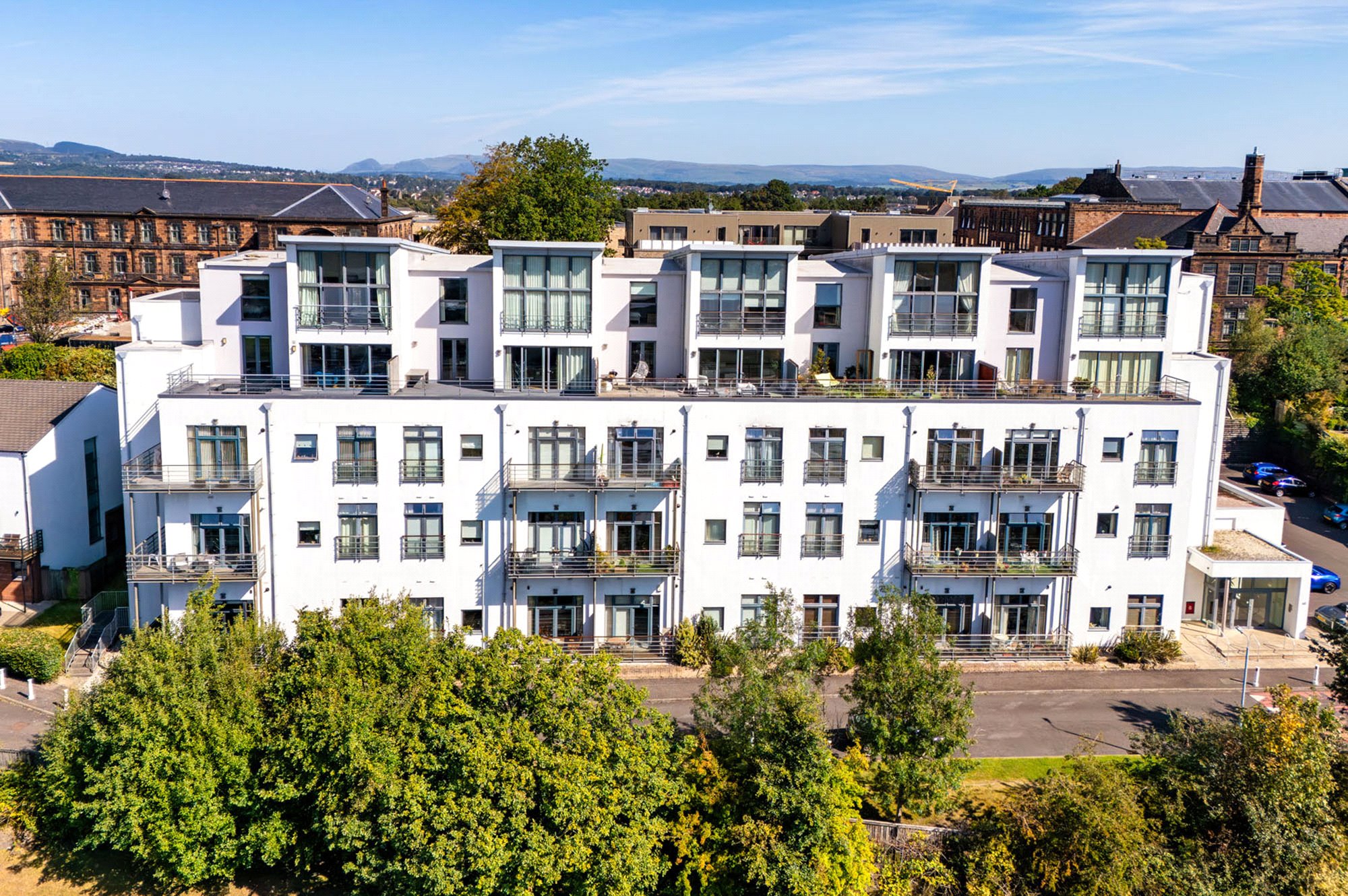 Quietly positioned within a sought-after modern development, this beautifully presented two-bedroom apartment offers immaculately presented and spacious accommodation with the added benefits an allocated parking space, lift access to each level and impressive south-facing aspects overlooking the south side of Glasgow and over towards Glennifer Braes.