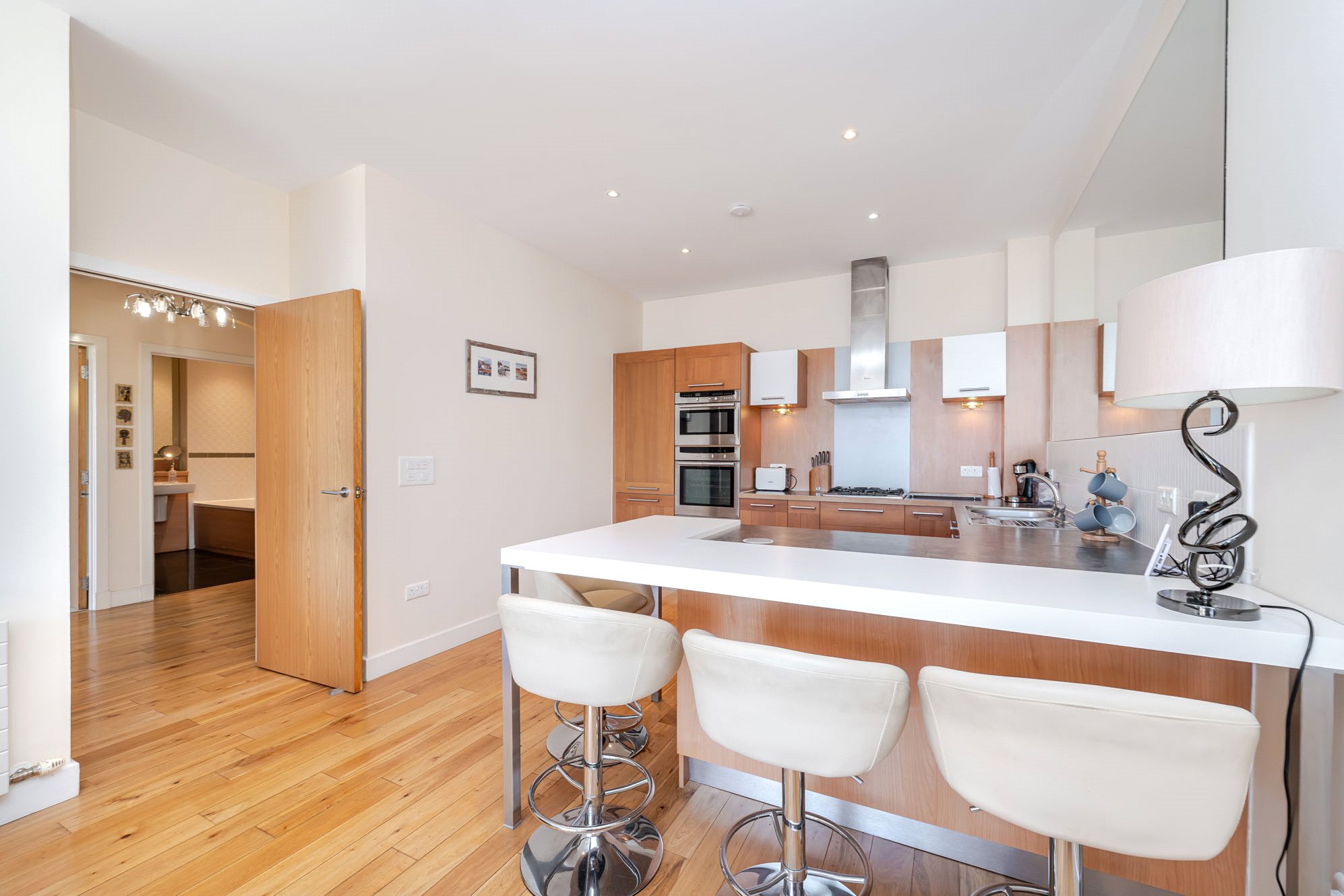 Located on the second floor, this naturally bright property is presented in walk in condition throughout. The internal accommodation includes a superb main lounge/dining room, an open plan kitchen, two spacious double bedrooms, an en suite shower room and a four-piece bathroom. In addition, there is a private balcony, accessed from the lounge/dining room, ample storage including fitted wardrobes in both bedrooms and we would also highlight the invaluable utility cupboard off the reception hall.