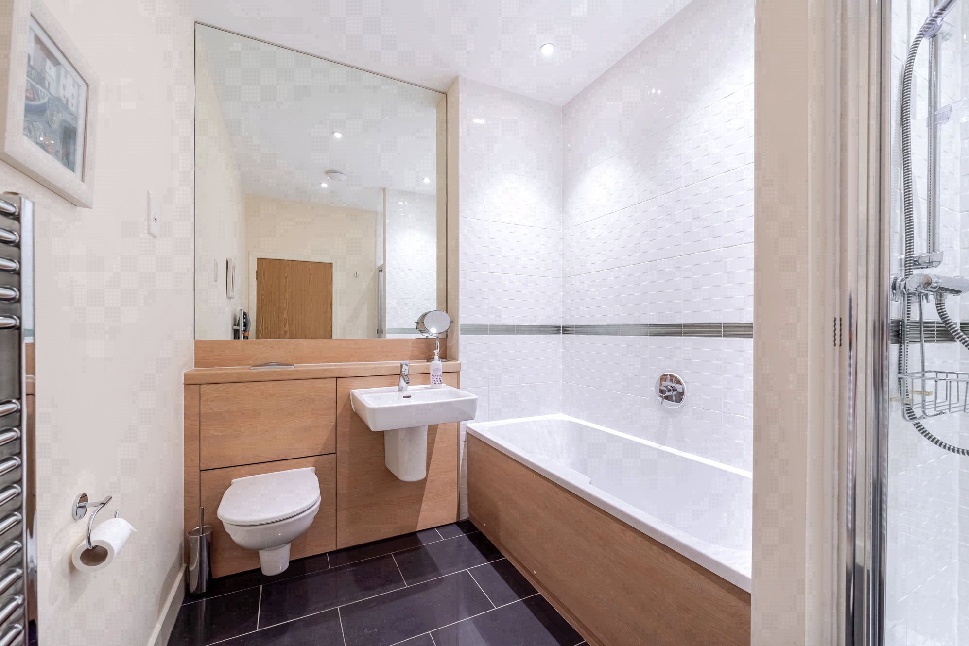 - Four-piece bathroom comprising bath, separate shower cubicle, toilet and wash hand basin