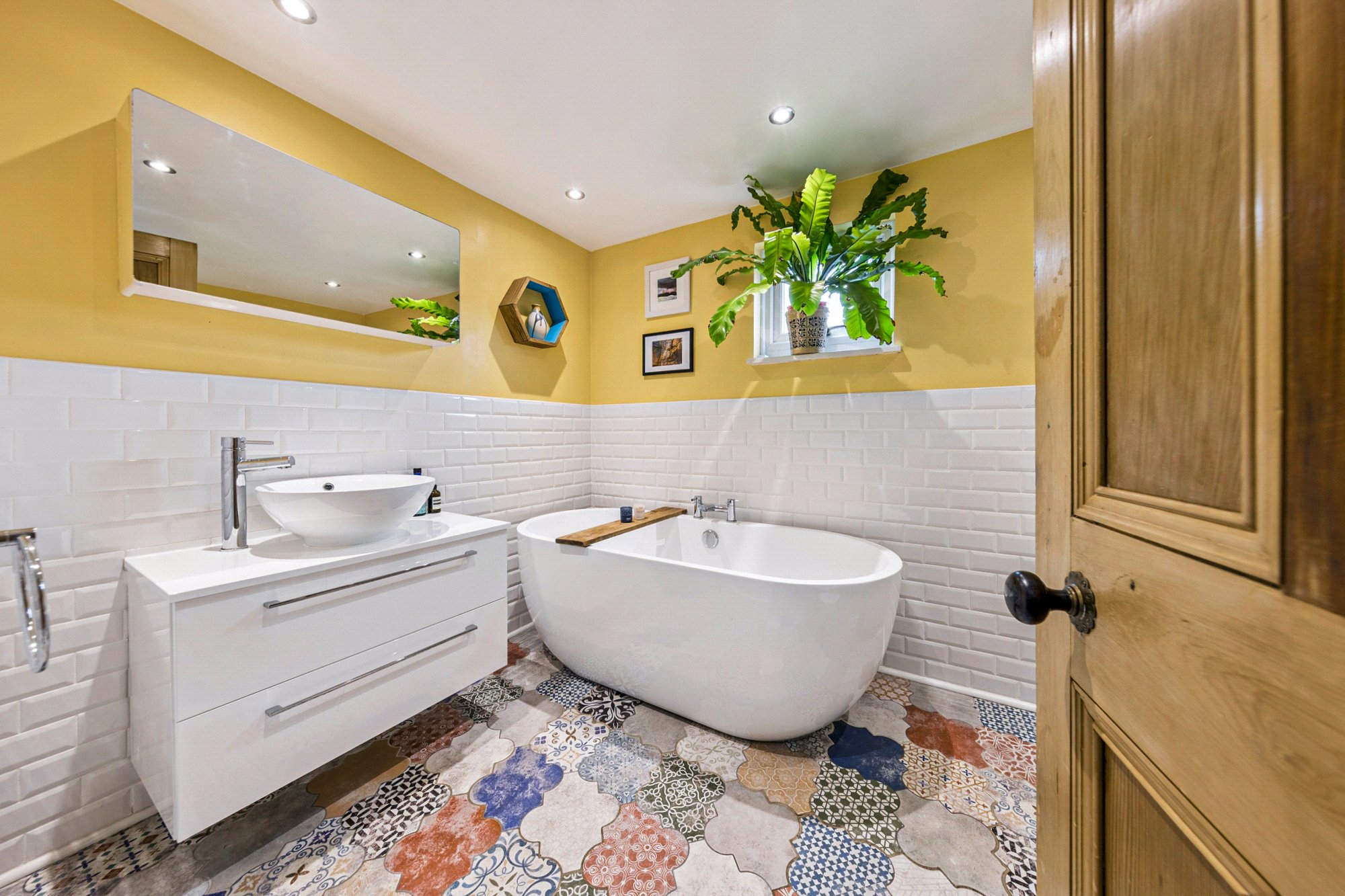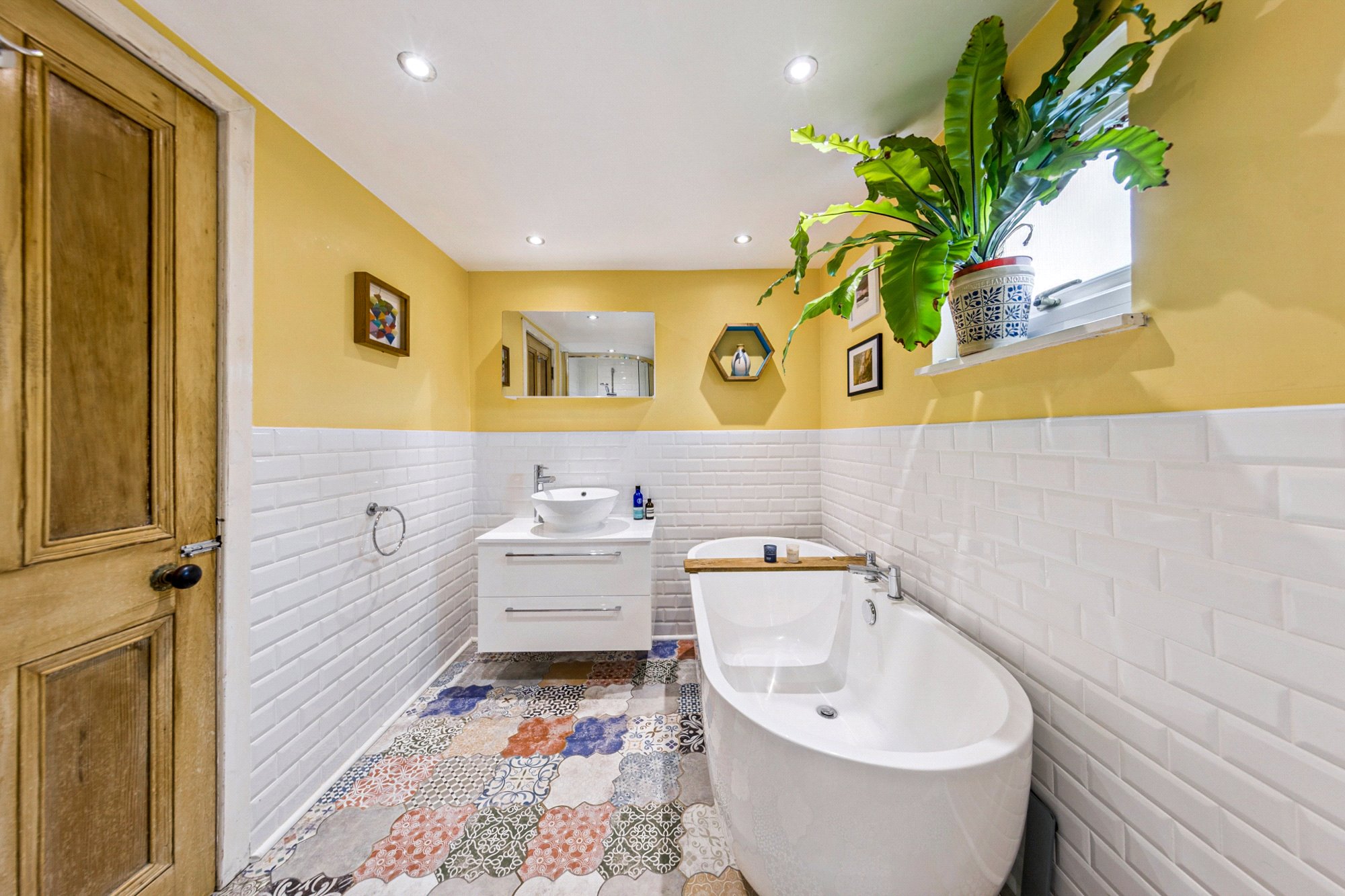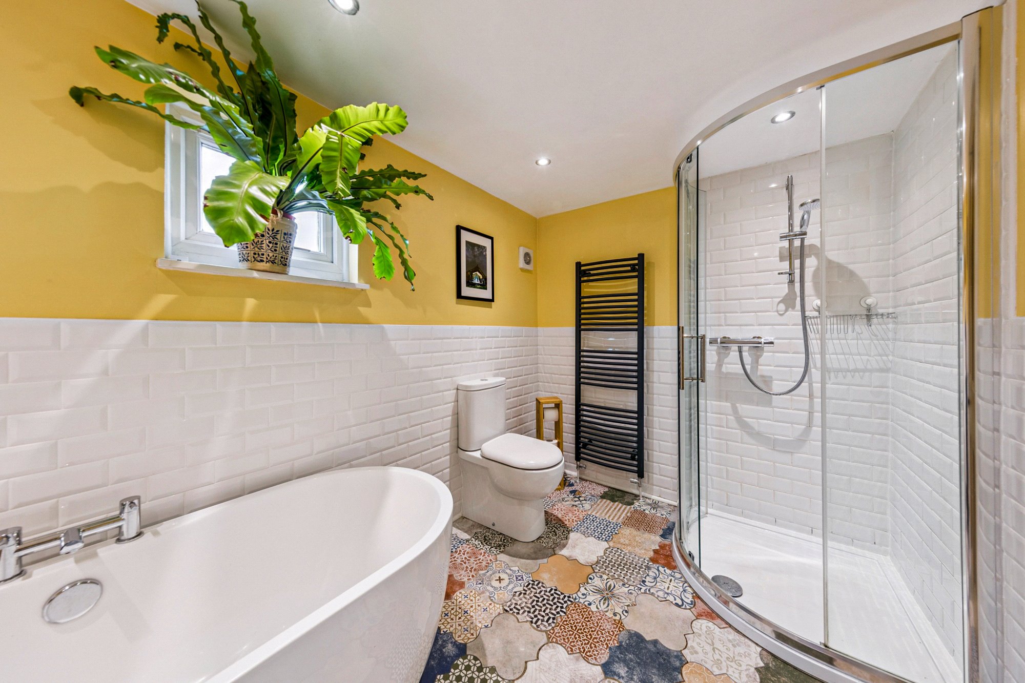 - Four piece family bathroom with separate shower located on the half landing.