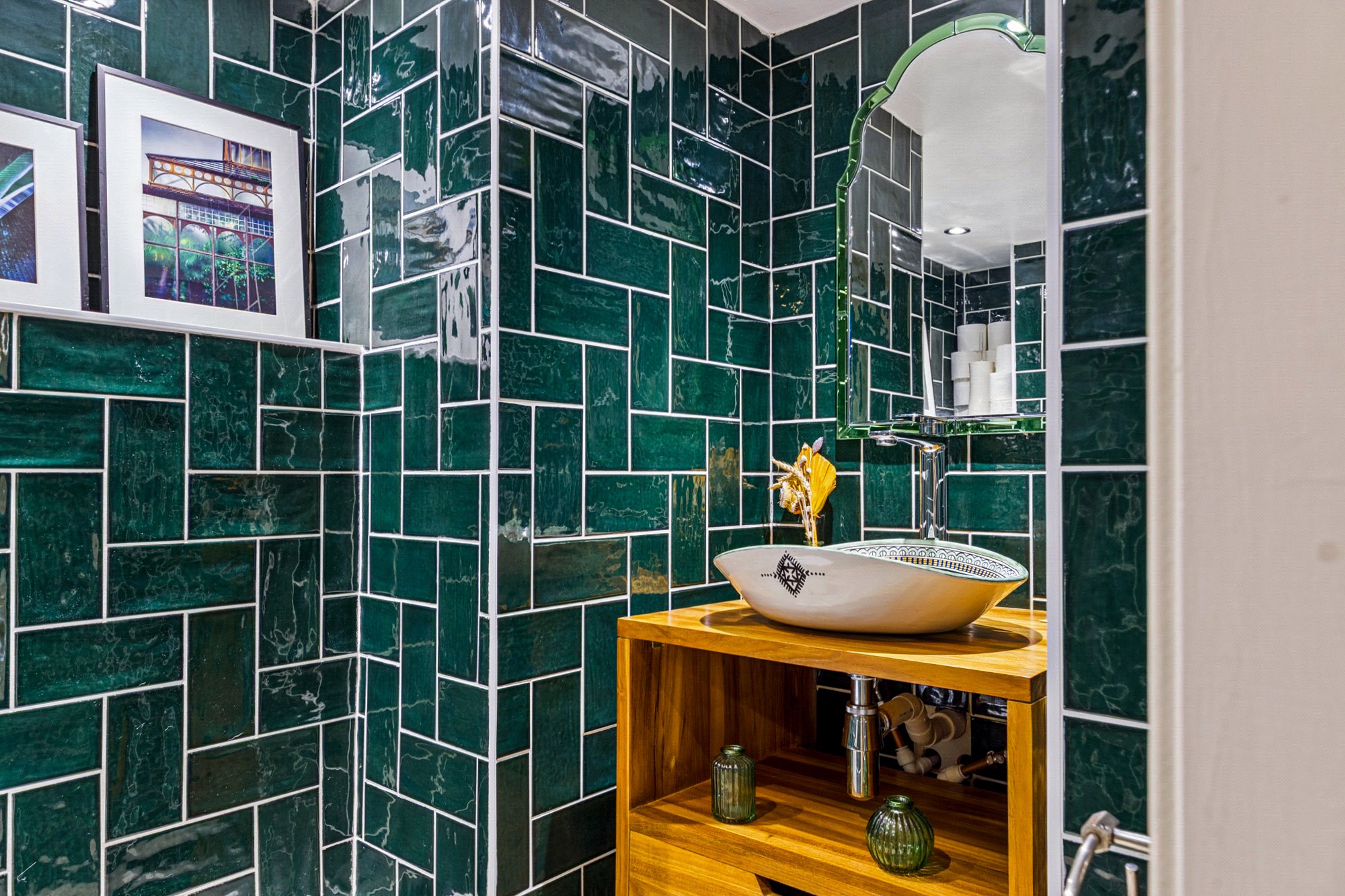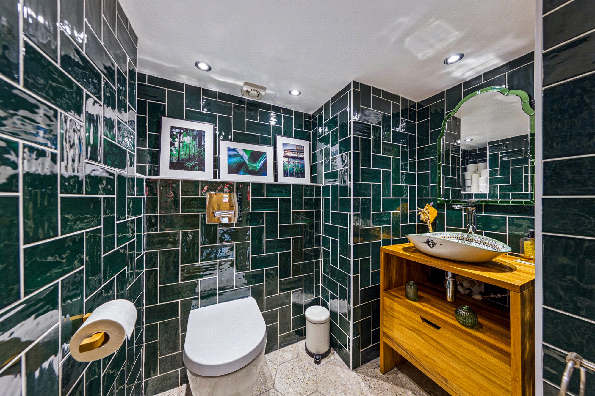- Gorgeous two piece W/C with emerald tiling.