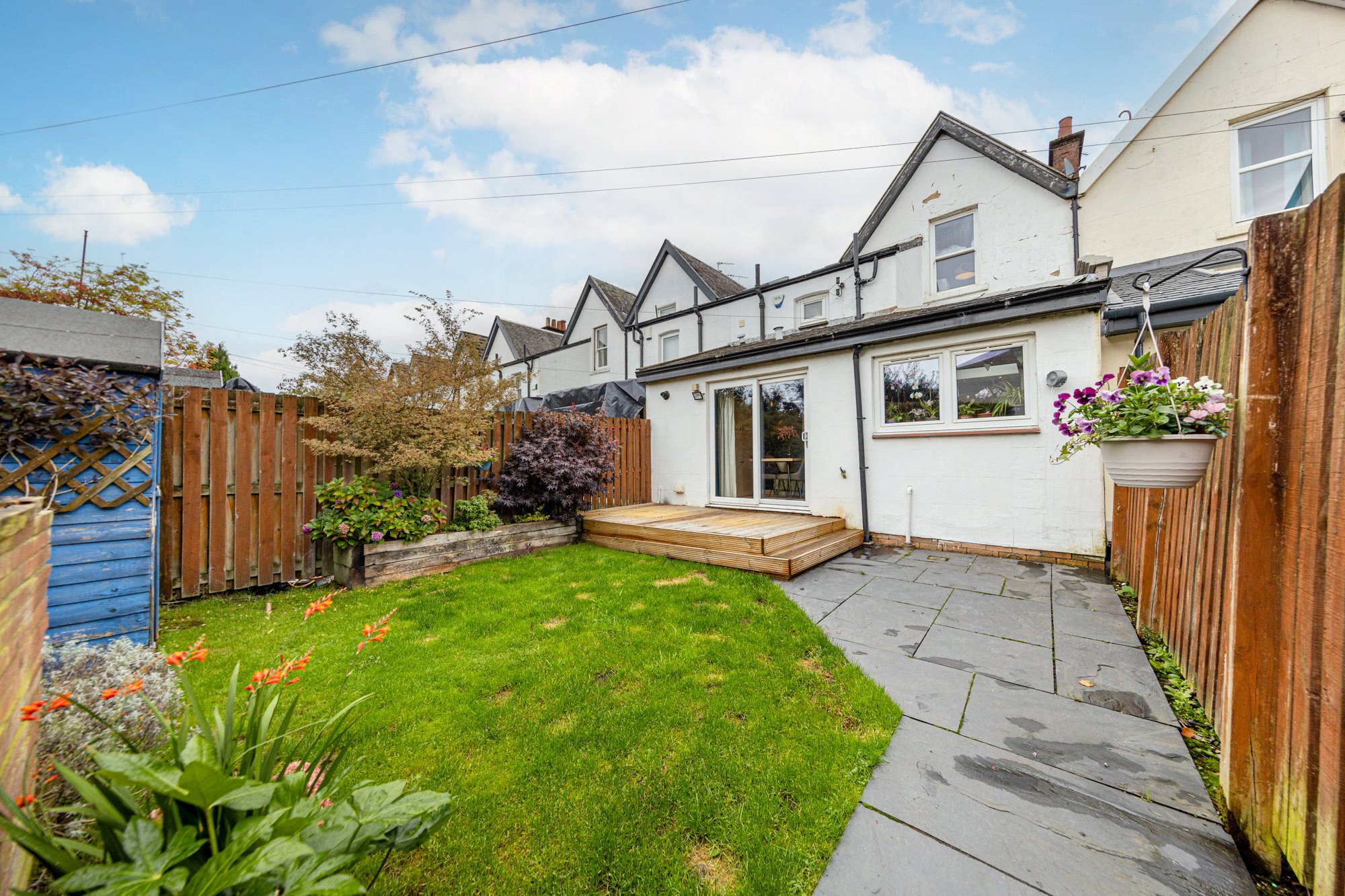 - Private rear south facing garden with decking, neat lawn and garden shed.