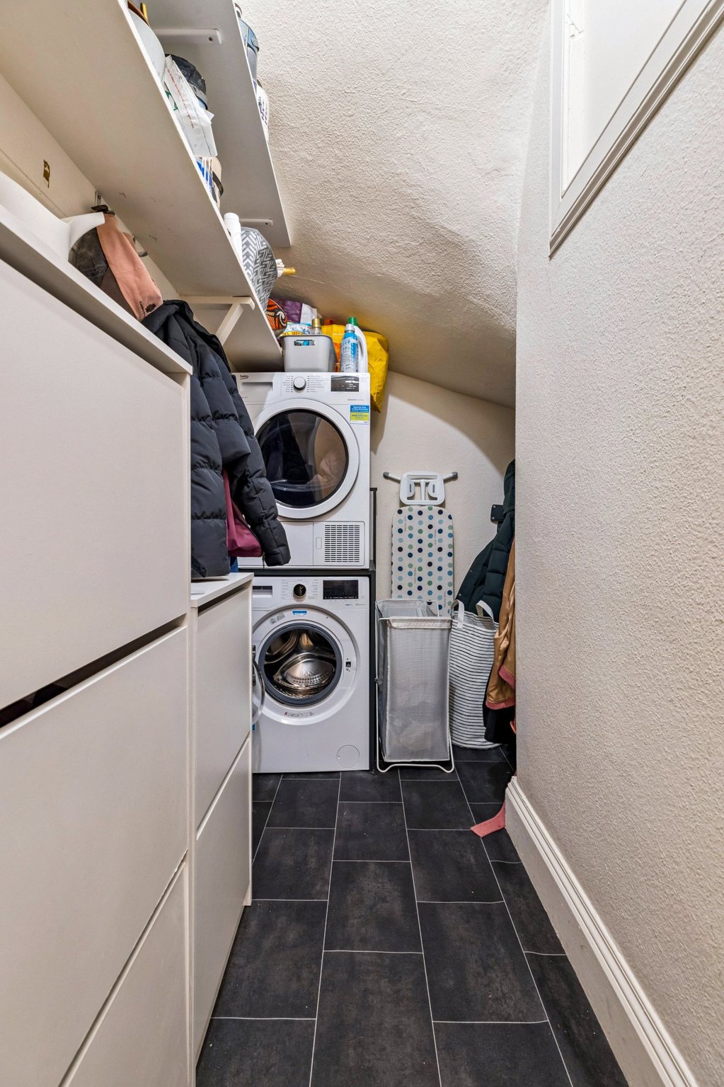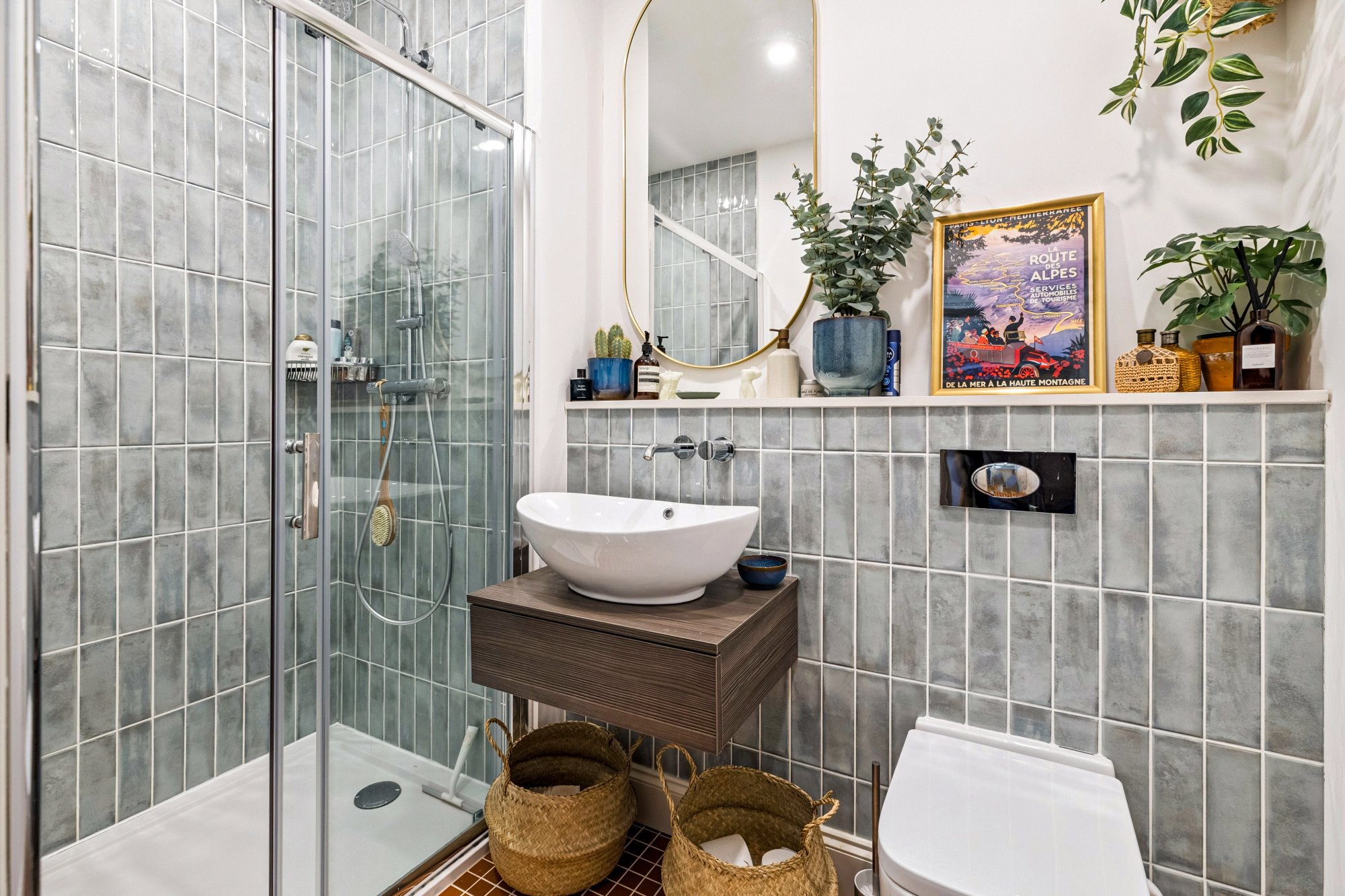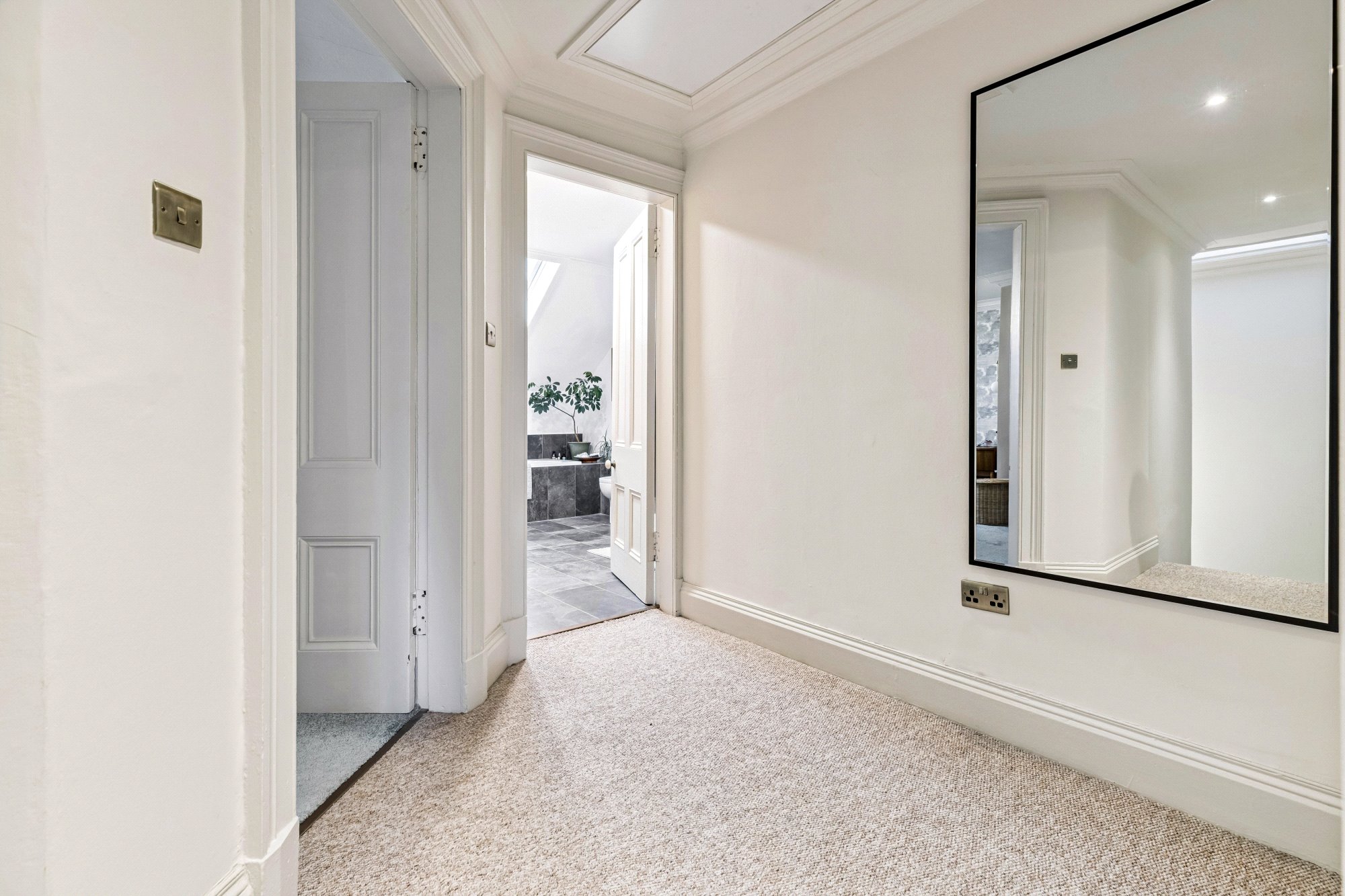 Four well-proportioned bedrooms provide versatility for family life, guests, or home working. Two stylishly appointed bathrooms — each finished to an exceptional standard — serve the property, complemented by practical features such as an understairs utility cupboard and a dedicated bike storage area.