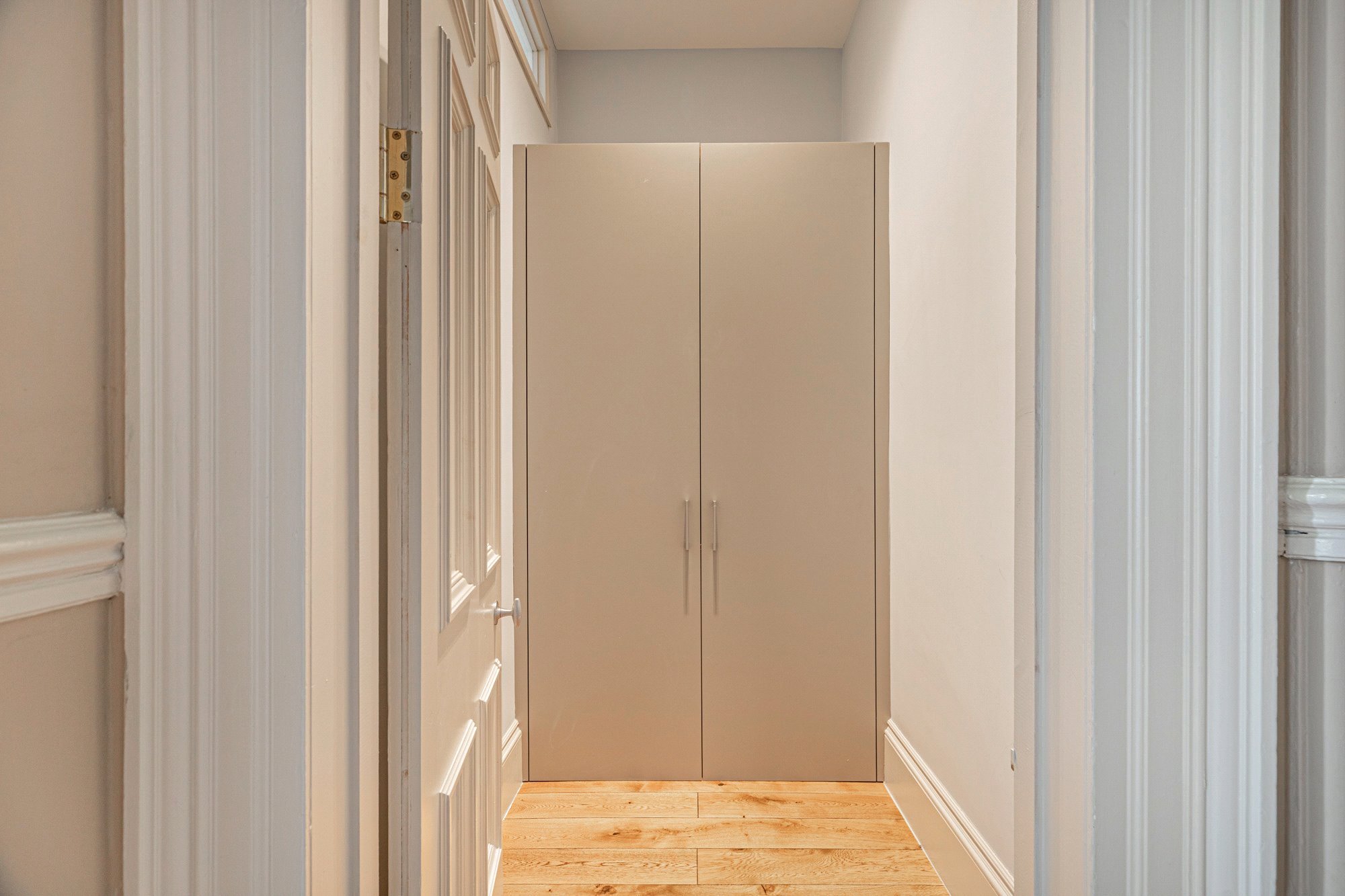 - Bedroom three with window to the rear, wooden flooring, fitted wardrobes and ornate cornicing.