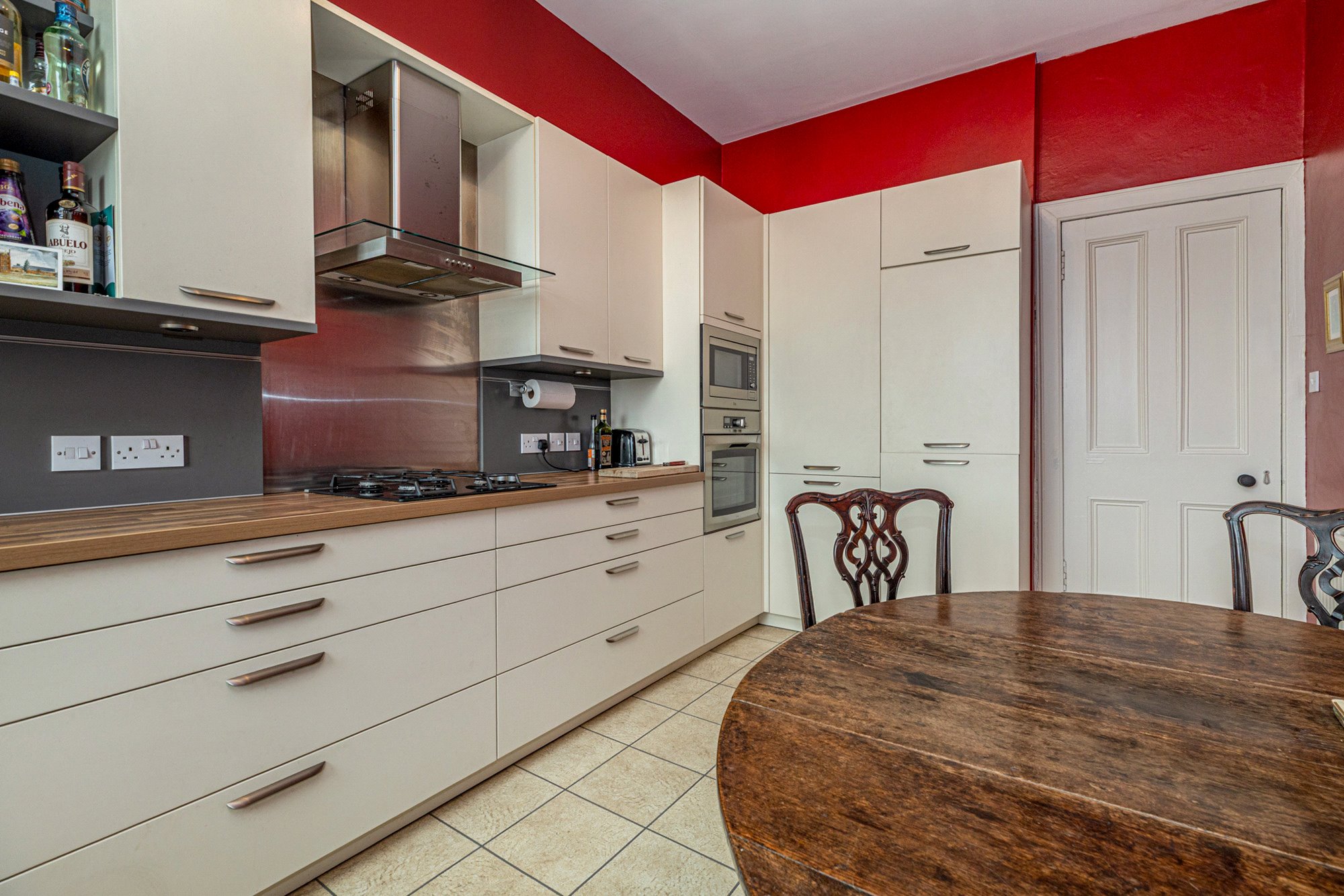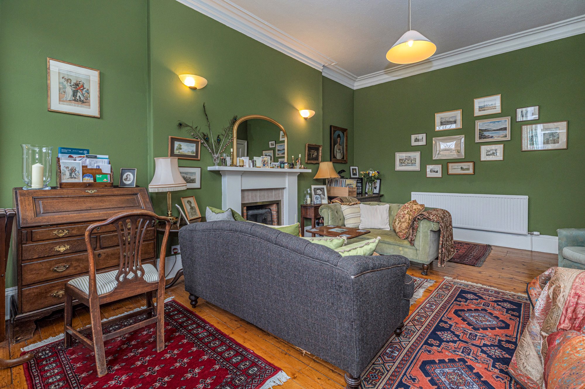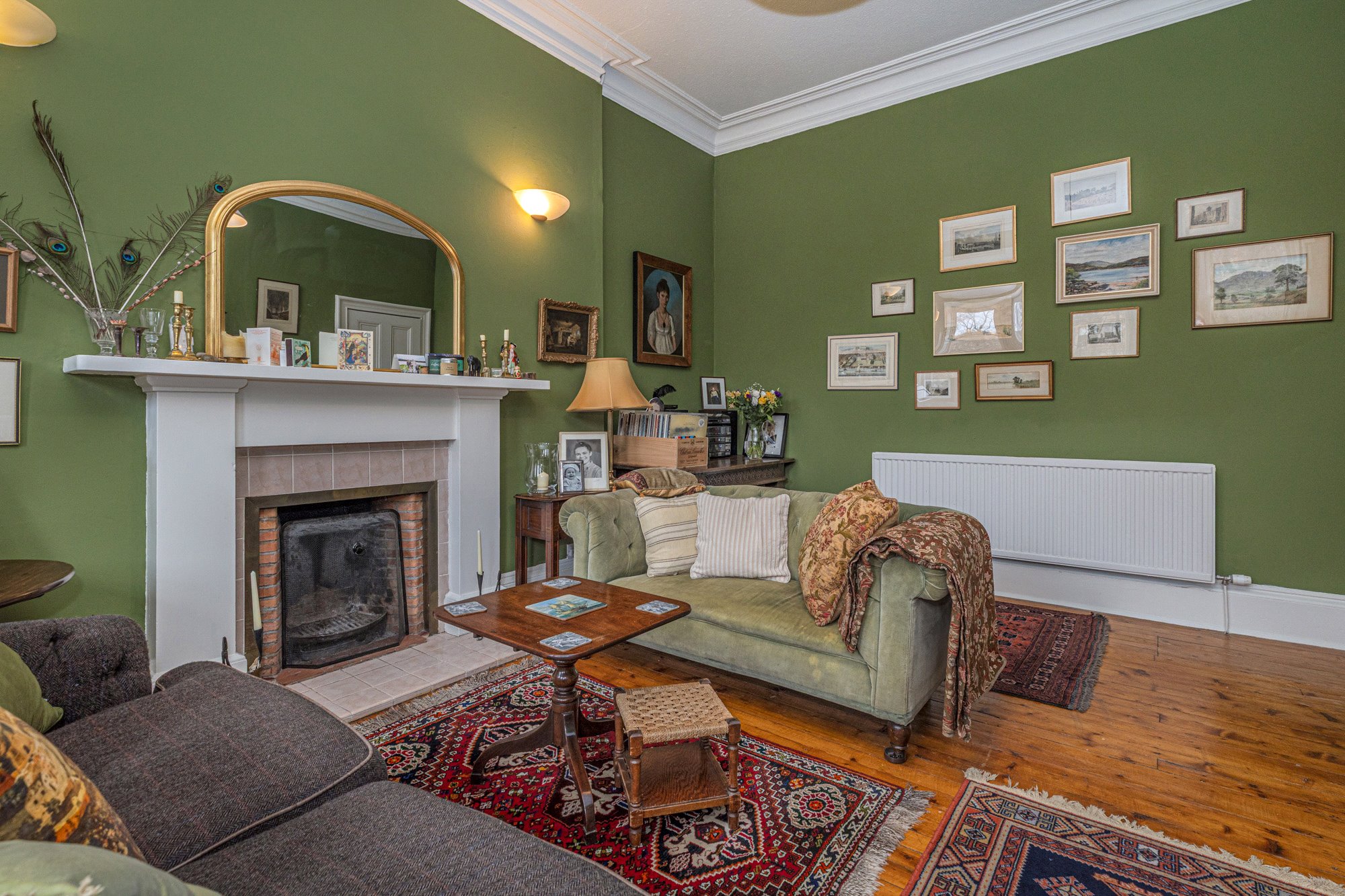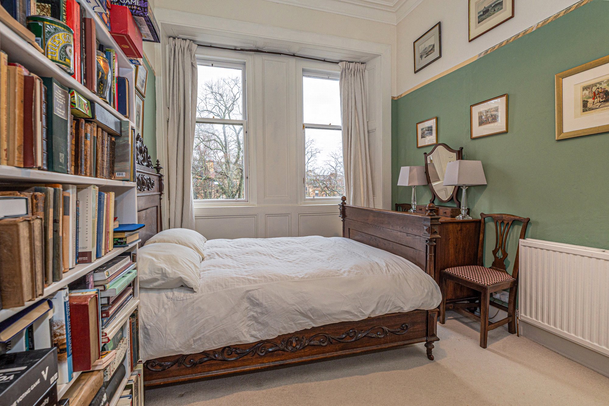 Internally this is an extremely bright & airy traditional conversion with high ceiling and beautiful features. In brief the accommodation extends to; entrance hall, front-facing living room which offers great levels of privacy, charming garden views and benefits from an operational open fire with surround. The kitchen is large and faces South, with attractive fixtures, integrated appliances and lots of space for a four seater dining table and chairs. The principal bedroom is situated within the rear elevation and is of exceptional proportions. Bed two is also a king-sized room, with a large bookcase and further charming views over the treetops towards the gardens. The bathroom is an original Victorian example with a large skylight that floods the bathroom with light.