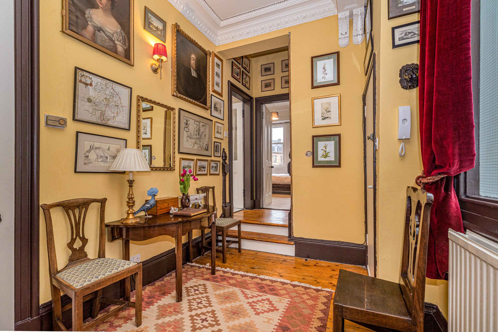 The home for sale is held within a converted blonde sandstone townhouse which contains 4 separate dwelling. The subject is the only apartment on the upper level. Communal areas are extremely attractive, thanks to regular maintenance which is arranged by a managing residents association, who keep the building ship shape & sharp.